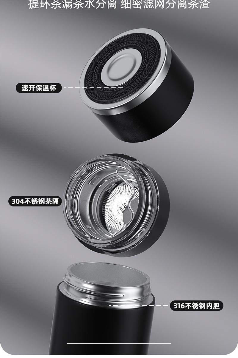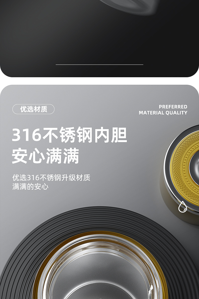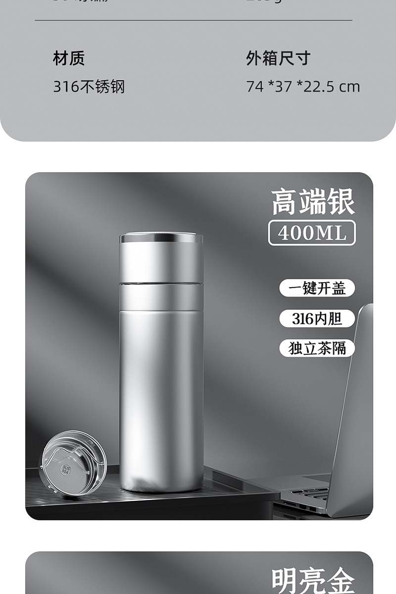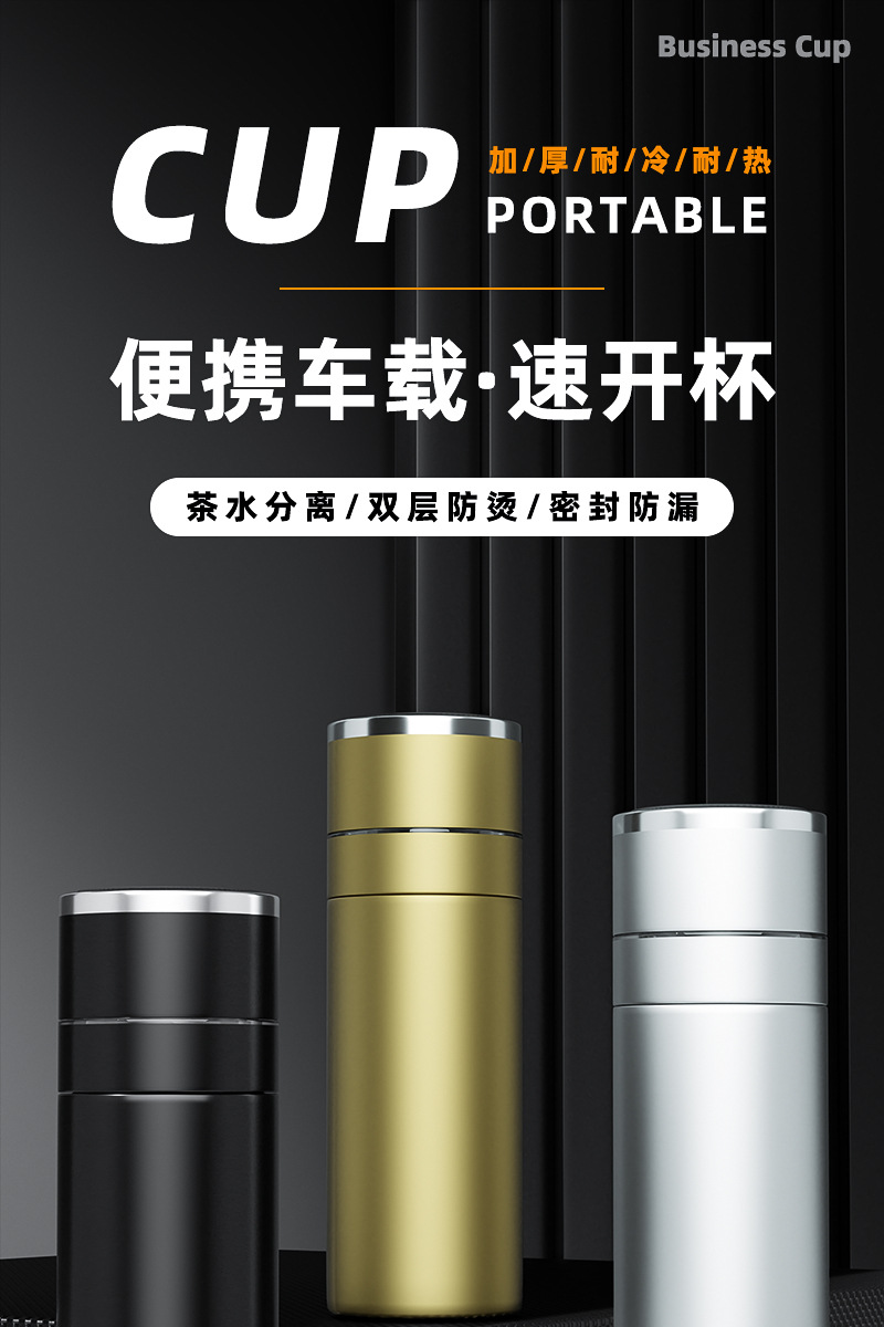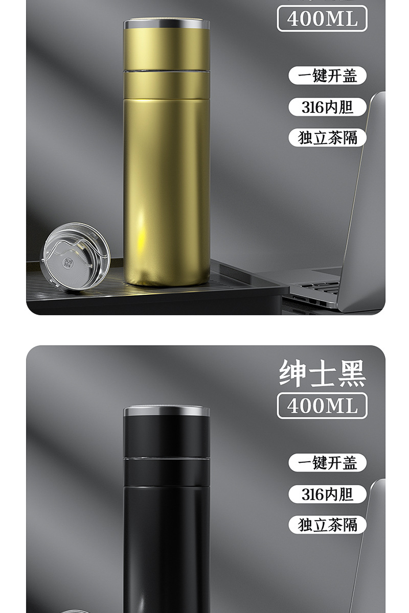 新款316不锈钢一键开盖保温杯高档车载商务便携茶水分离水杯印制