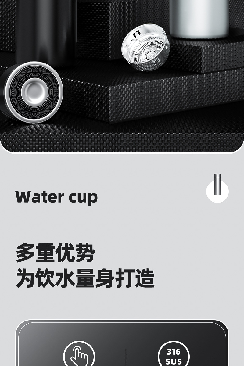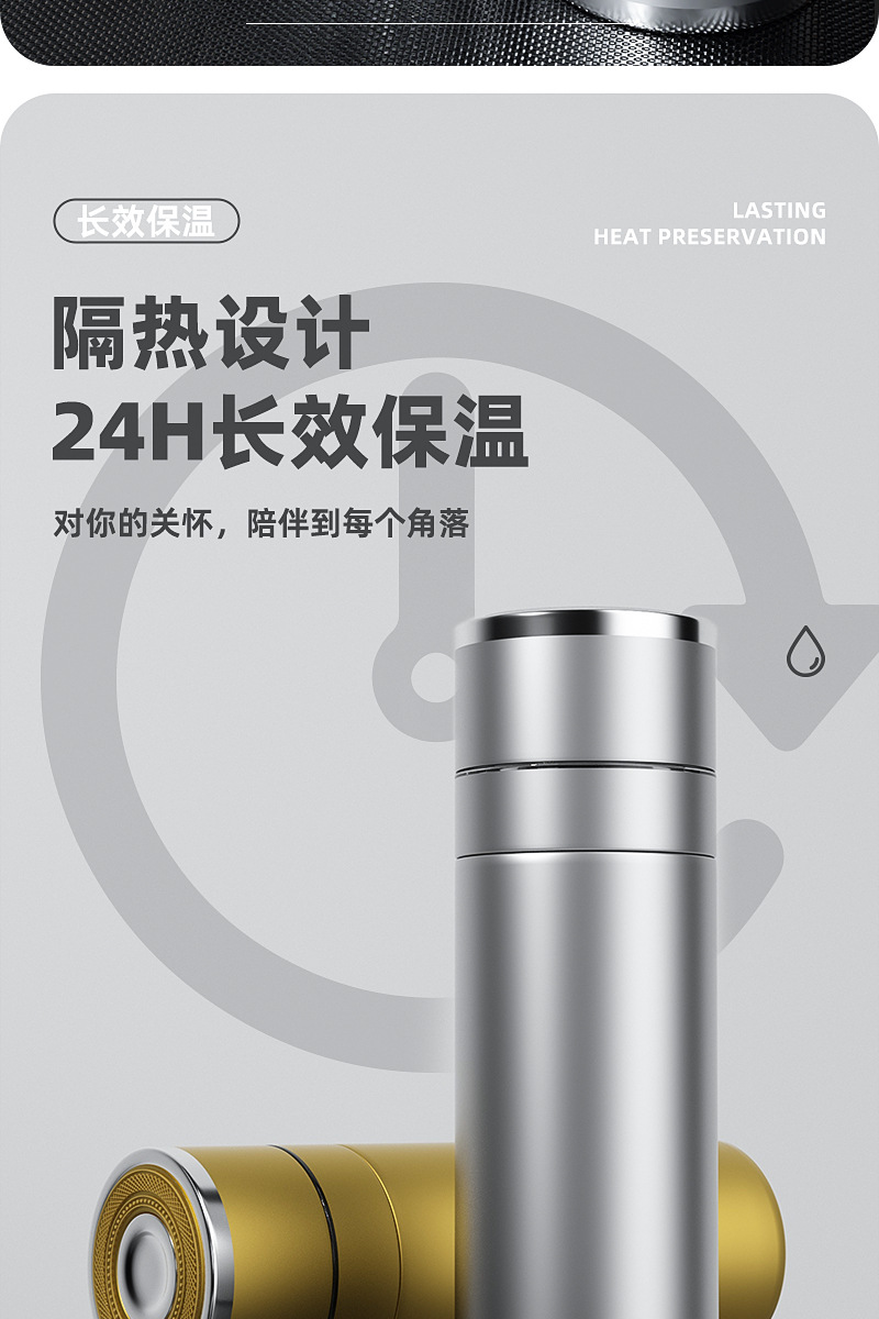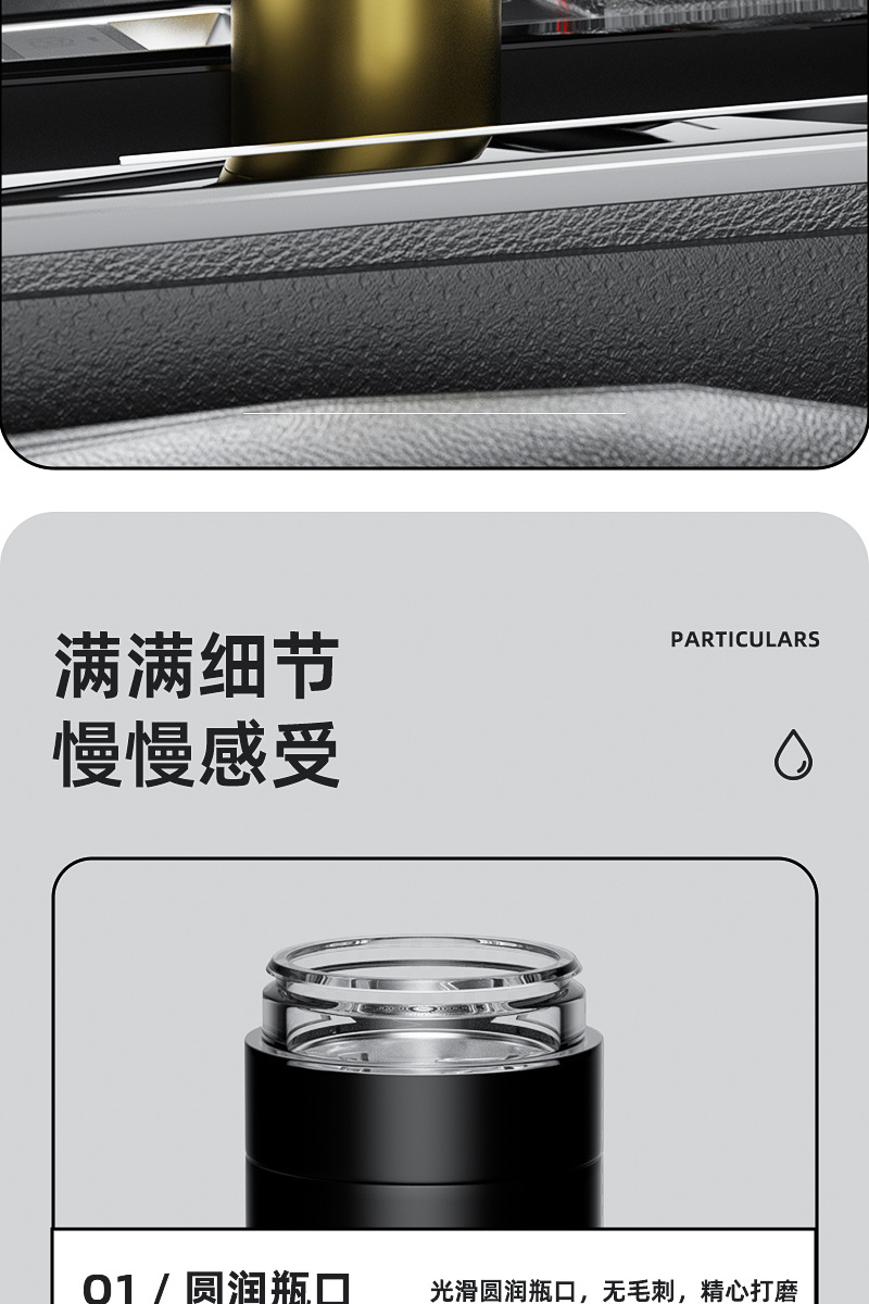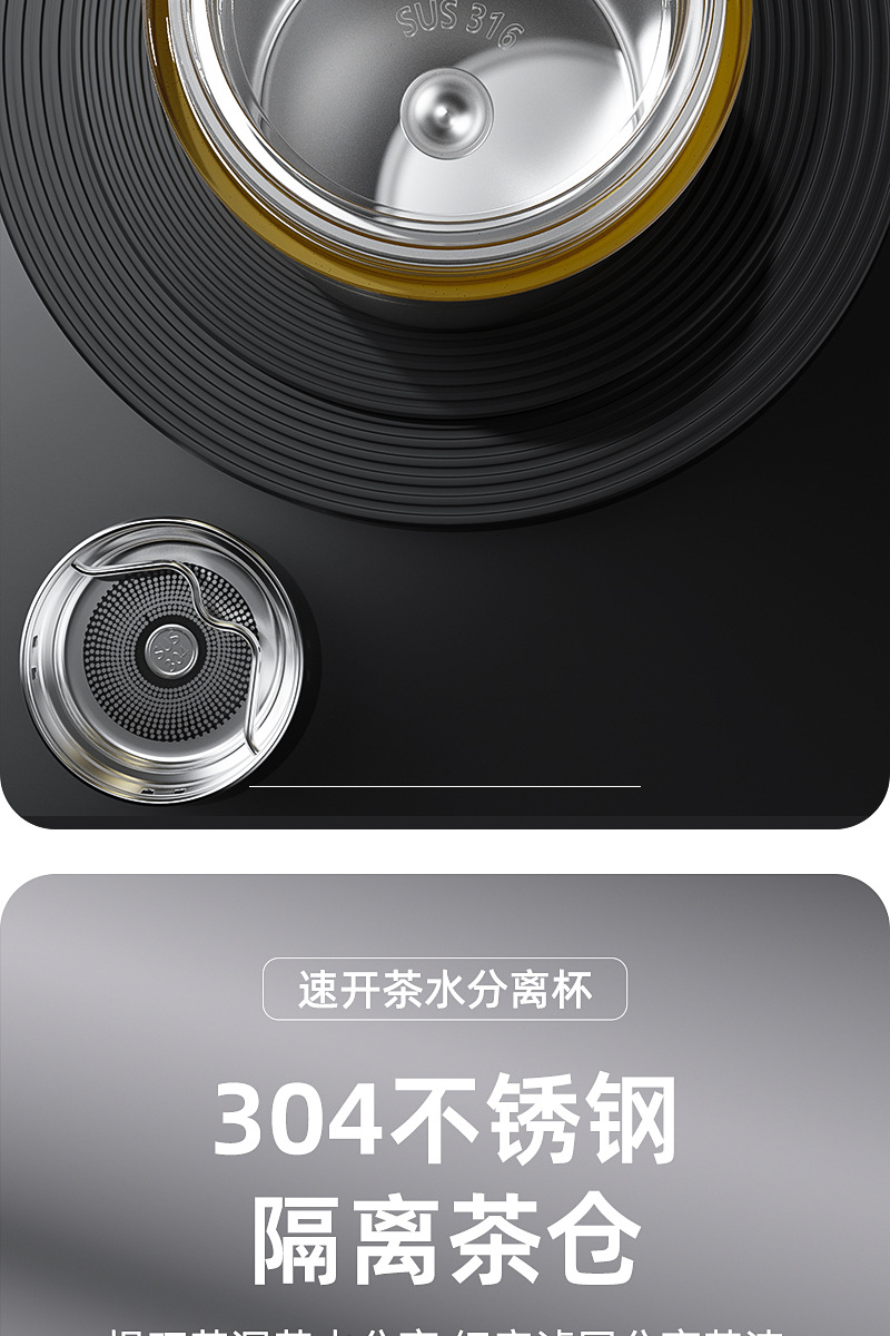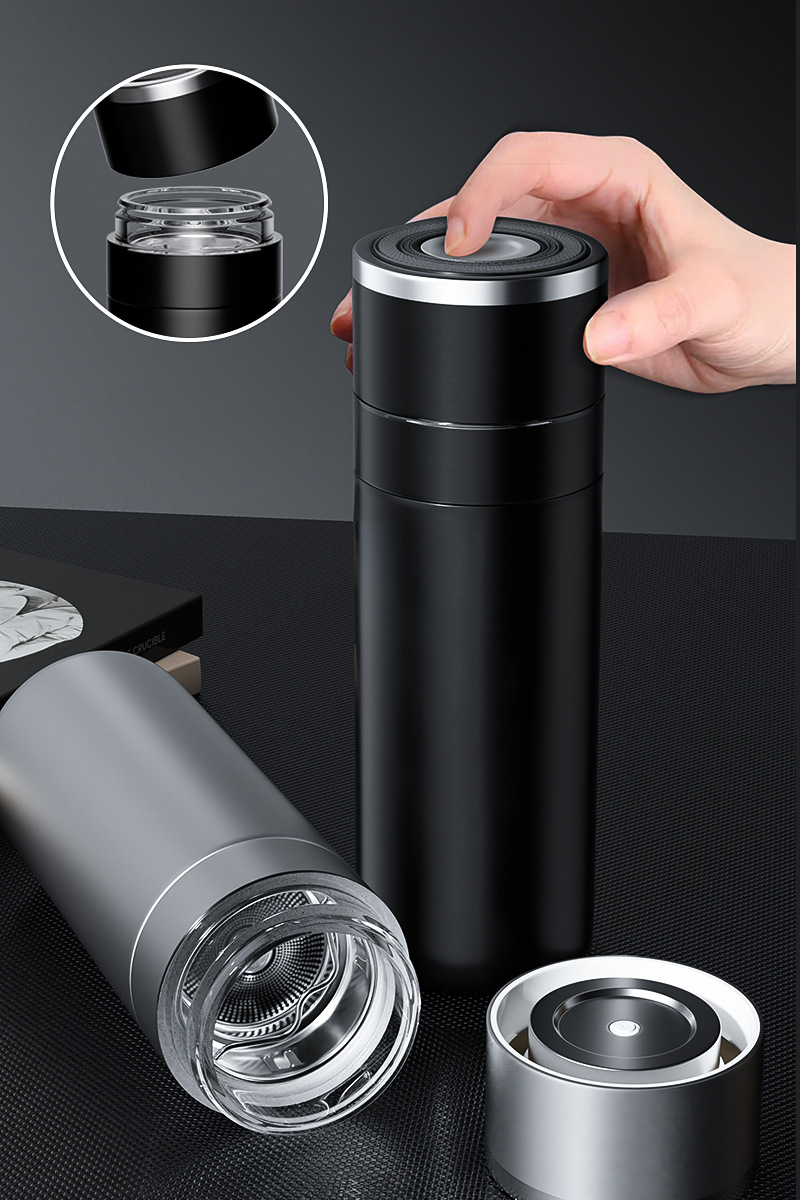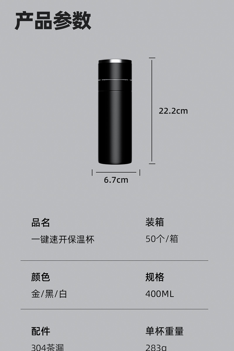新款316不锈钢一键开盖保温杯高档车载商务便携茶水分离水杯印制