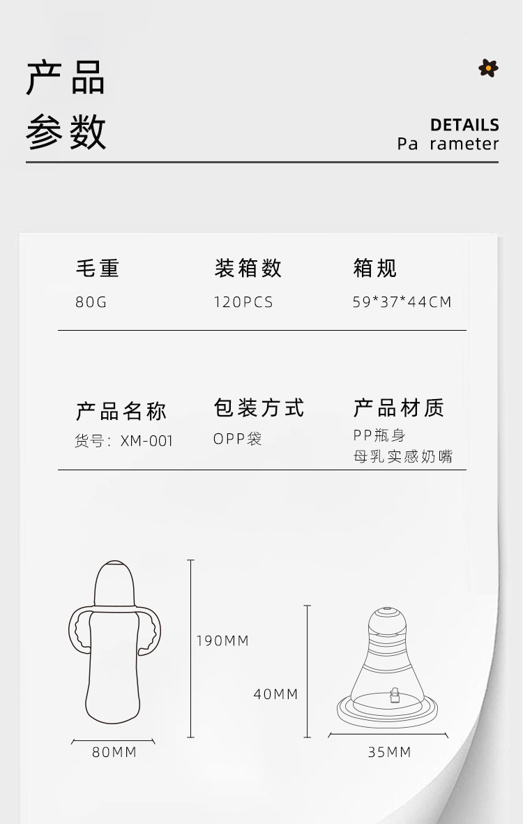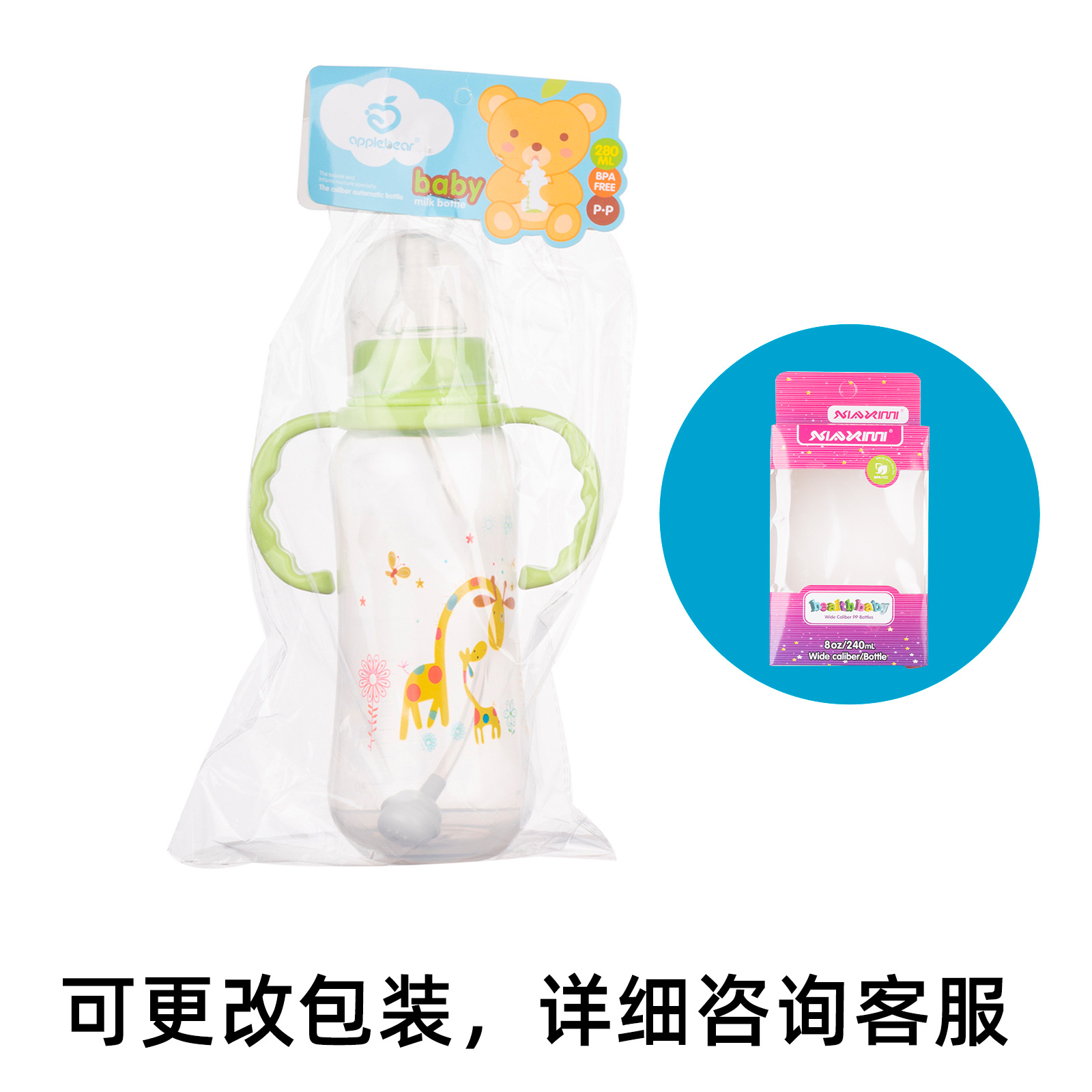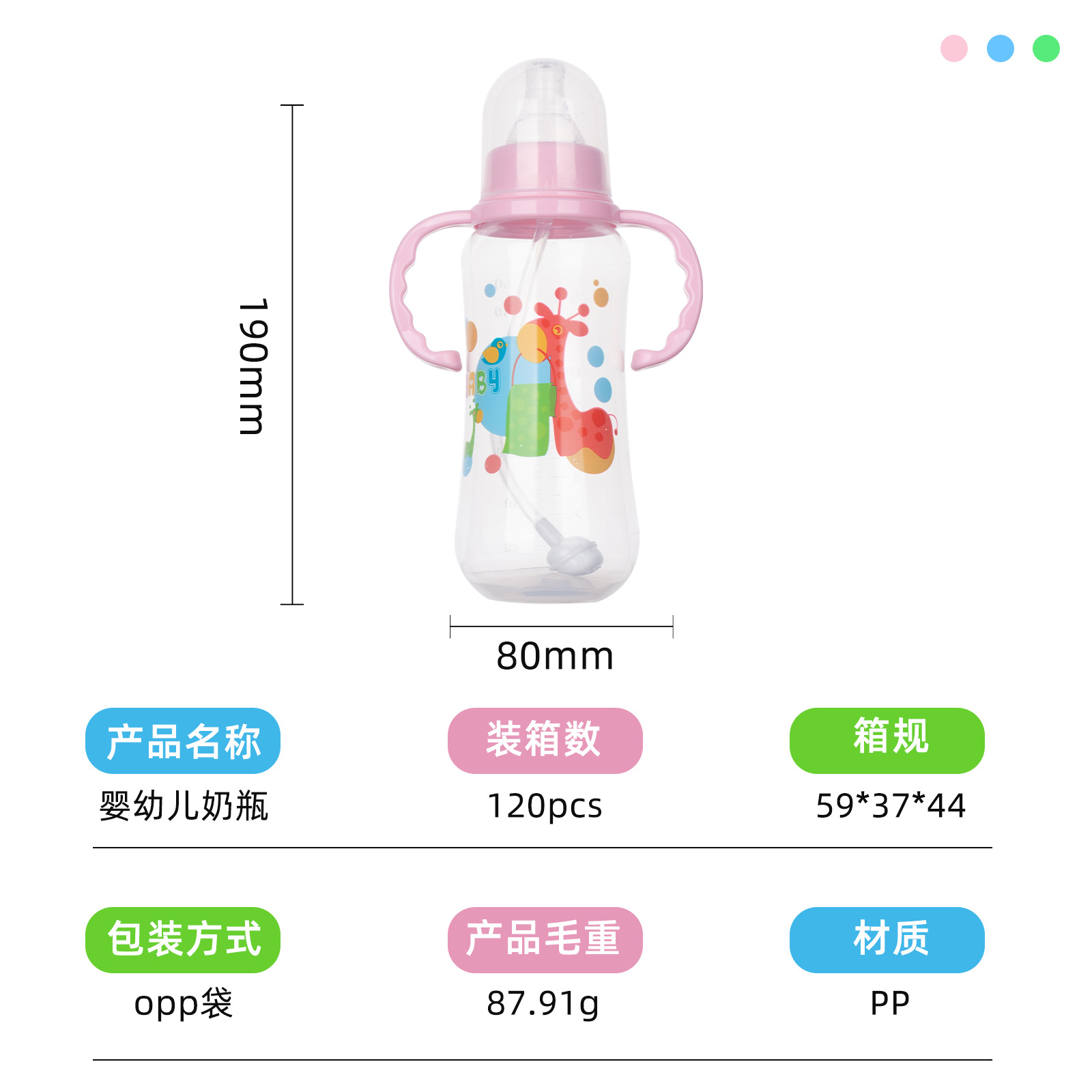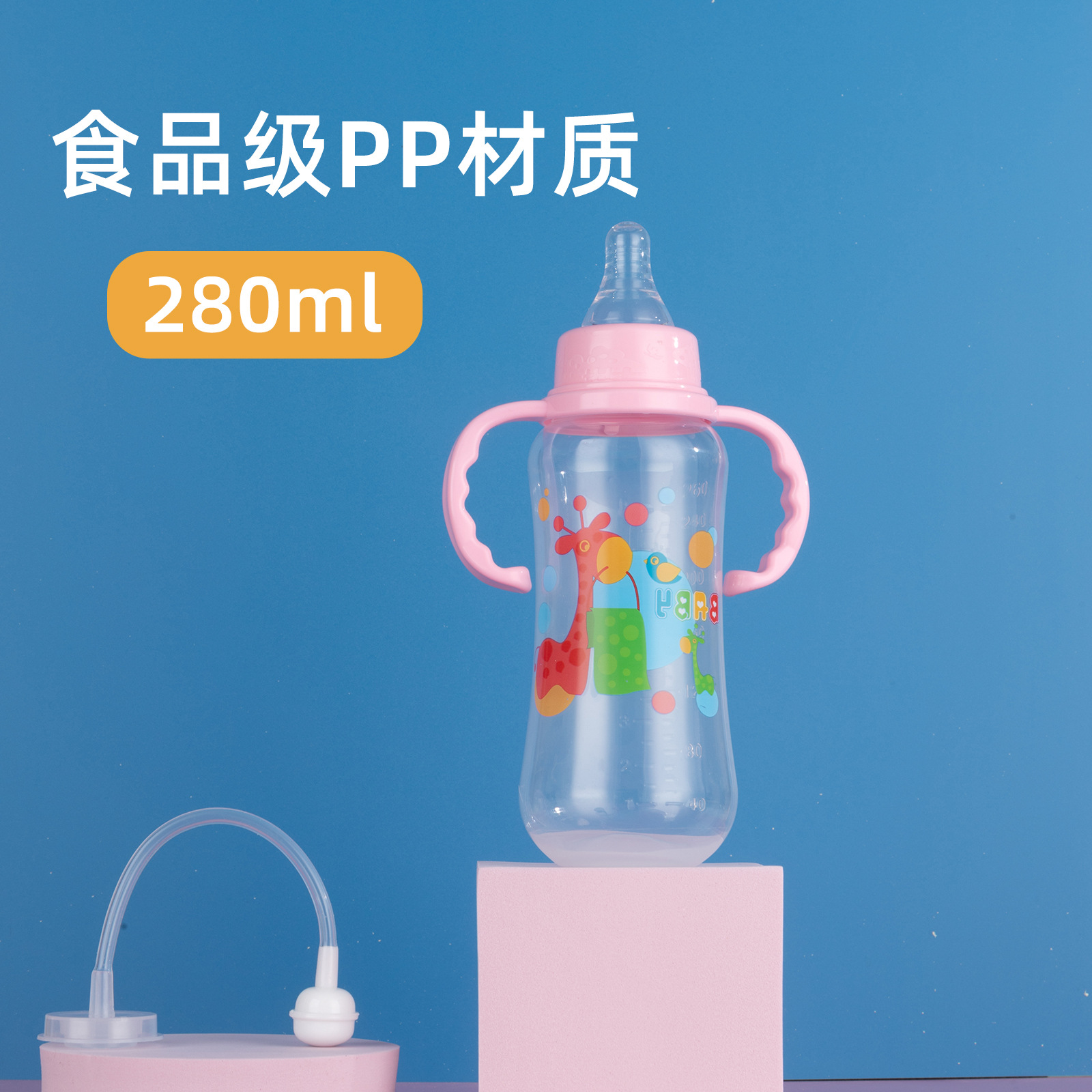 新生儿婴儿母婴标准口pp奶瓶280ML防胀气带手柄防呛奶瓶批发0-9月