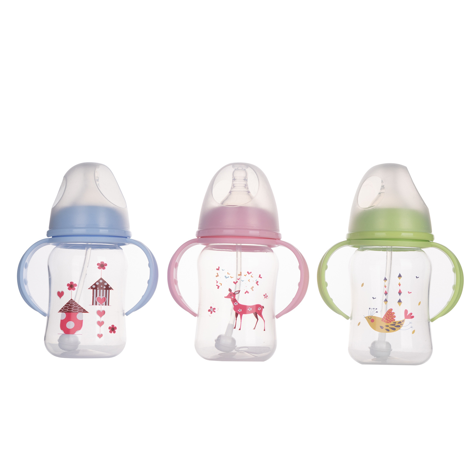 婴儿奶瓶厂家 新生儿宽口PP带柄自动奶瓶 240mL 母乳实感奶瓶