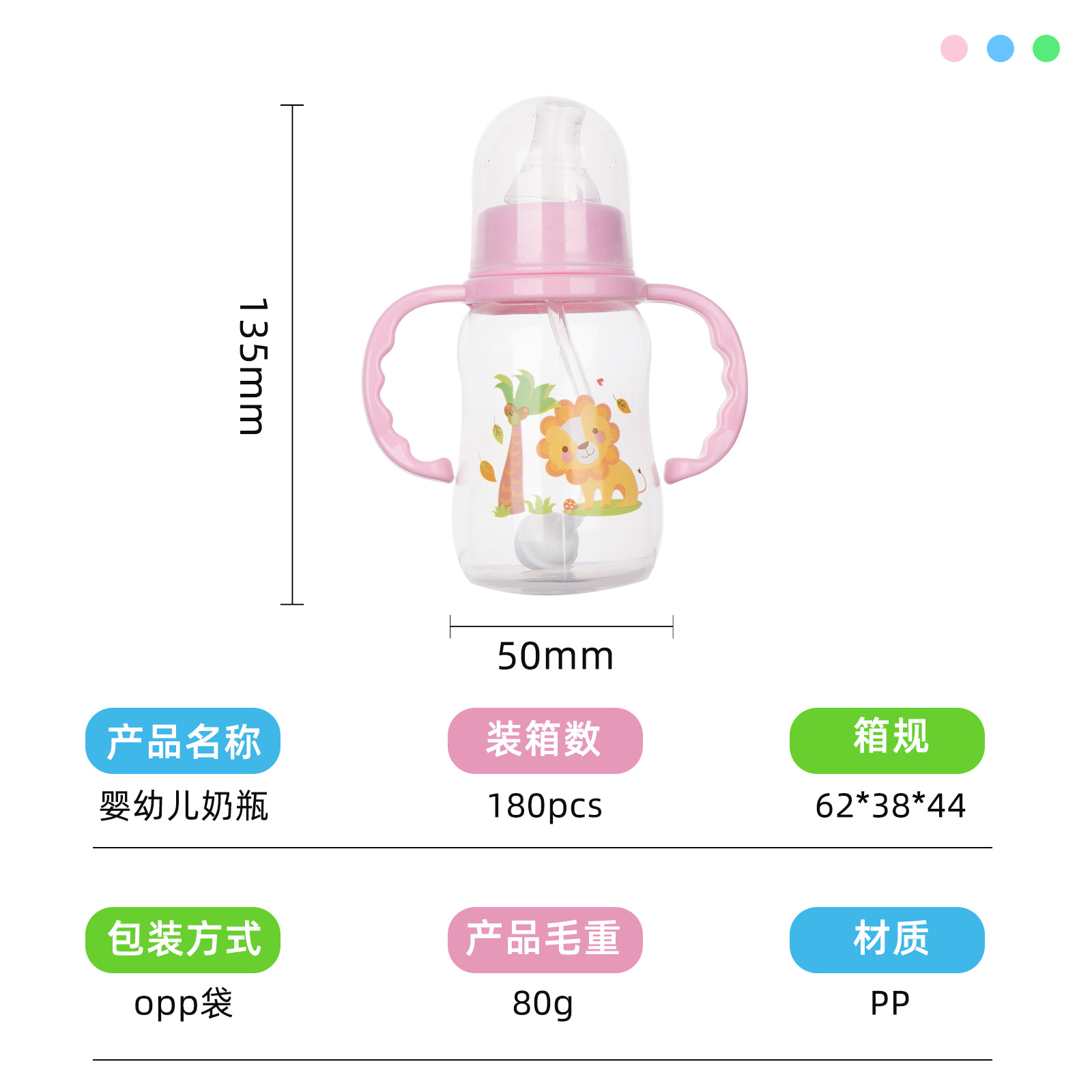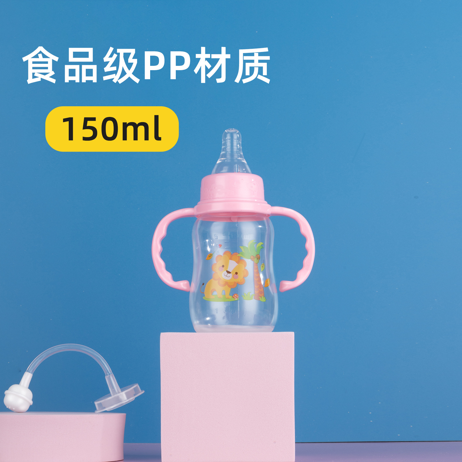 母婴新生儿婴儿标准口带手柄防胀气防呛pp奶瓶150ml0-6月奶瓶批发