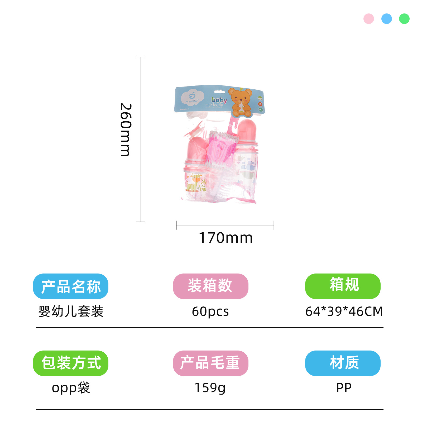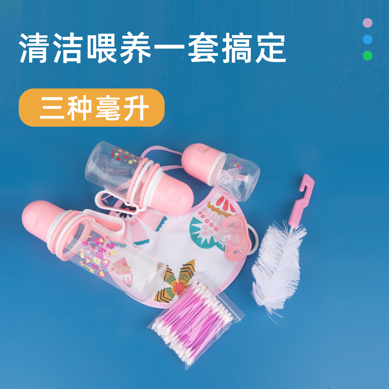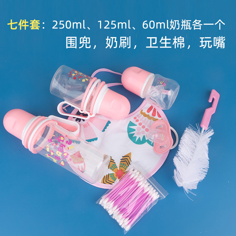 新生儿婴儿母婴标准口径奶瓶奶嘴玩嘴奶刷刷子围兜七件套套装批发