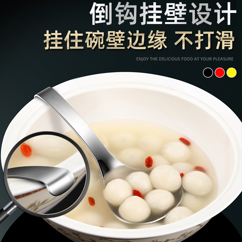 汤勺调羹挂壁汤匙304不锈钢六七分汤大号加深加长柄喝汤粥大头勺