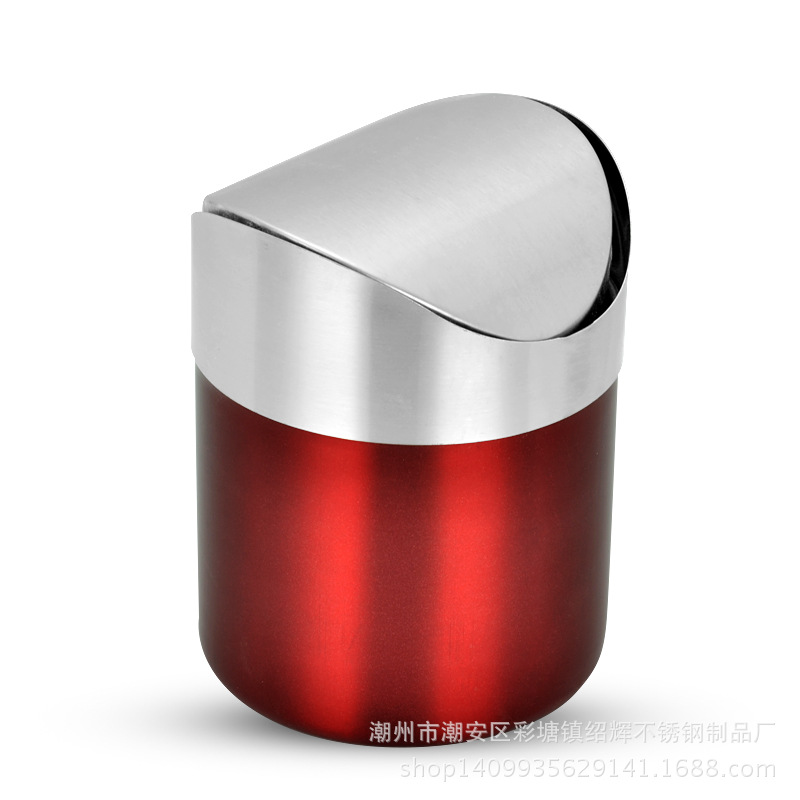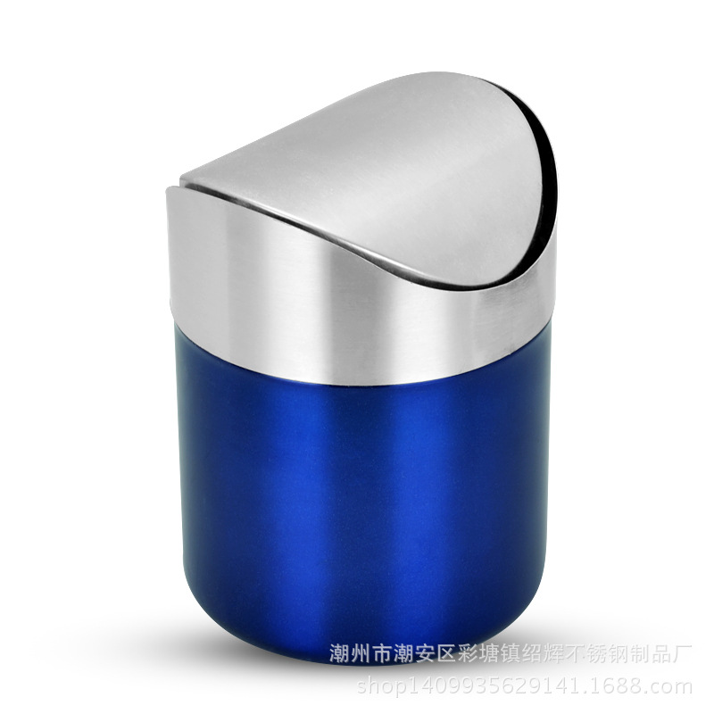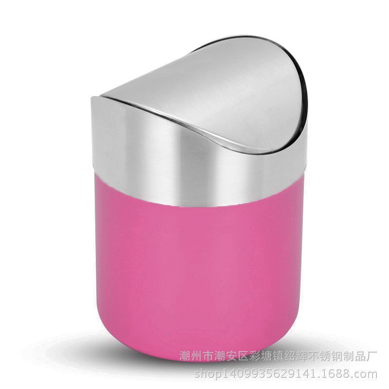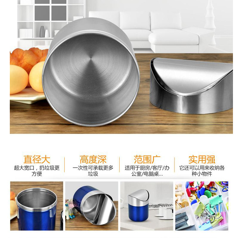创意不锈钢垃圾桶翻盖 办公迷你桌面垃圾桶车载日用品杂物置物筒