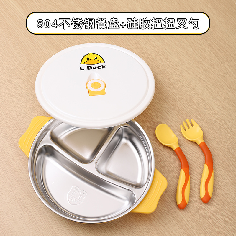 不锈钢儿童餐具一体式分格餐盘吸盘固定宝宝防摔辅食儿童餐盘批发