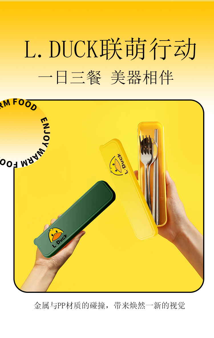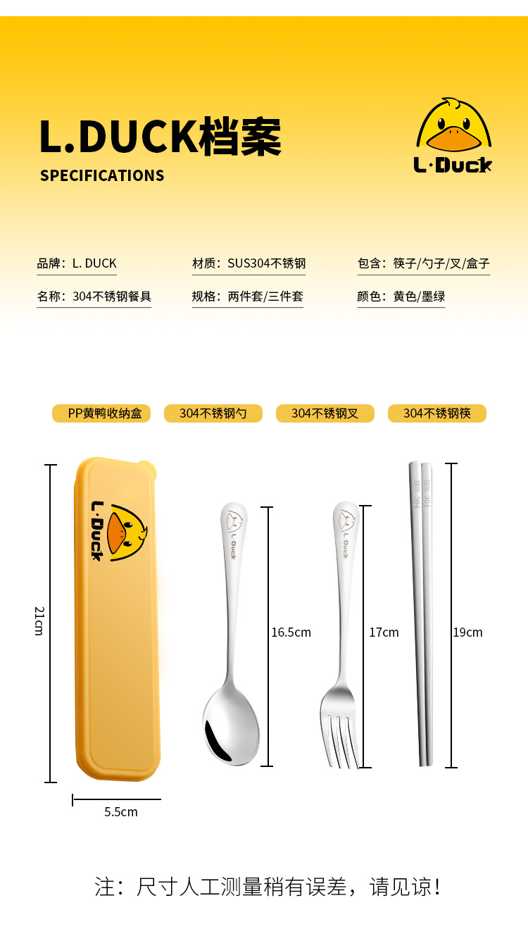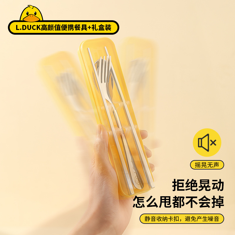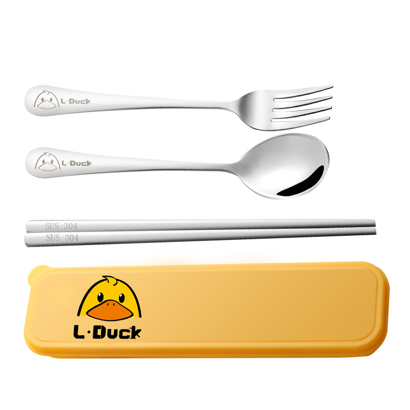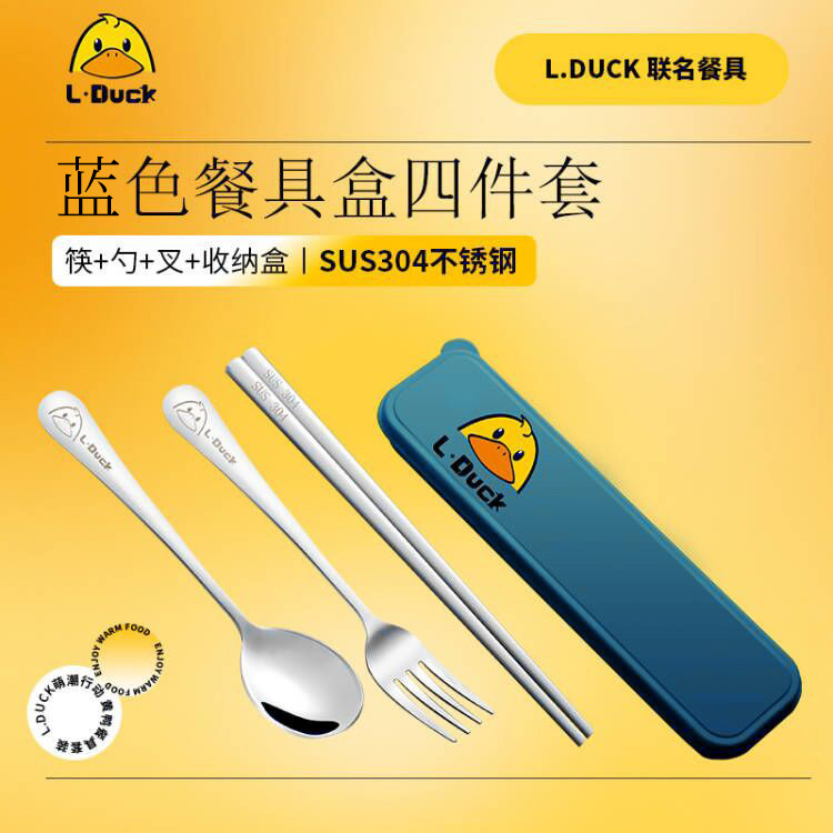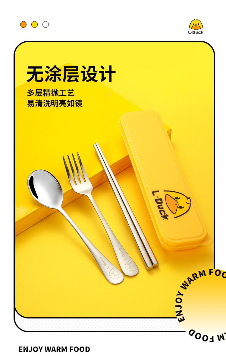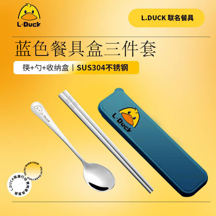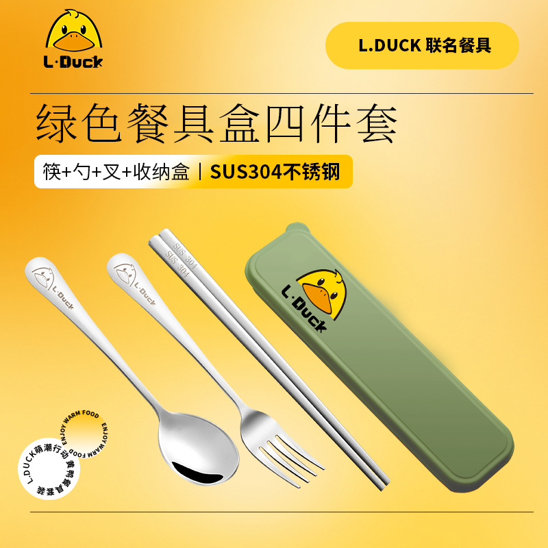 黄鸭联名304不锈钢筷勺叉套装学生上班族单人外带三件套便携餐具