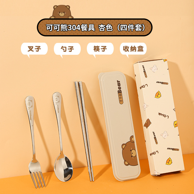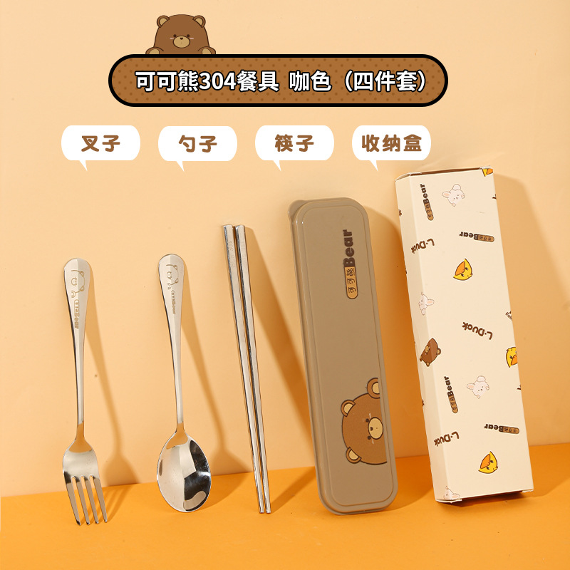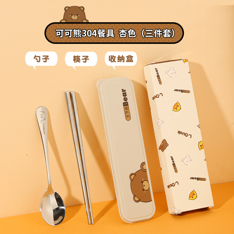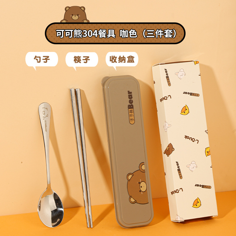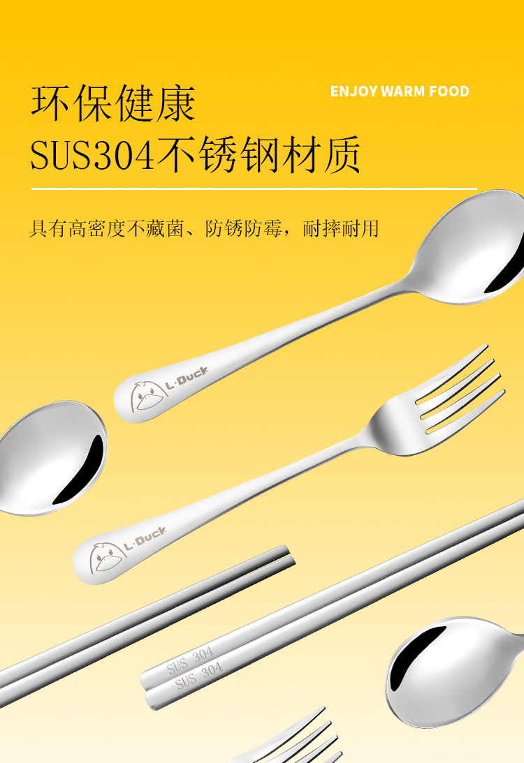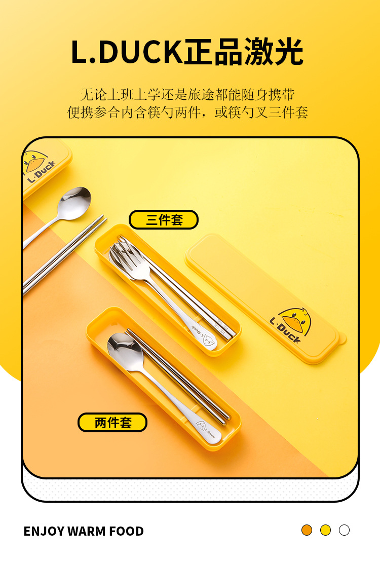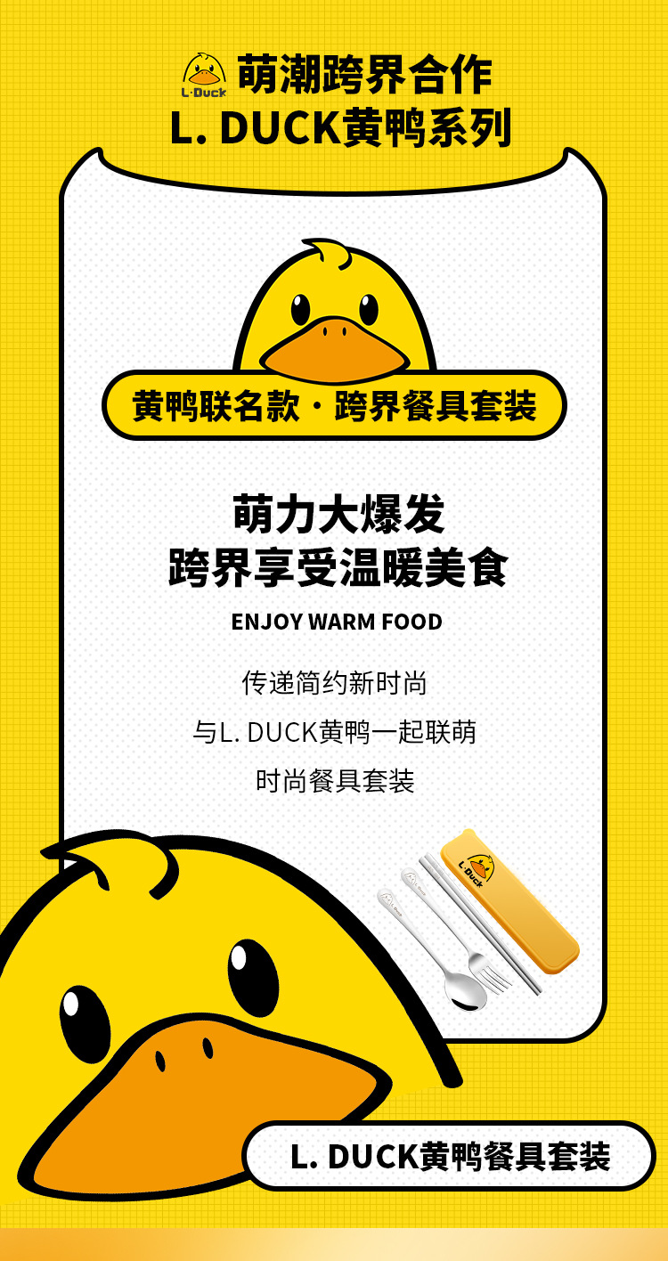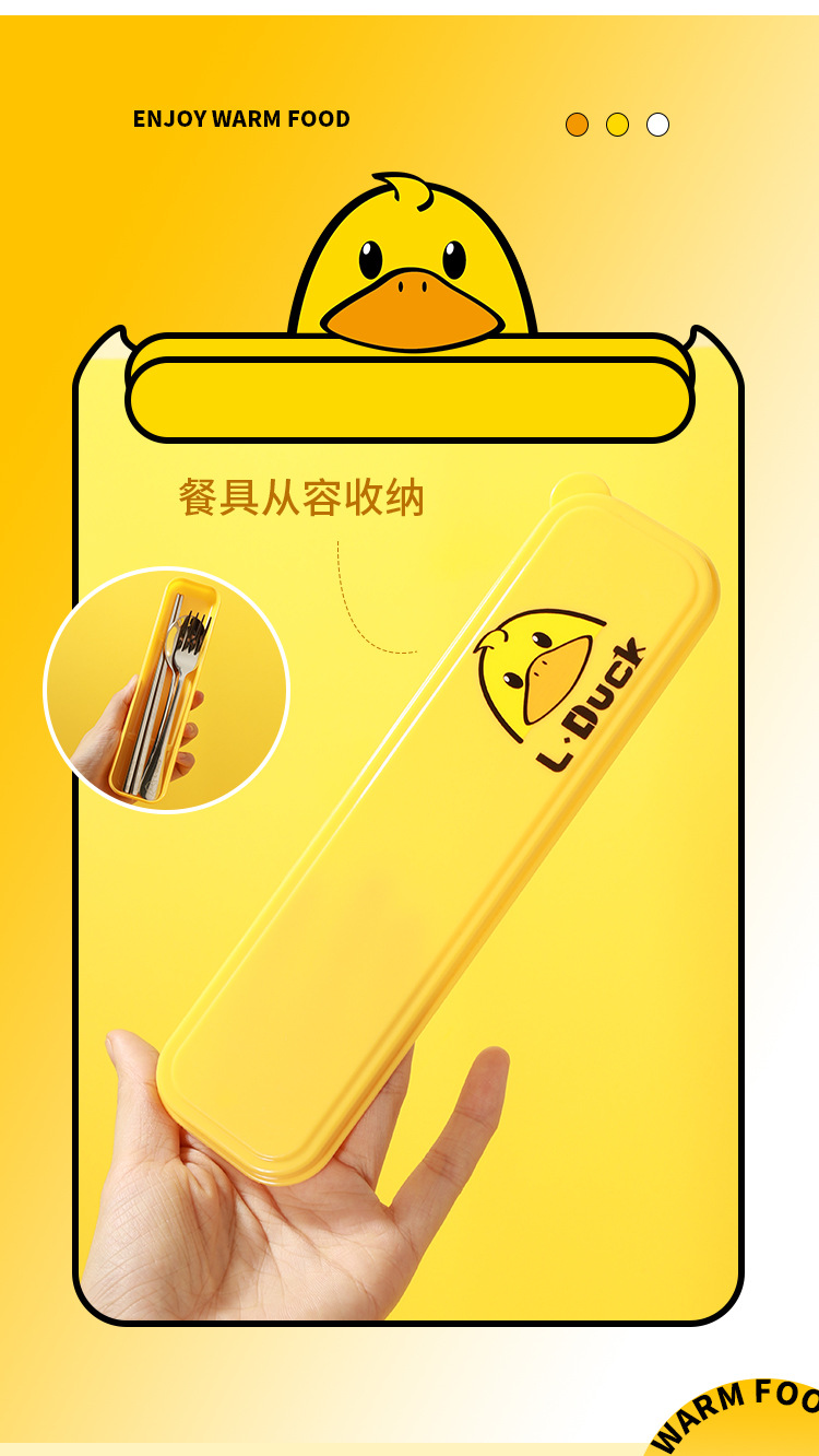 黄鸭联名304不锈钢筷勺叉套装学生上班族单人外带三件套便携餐具