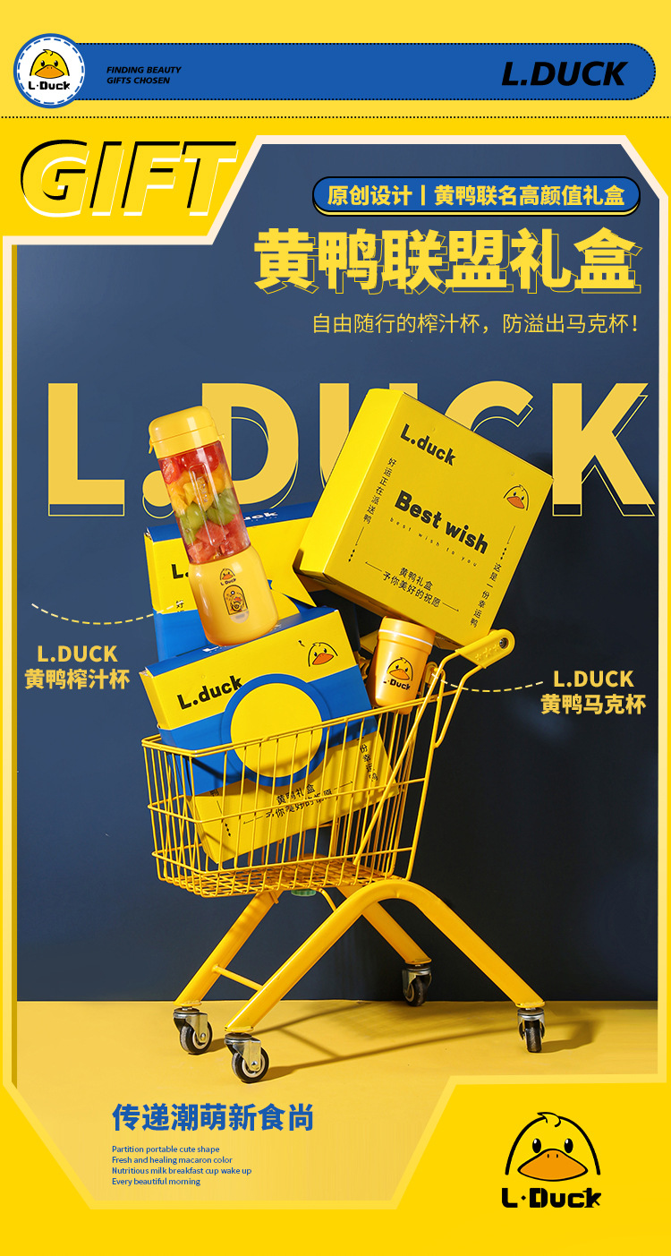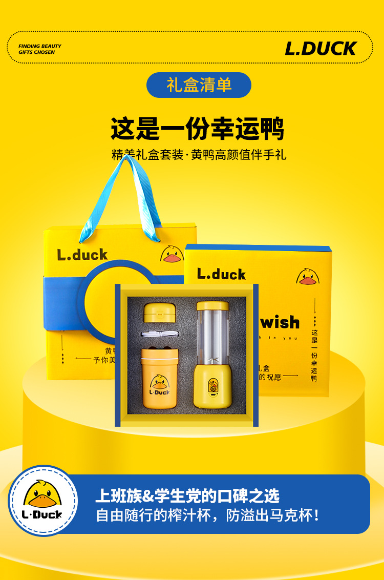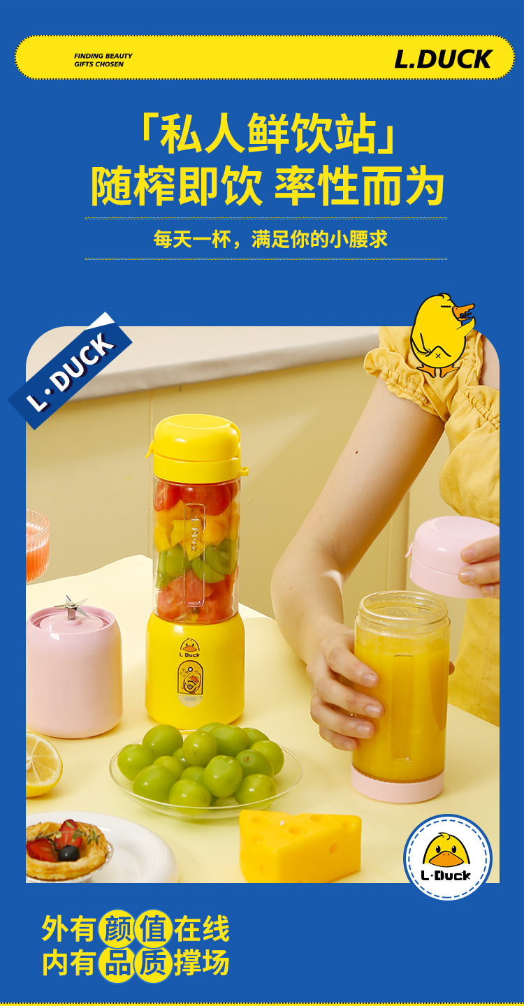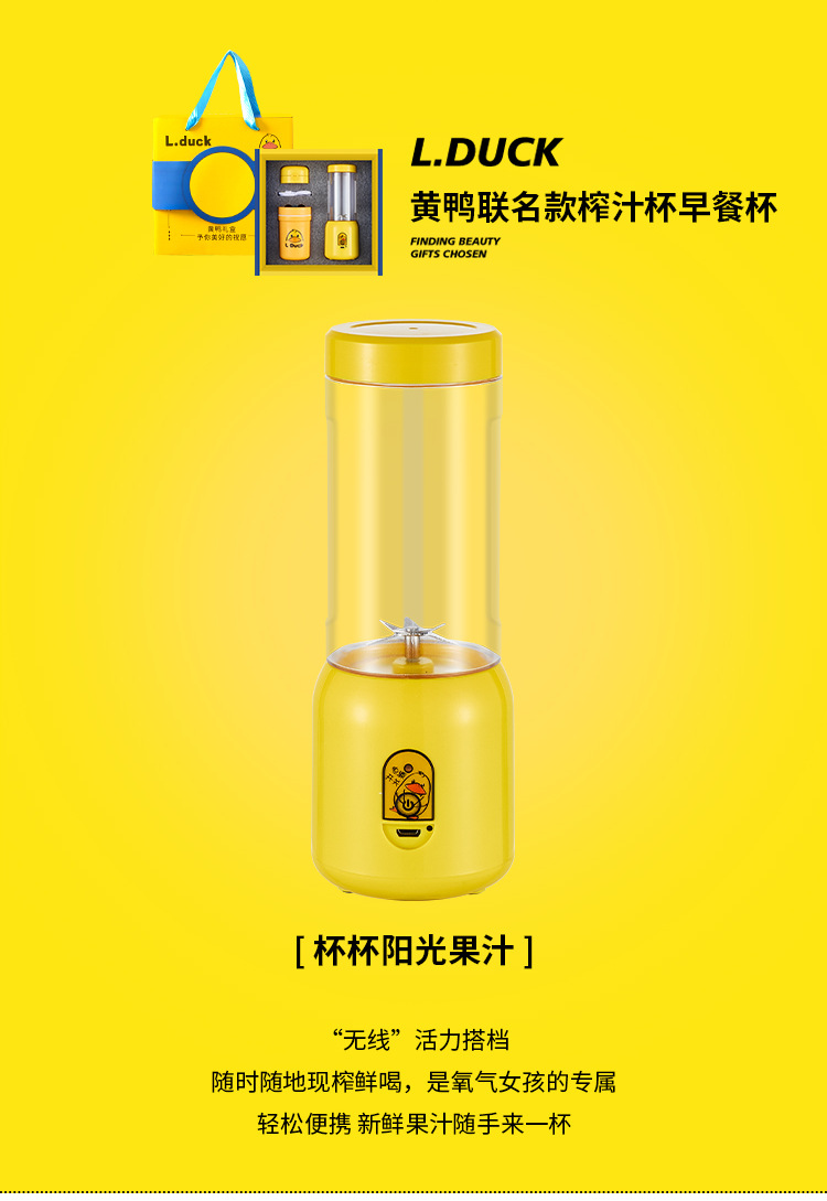 果蔬榨汁杯开业商务送礼礼品便携式果汁榨汁机塑料随身杯黄鸭礼盒