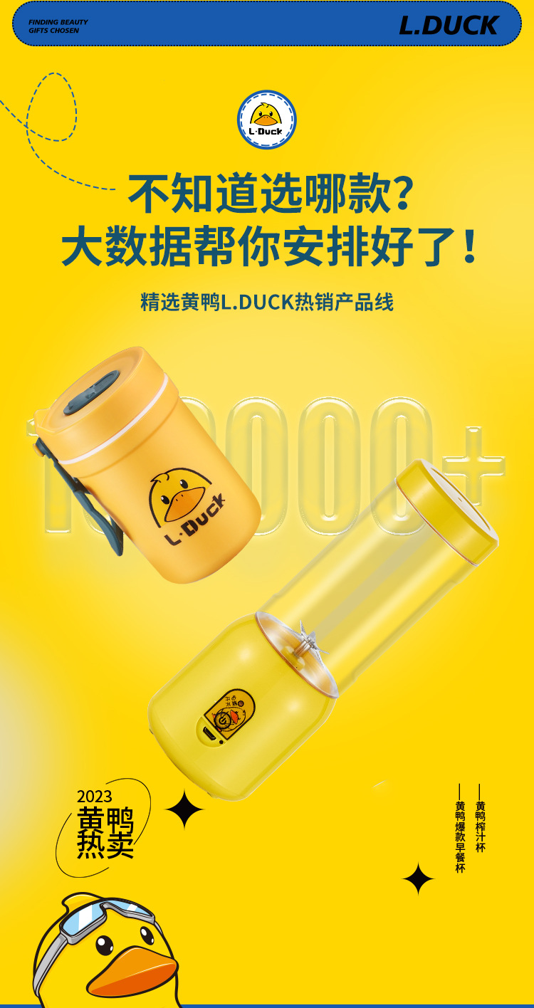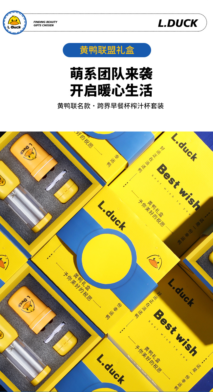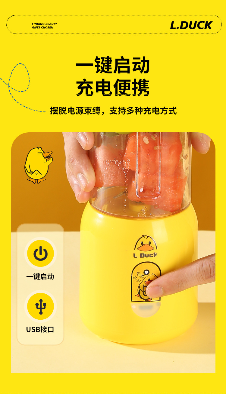 果蔬榨汁杯开业商务送礼礼品便携式果汁榨汁机塑料随身杯黄鸭礼盒