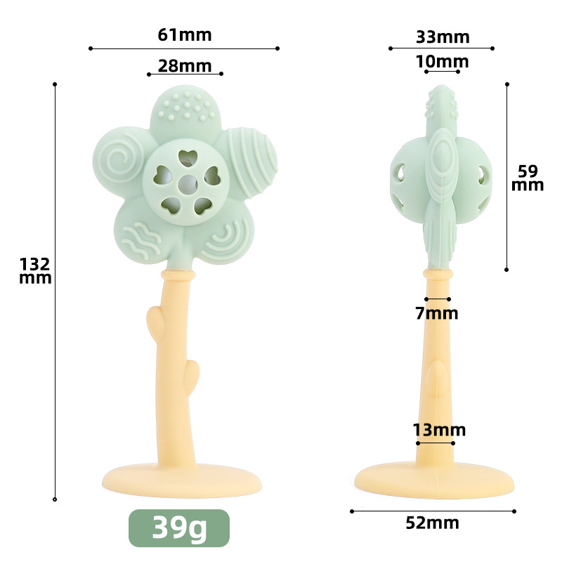 新款太阳花摇铃牙胶婴儿咬咬乐食品级硅胶可啃咬胶宝宝防吃手牙胶