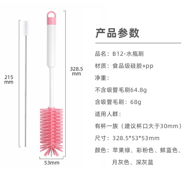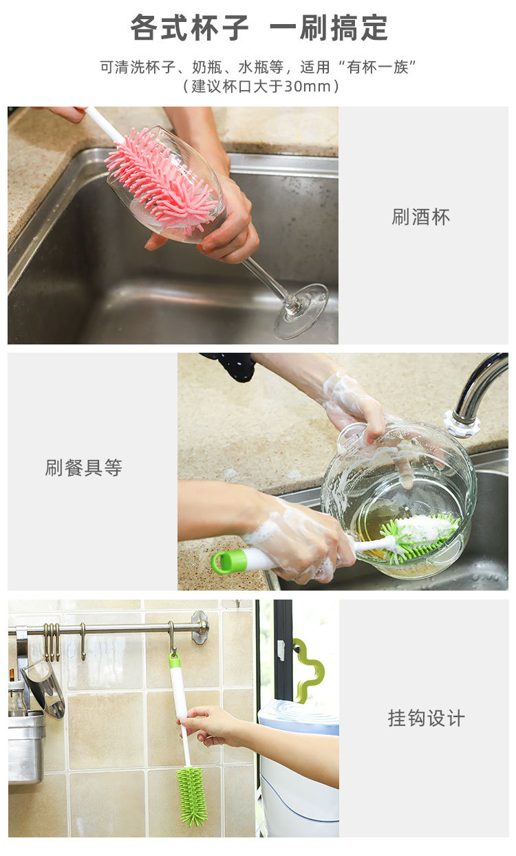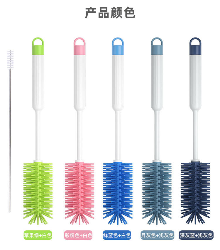 长柄水杯刷子硅胶软毛刷耐高温婴儿奶瓶刷奶嘴吸管刷硅胶水杯刷
