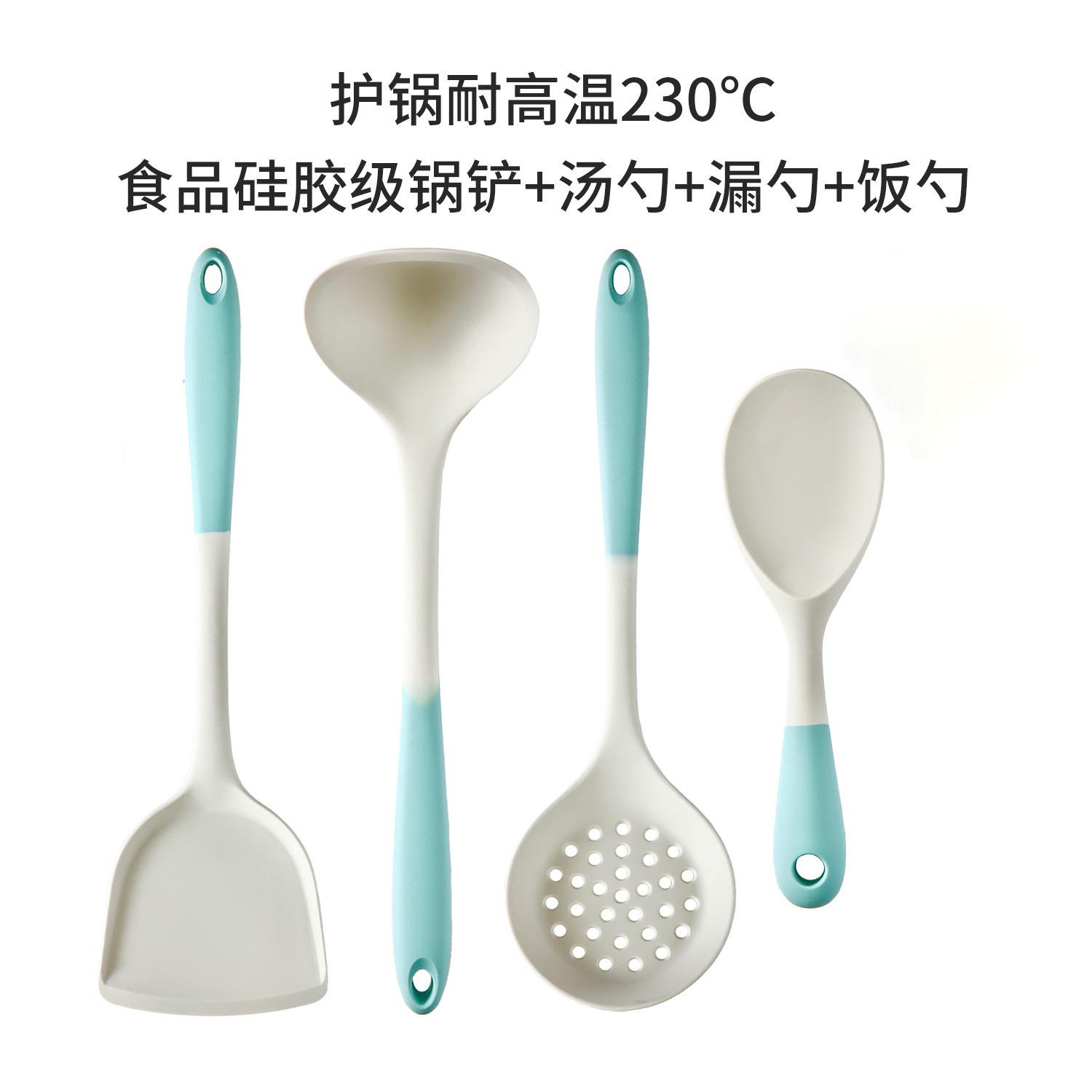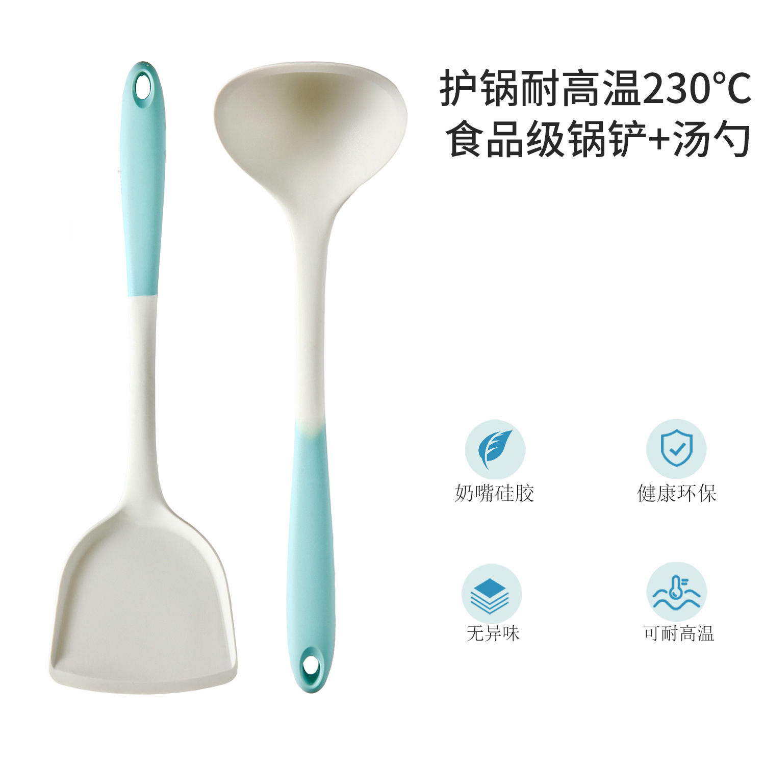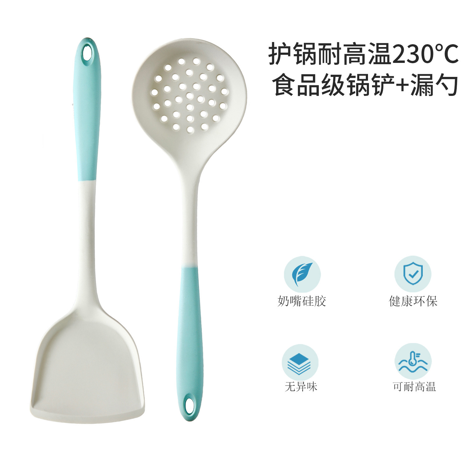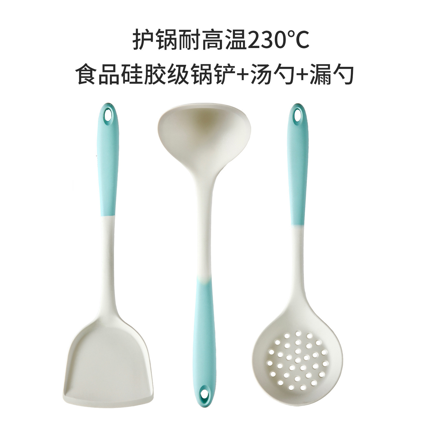 双色蓝白硅胶厨具硅胶锅铲全包漏勺汤勺饭勺多功能烹饪勺铲套装