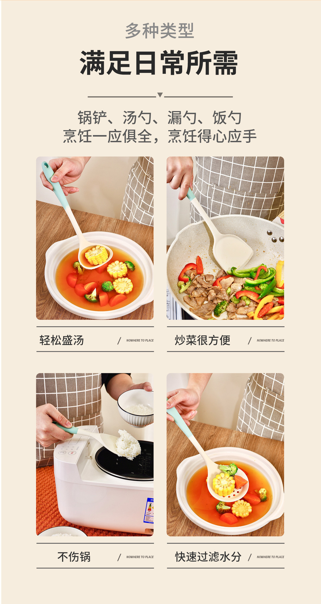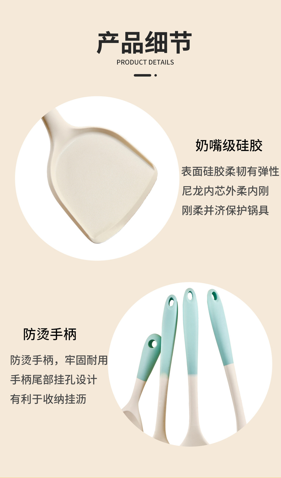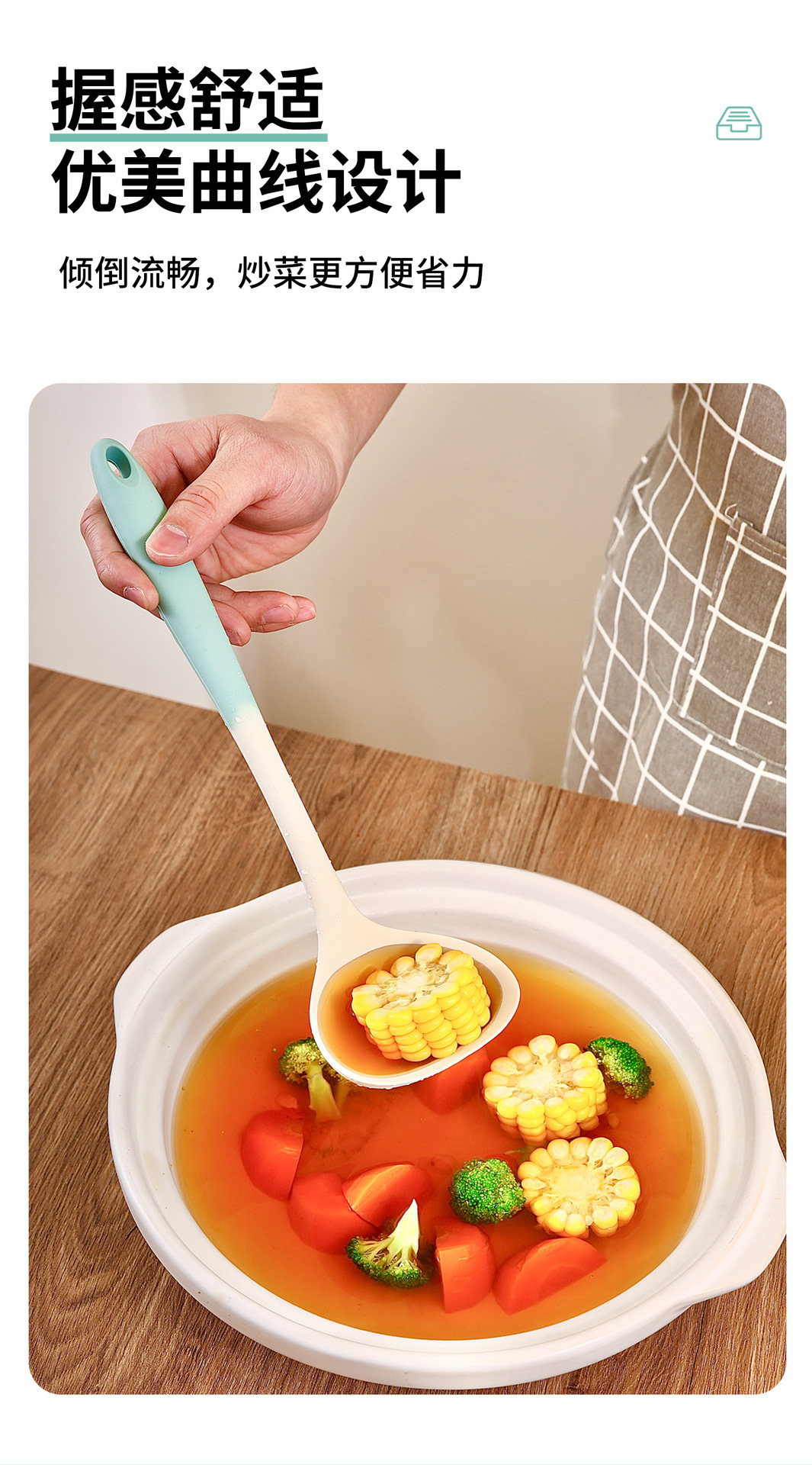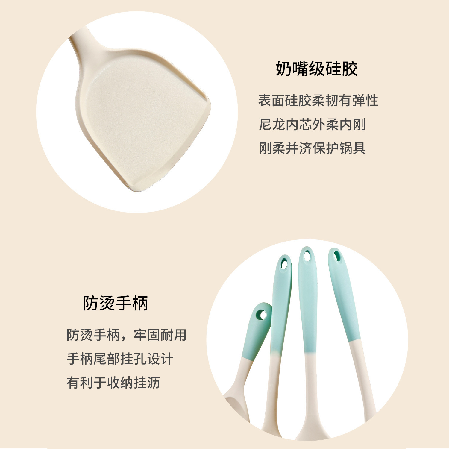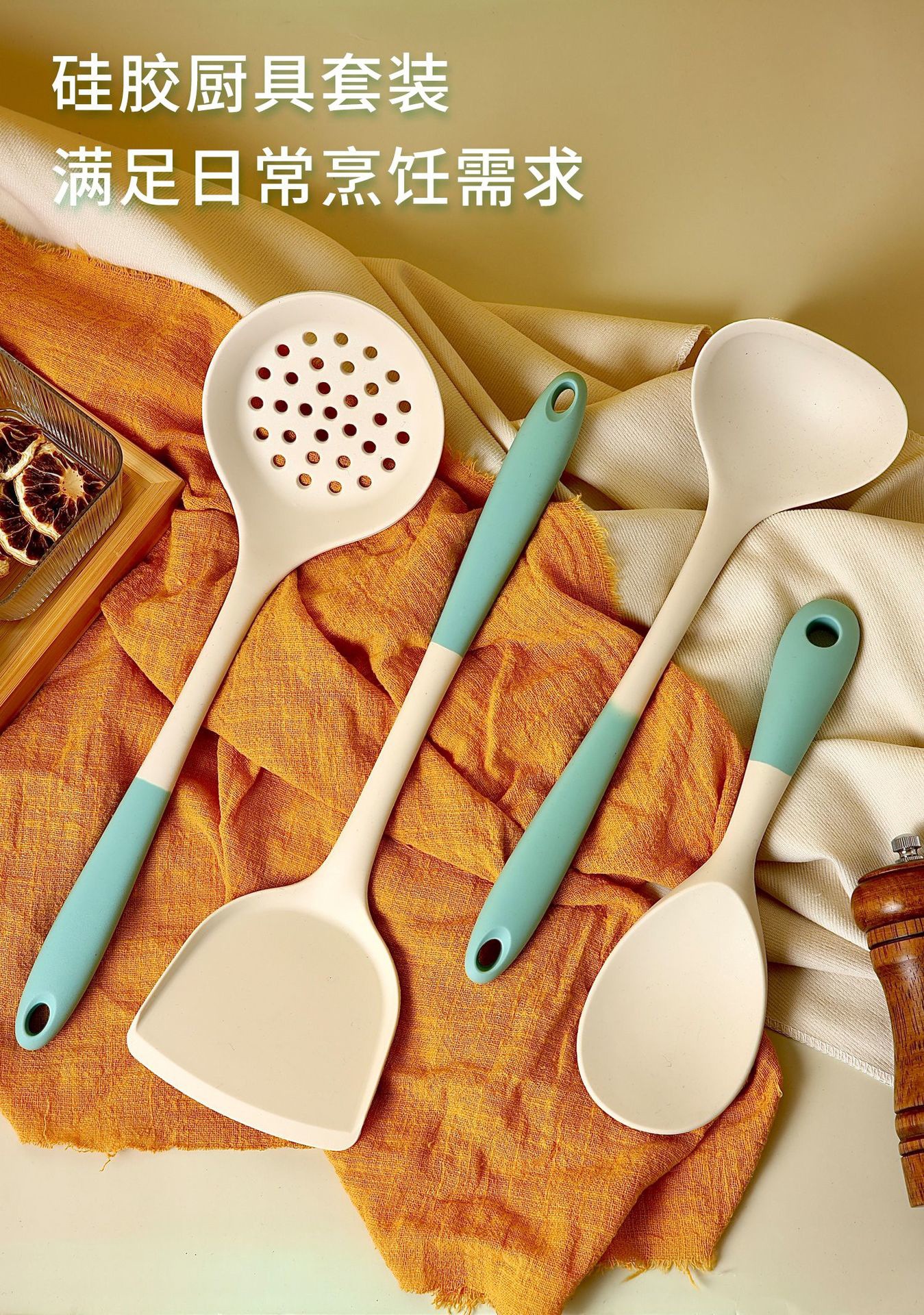 双色蓝白硅胶厨具硅胶锅铲全包漏勺汤勺饭勺多功能烹饪勺铲套装