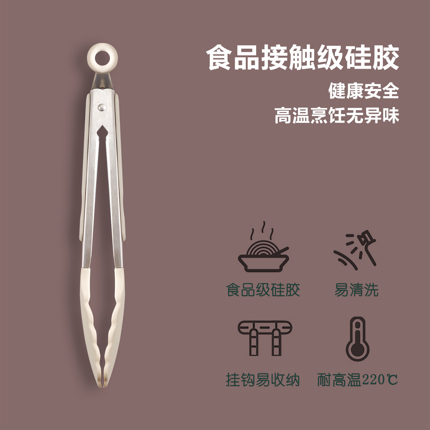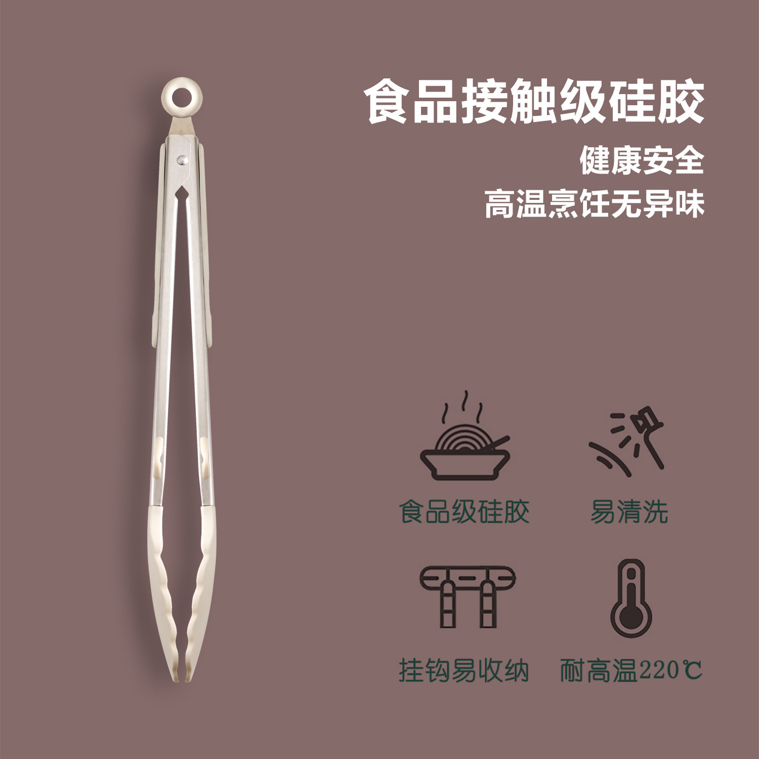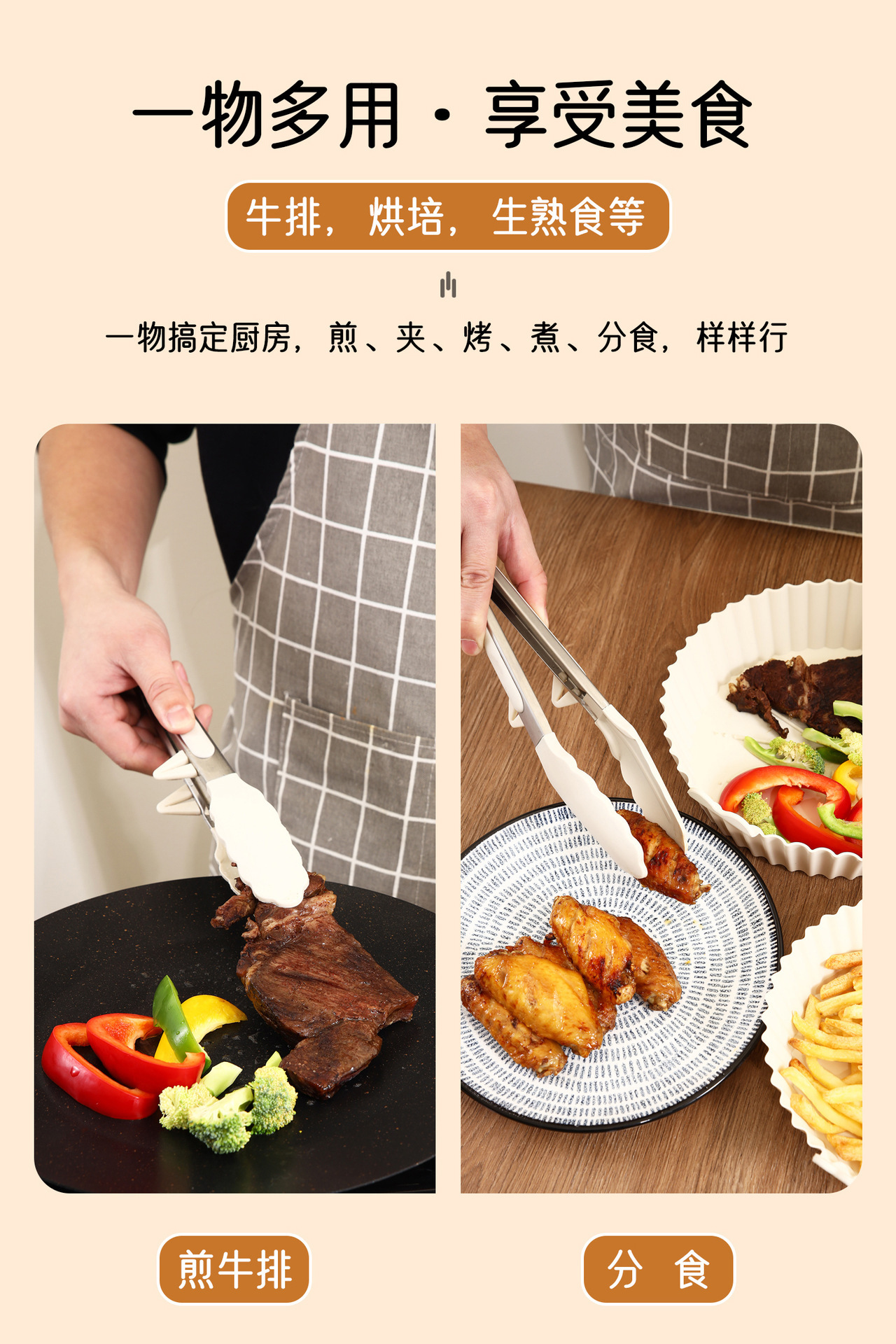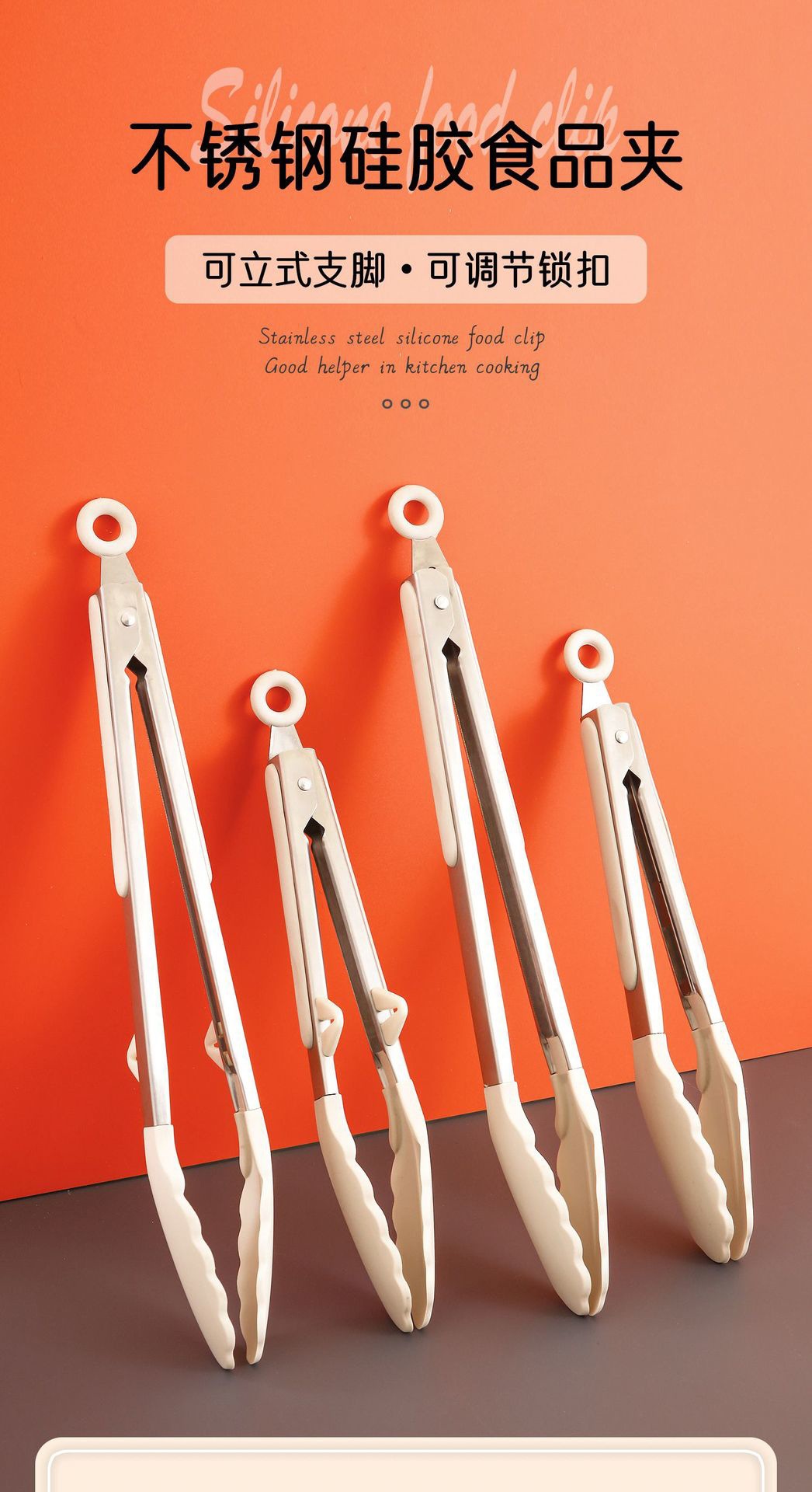 食物夹不锈钢防烫食品夹面包夹9寸12寸耐高温防滑硅胶支架烧烤夹