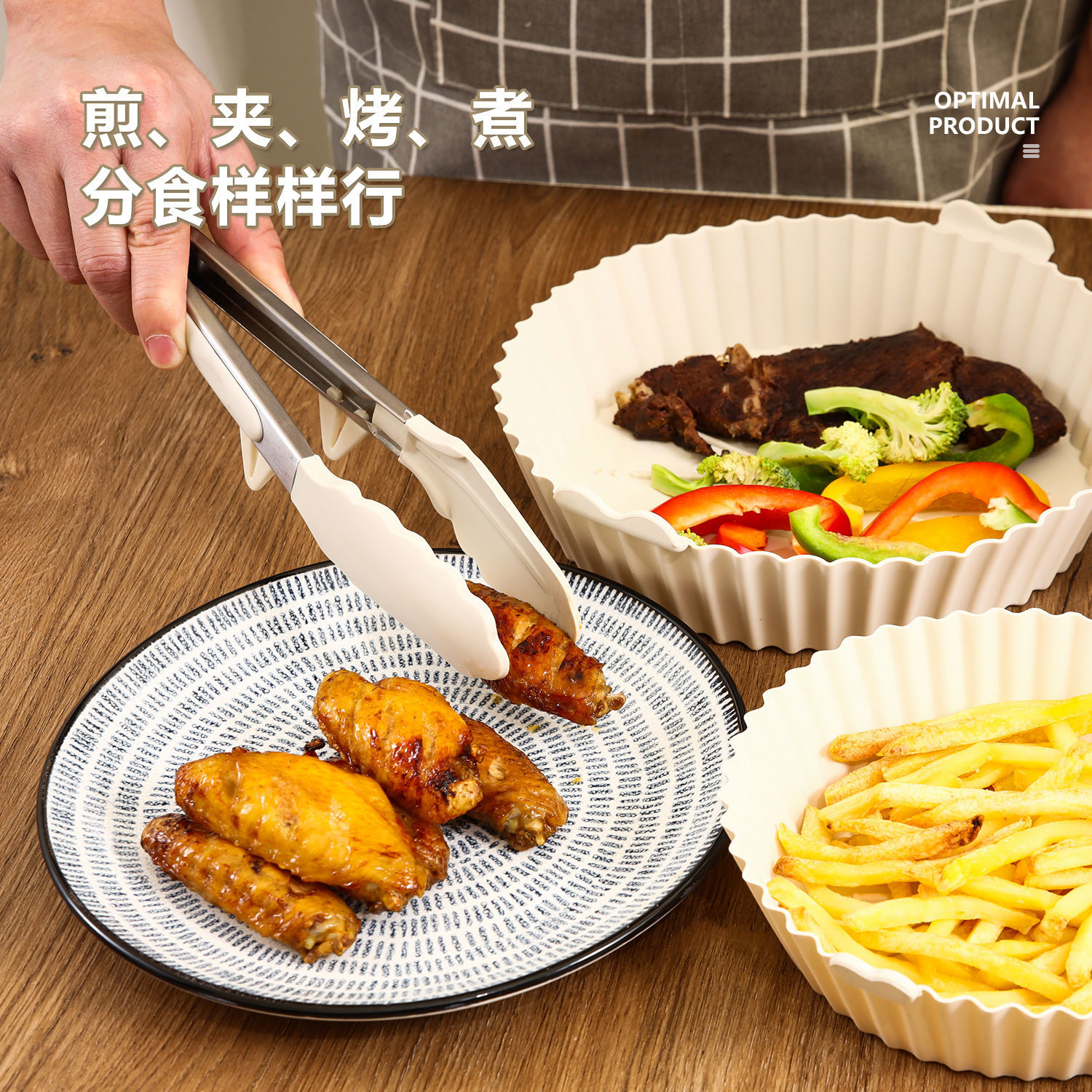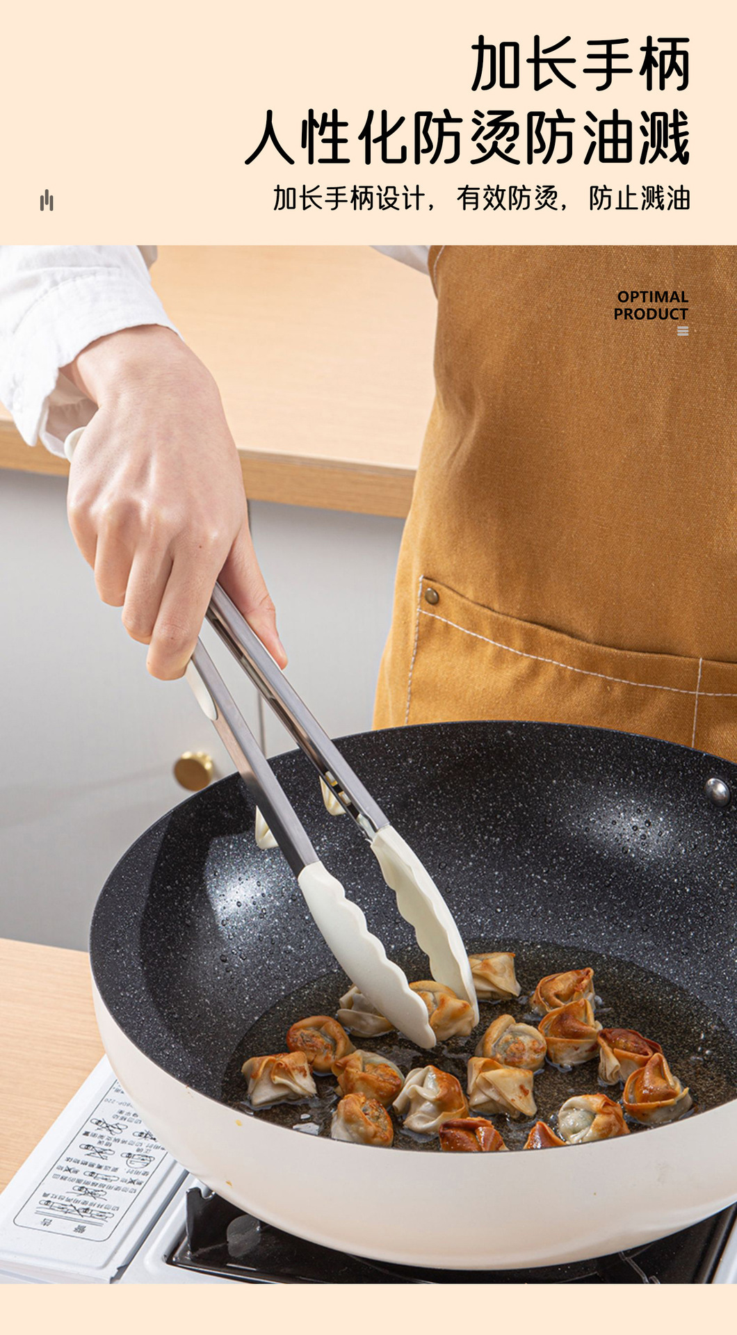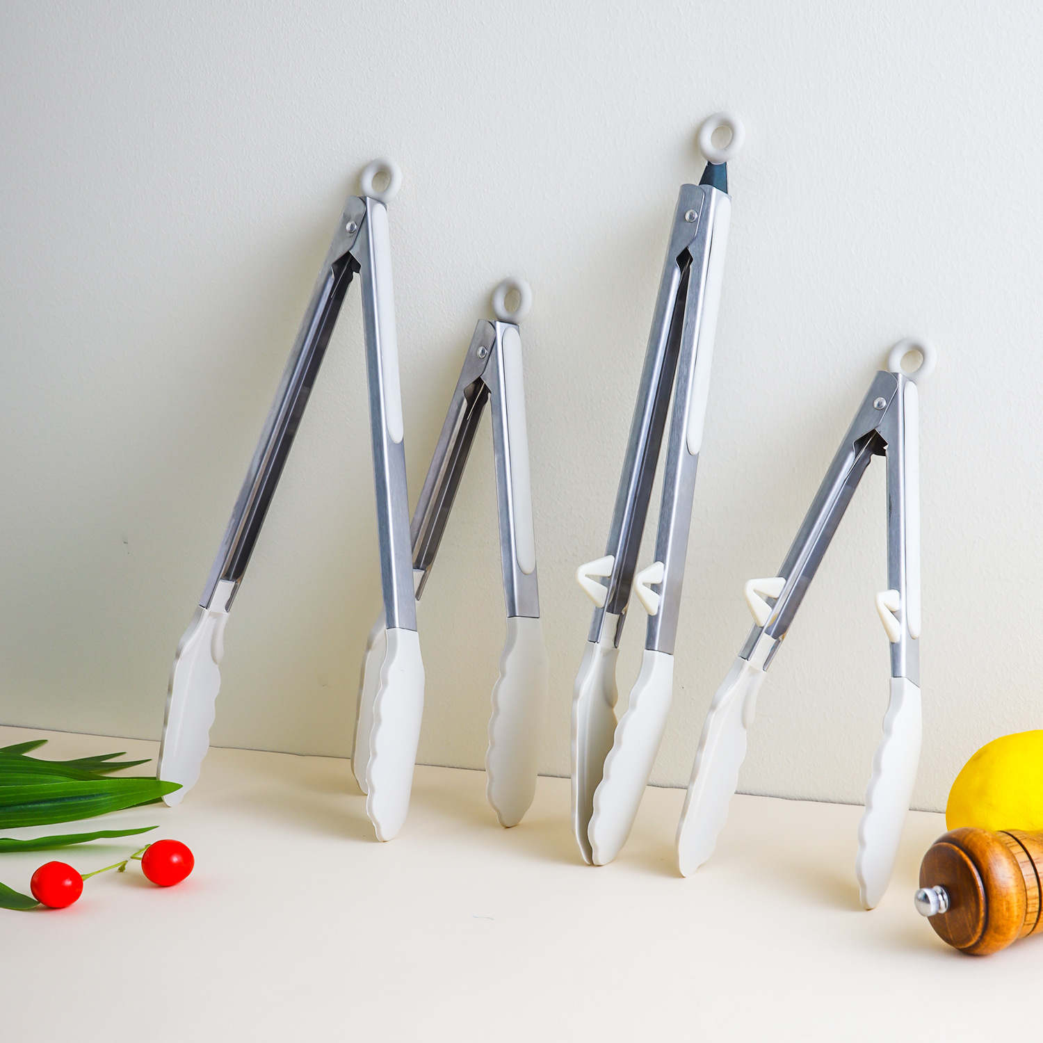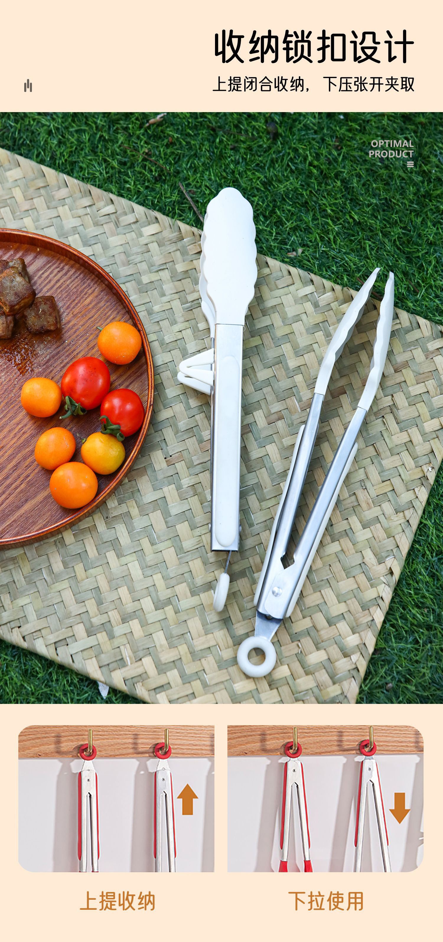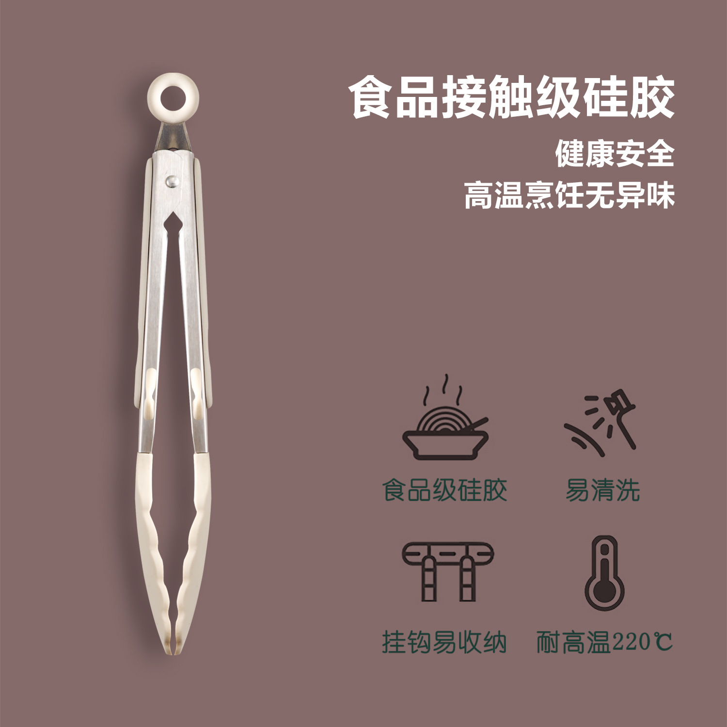 食物夹不锈钢防烫食品夹面包夹9寸12寸耐高温防滑硅胶支架烧烤夹