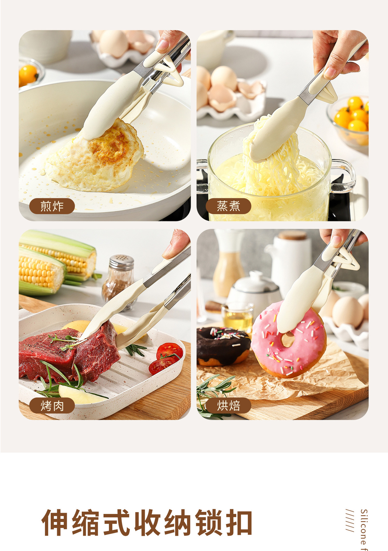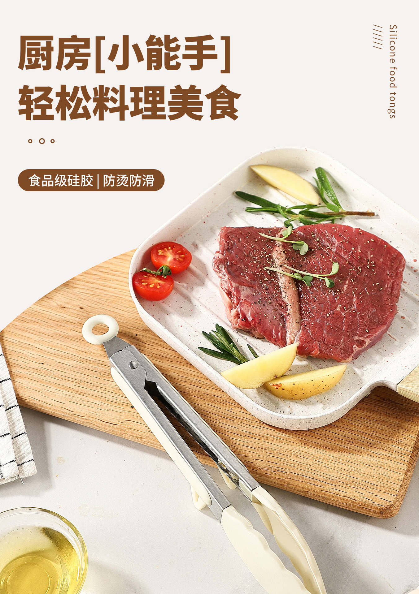 硅胶食物夹子户外烧烤夹牛排面包防烫烤肉铲子不锈钢自助餐夹子