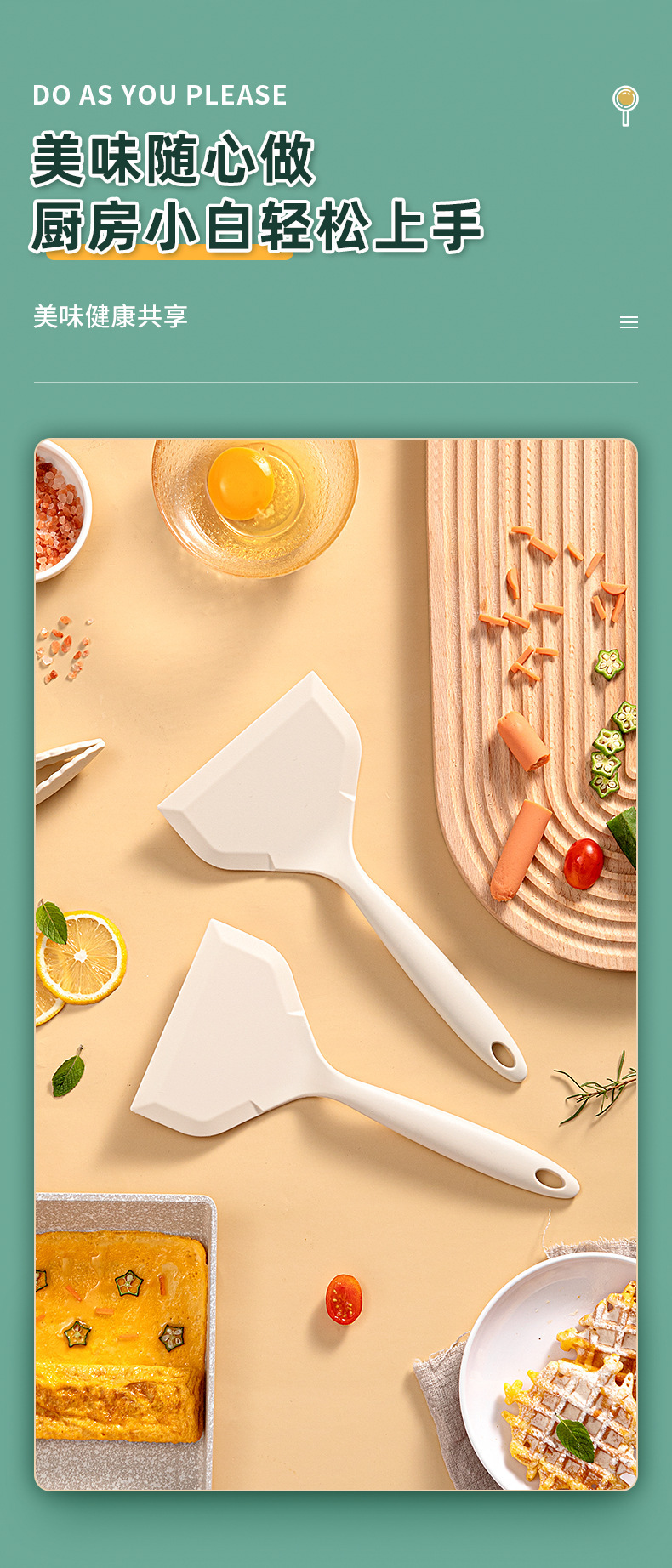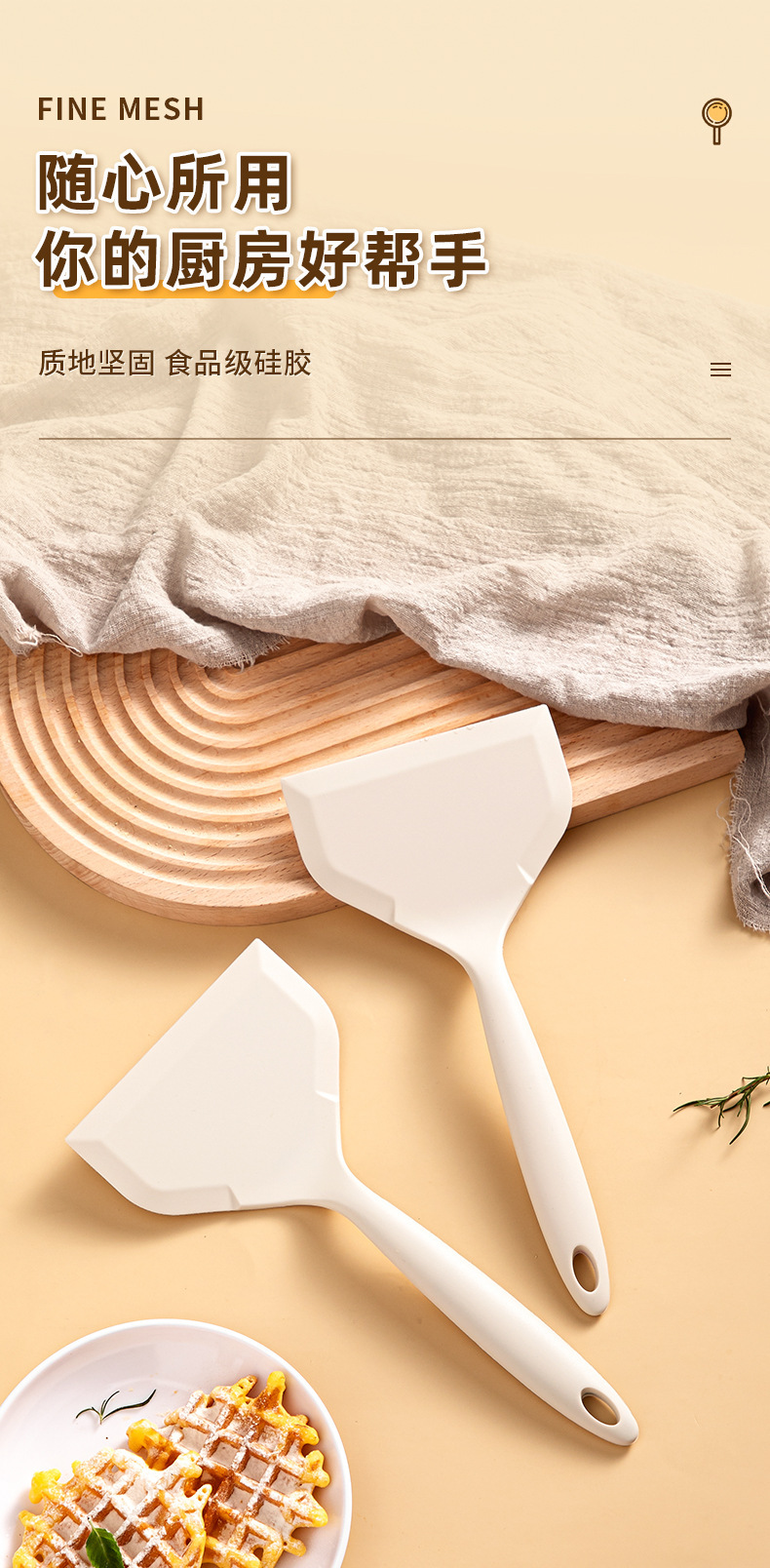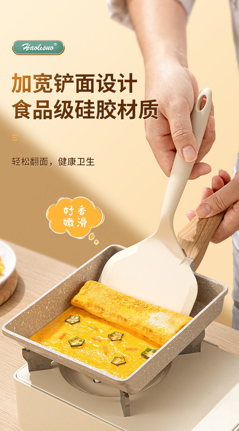 日式硅胶玉子烧专用铲耐高温锅铲家用食品级不粘锅烙饼煎饼铲子白