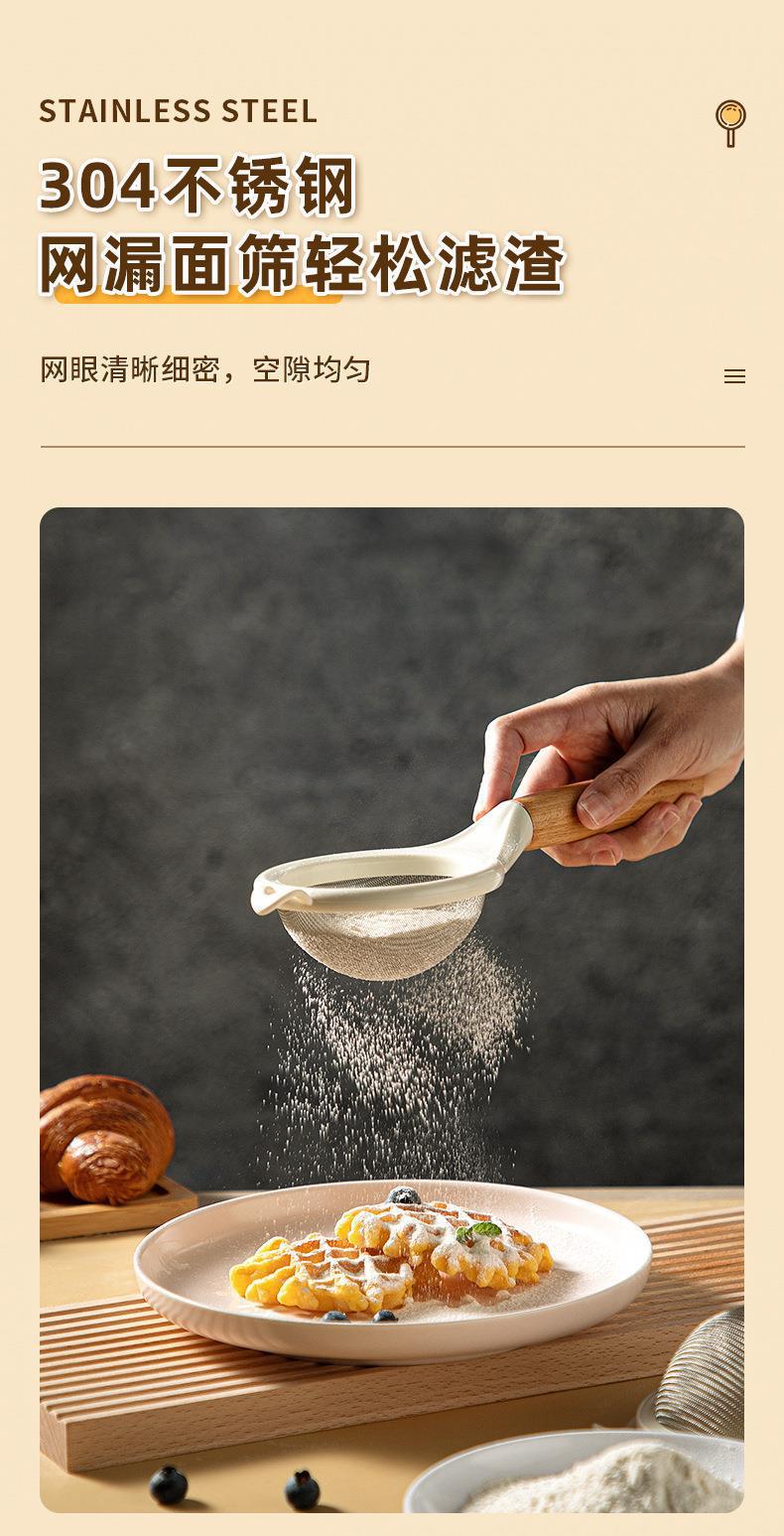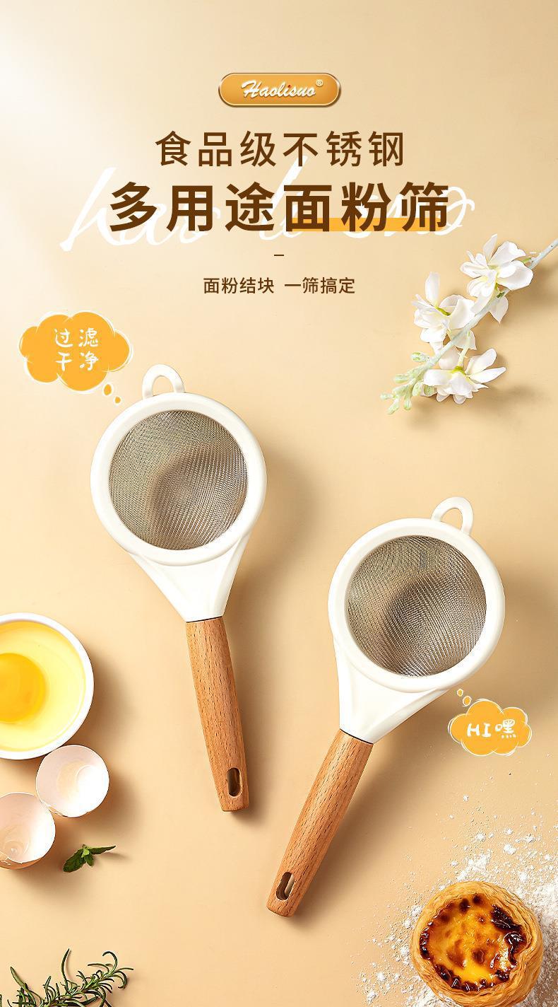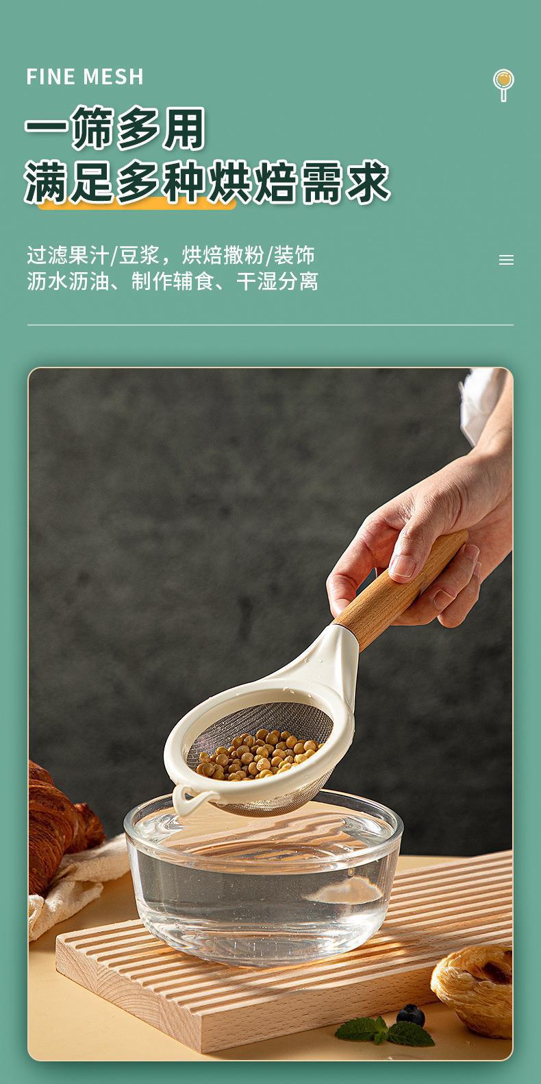 新款木柄不锈钢面粉筛子厨房家用烘焙细漏网糖粉筛果汁豆浆隔热卖