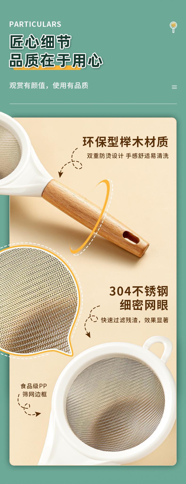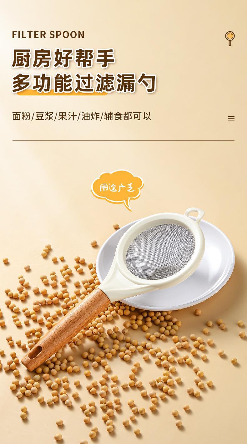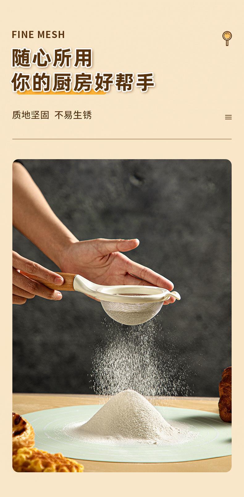 新款木柄不锈钢面粉筛子厨房家用烘焙细漏网糖粉筛果汁豆浆隔热卖
