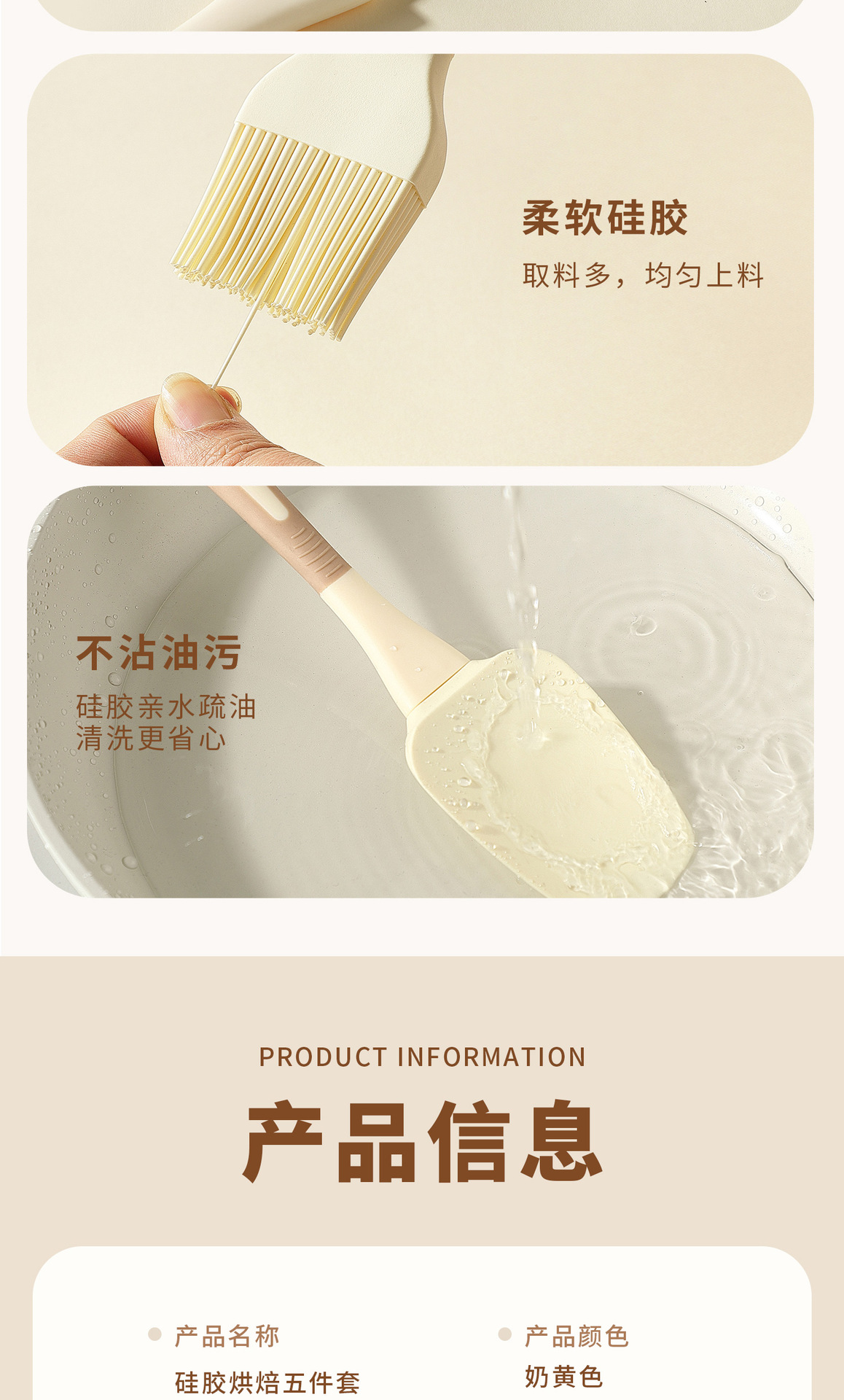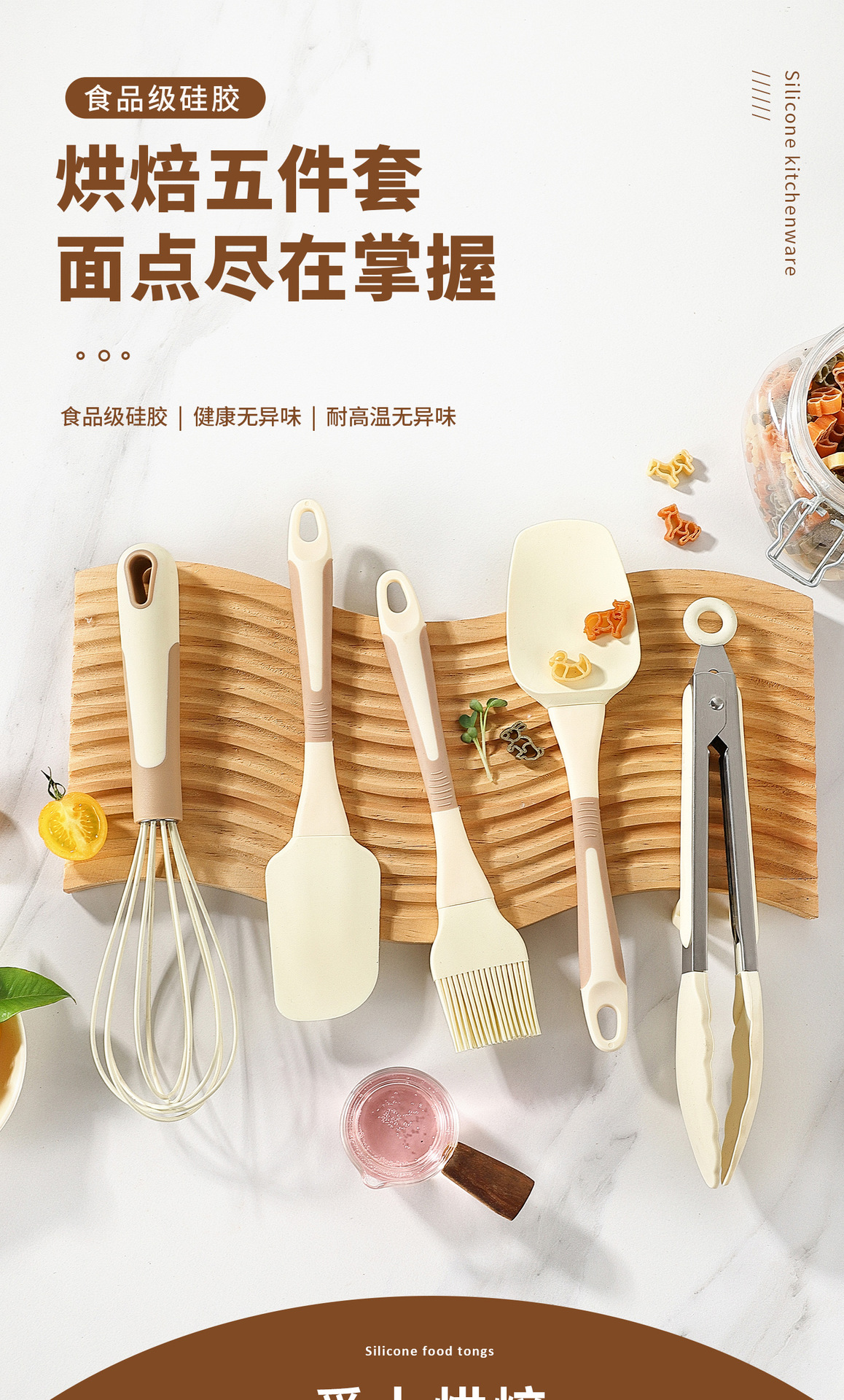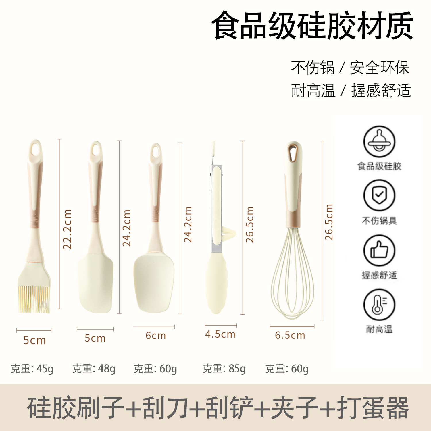 跨境硅胶烘焙五件套硅胶油刷打蛋器刮刀硅胶夹子硅胶新款烘焙套装