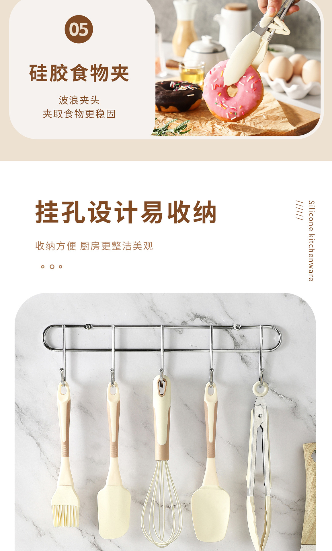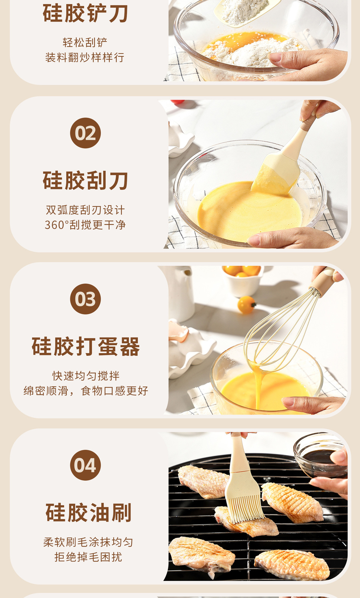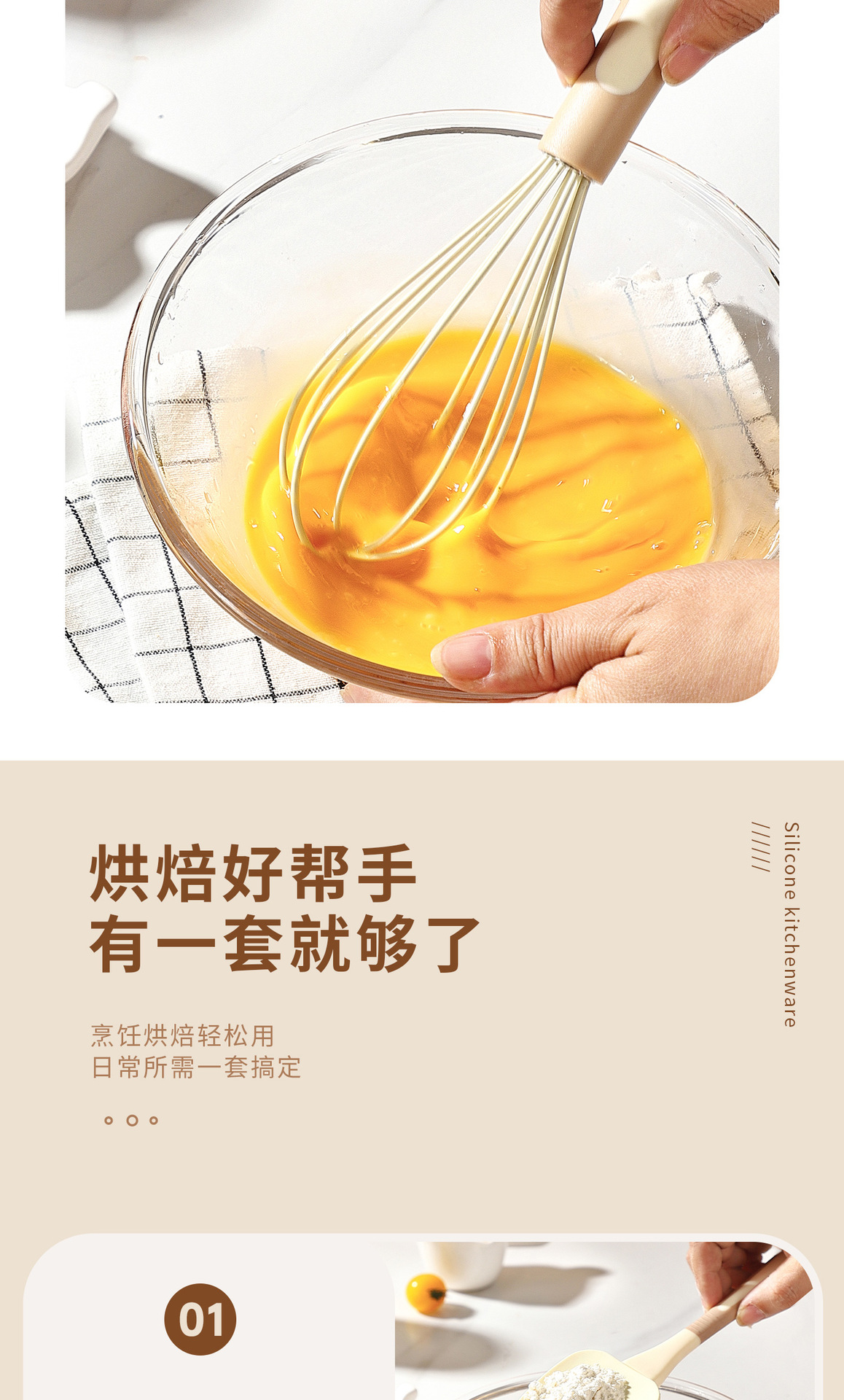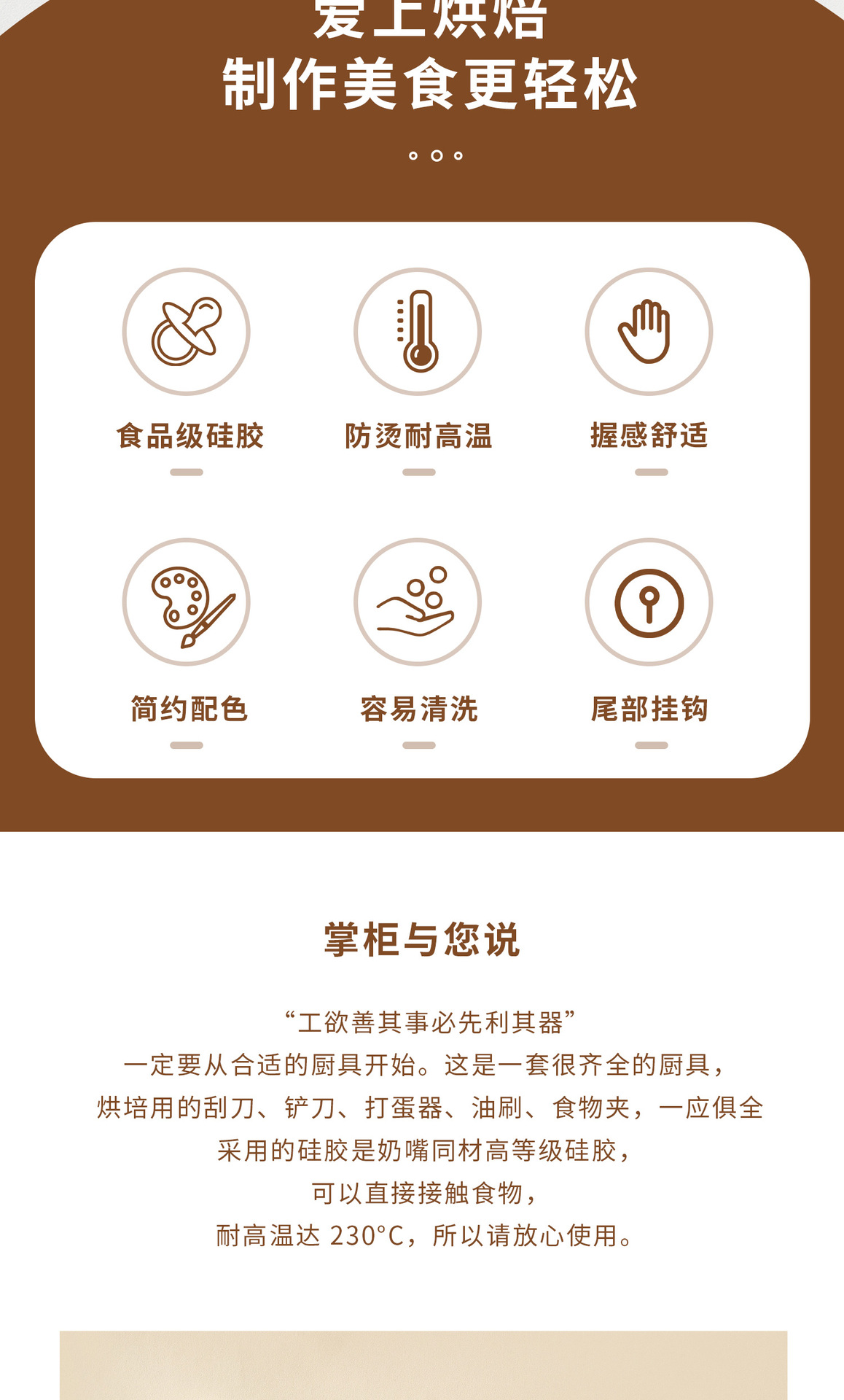 跨境硅胶烘焙五件套硅胶油刷打蛋器刮刀硅胶夹子硅胶新款烘焙套装