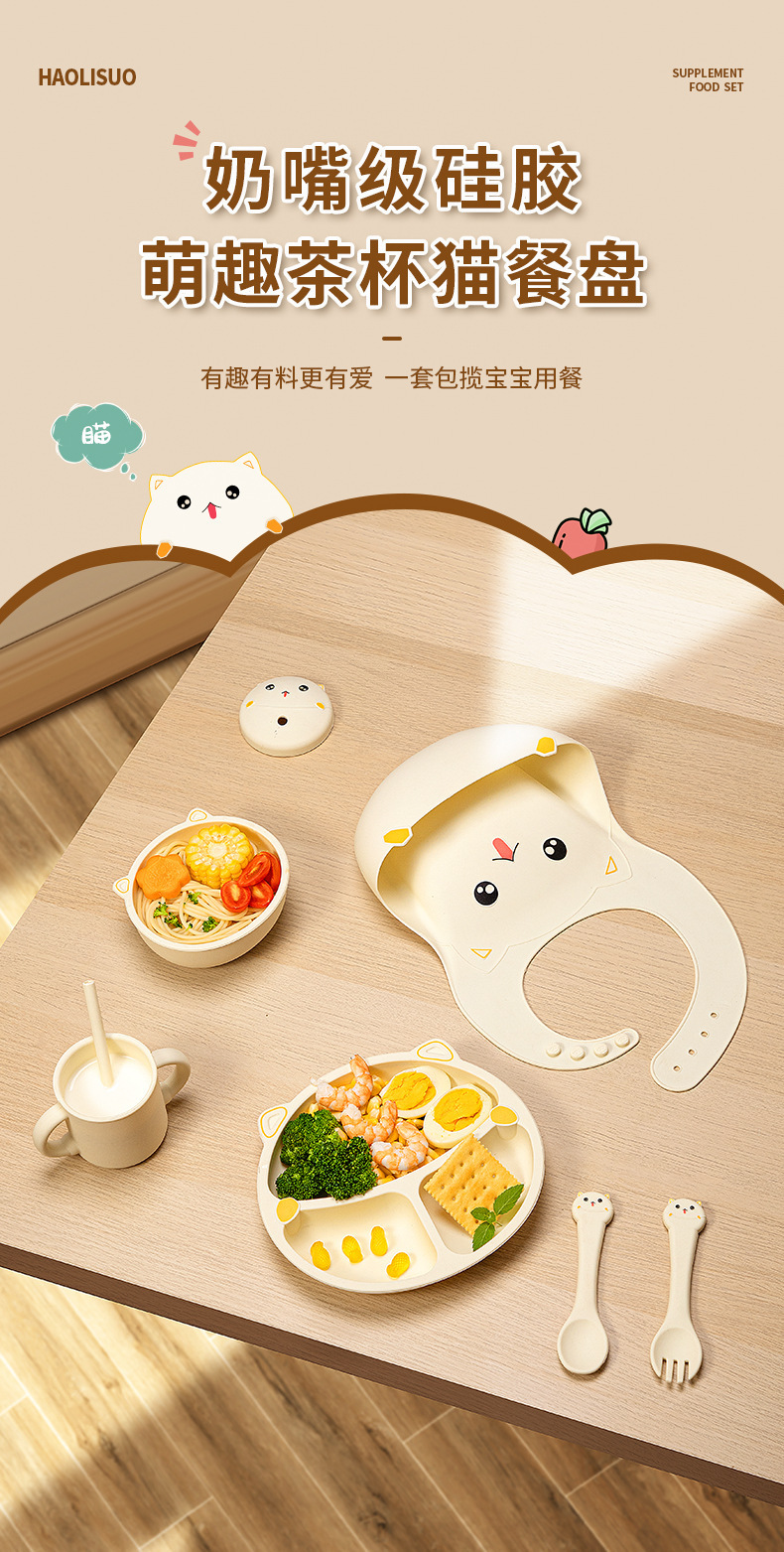 食品级硅胶儿童围兜餐盘婴儿辅食母婴餐具勺宝宝饭碗全套装