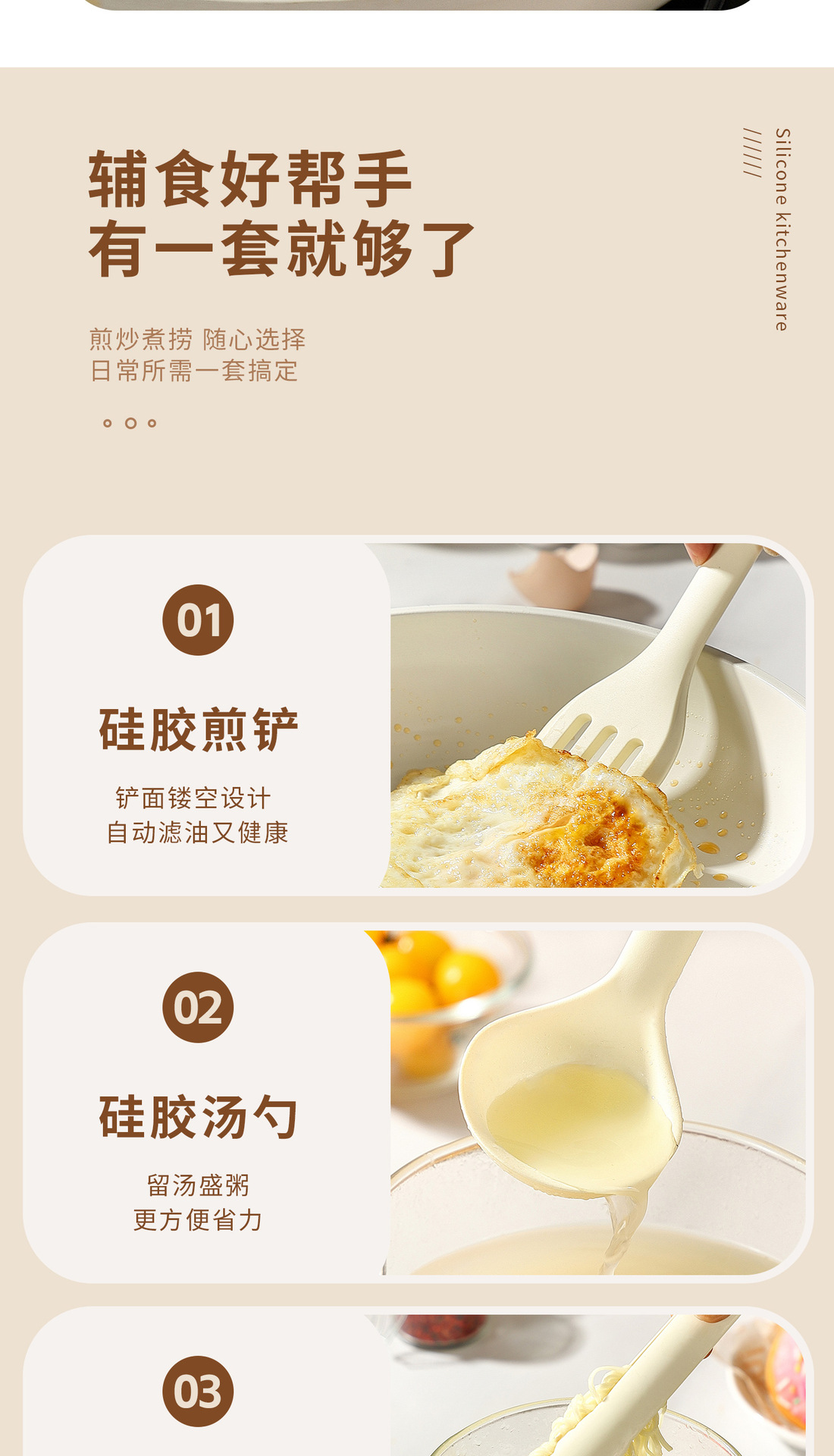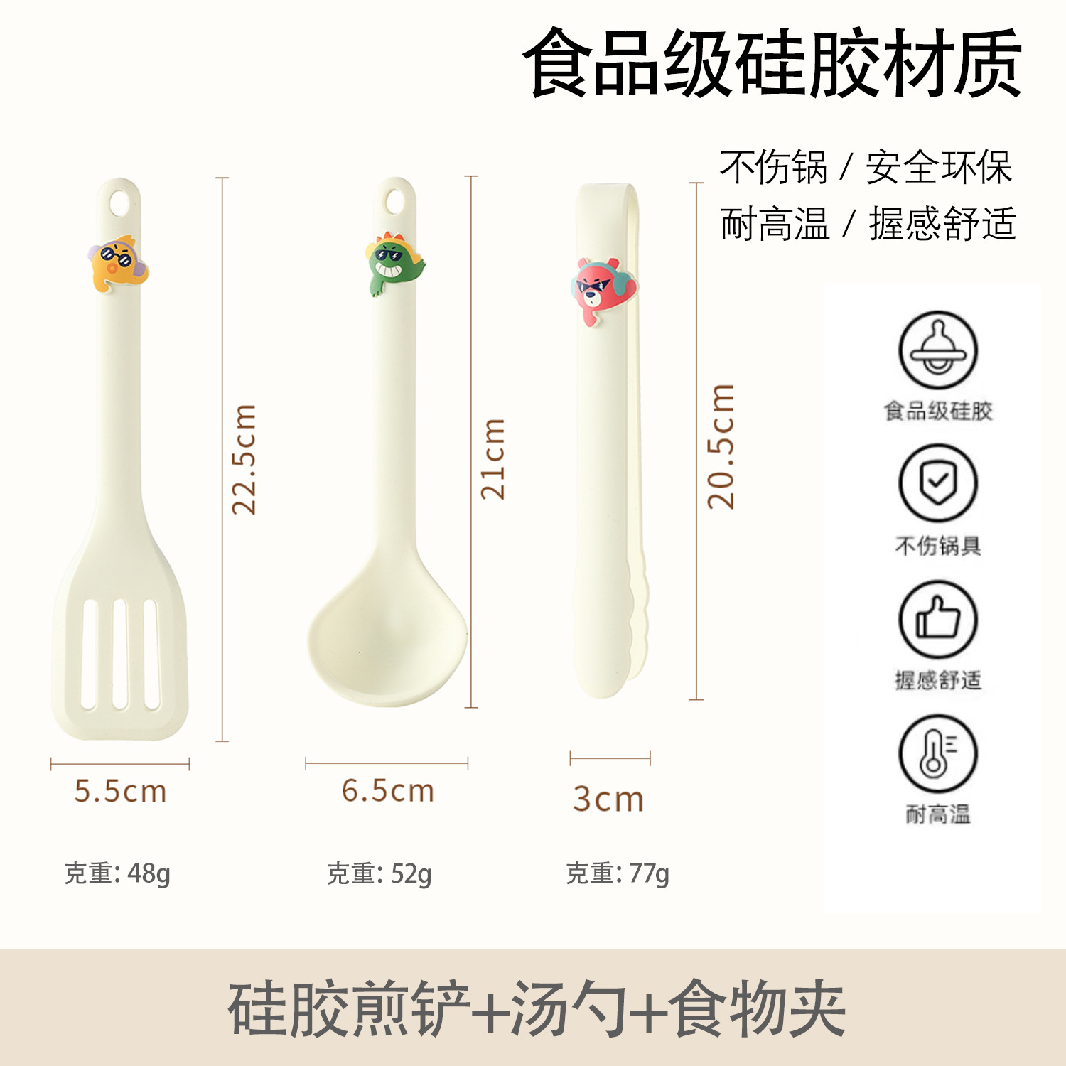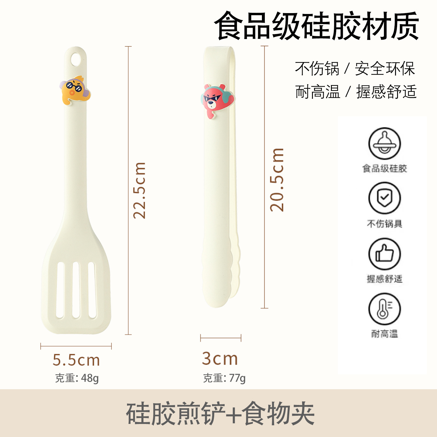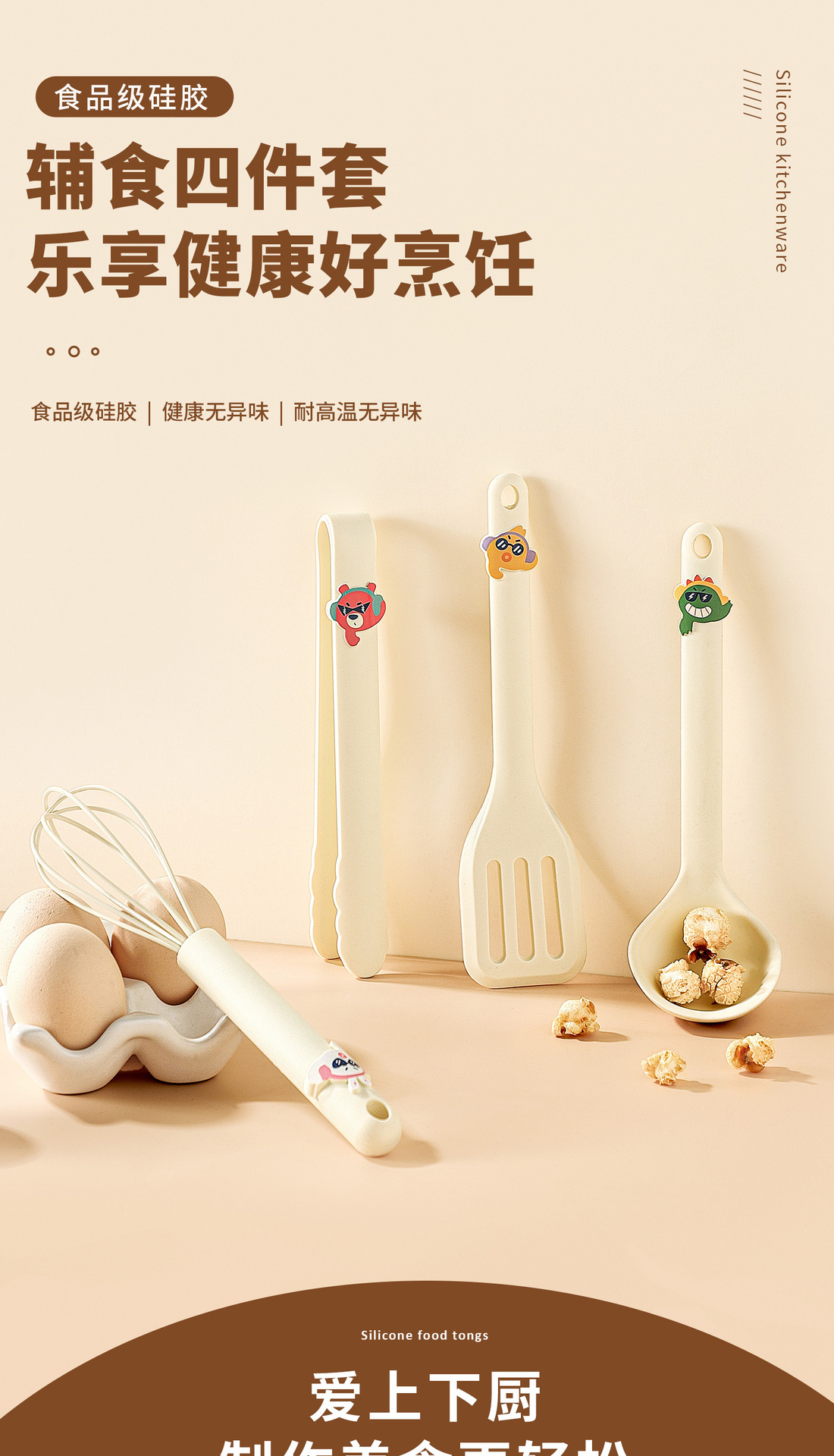 硅胶宝宝辅食汤勺小煎铲食物夹食品级打蛋器迷你烘焙工具烹饪套装