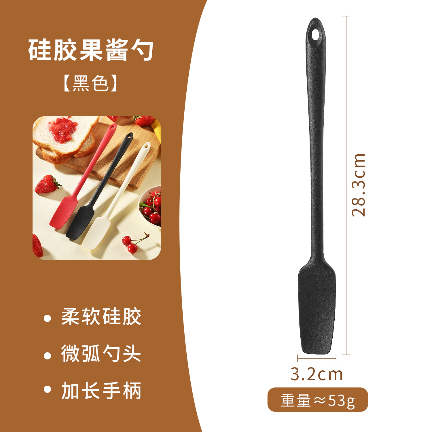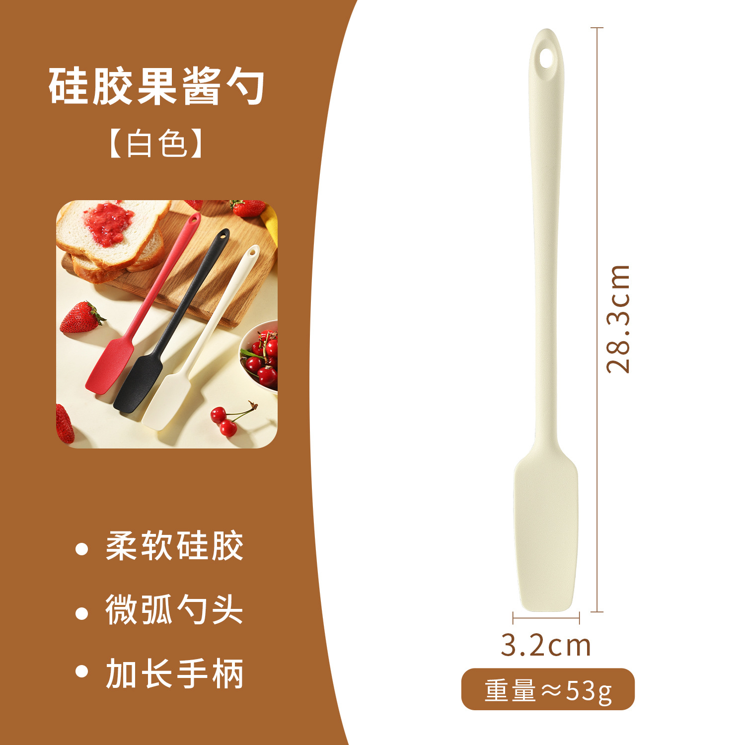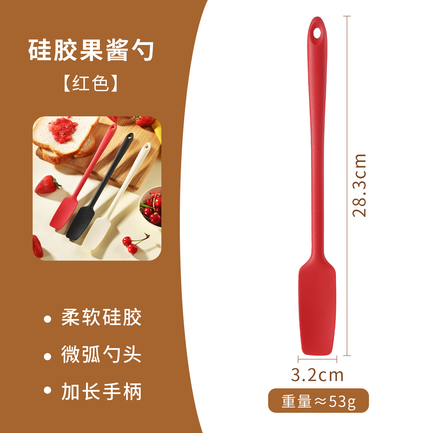 硅胶果酱勺刮刀长柄刮刀硅胶奶油刮刀蛋糕奶油抹刀耐高温烘焙工具