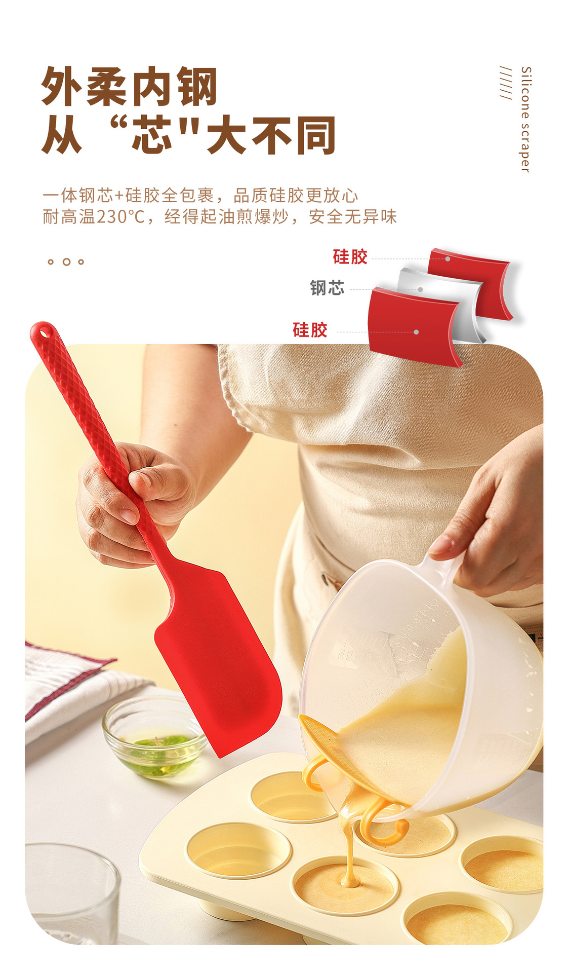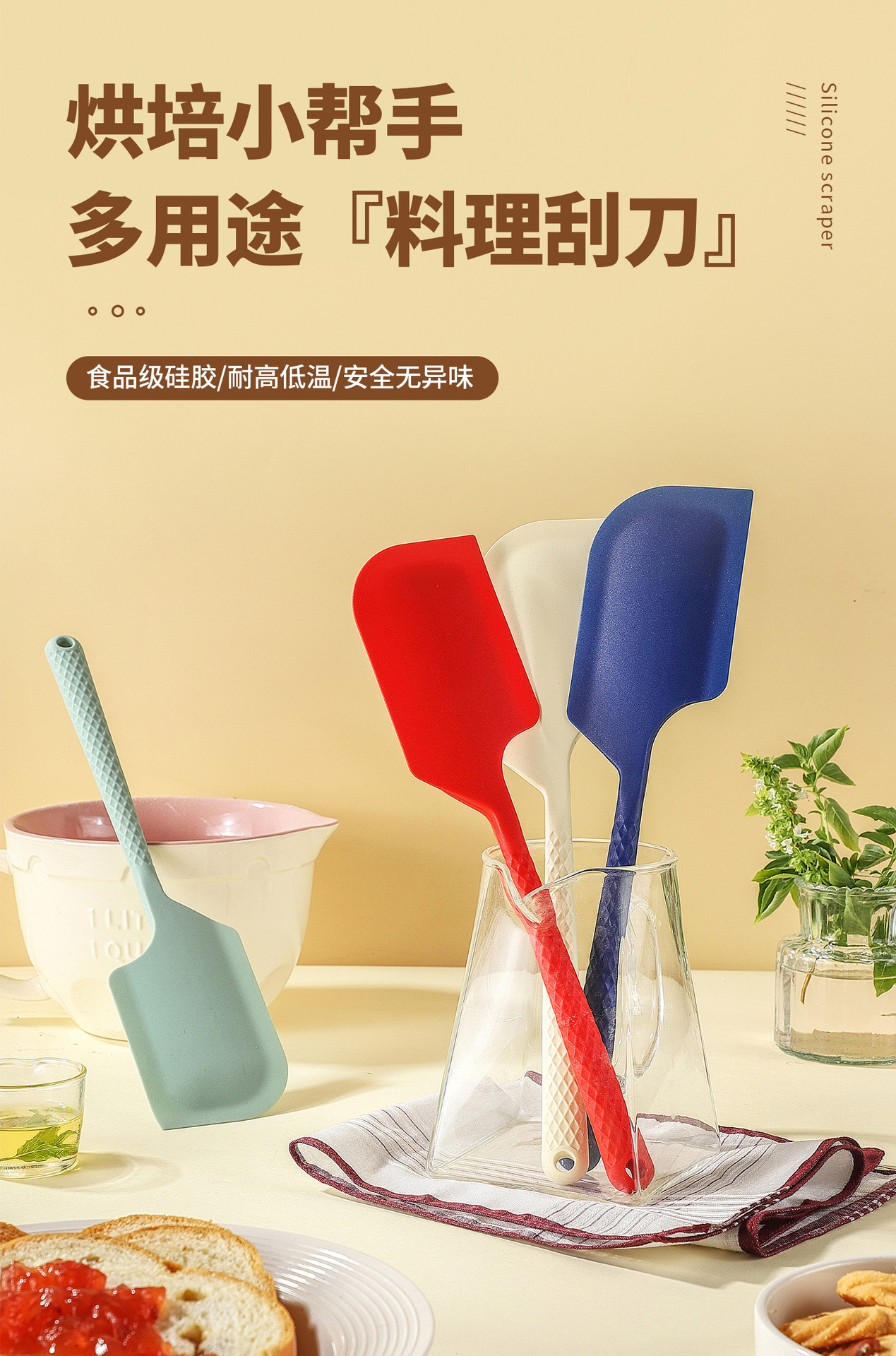 ins风硅胶一体刮刀大号奶油抹刀硅胶刮板牛油刮奶油刮烘焙工具