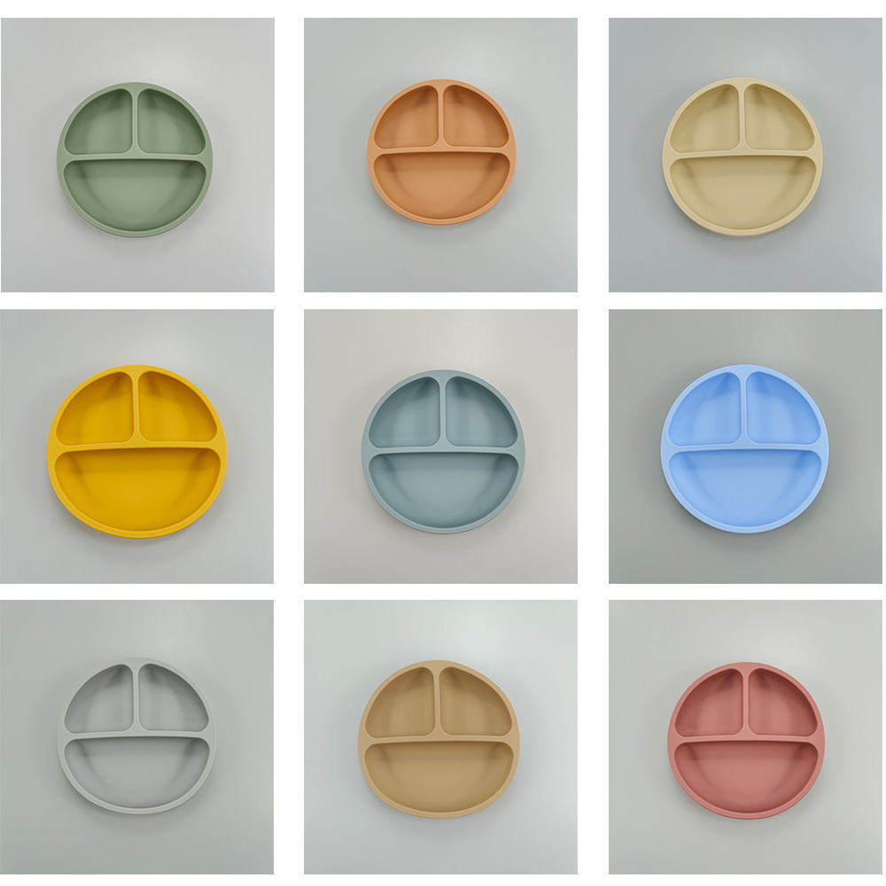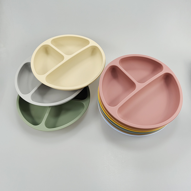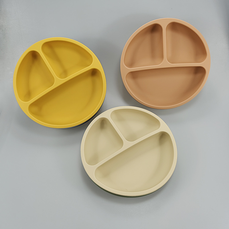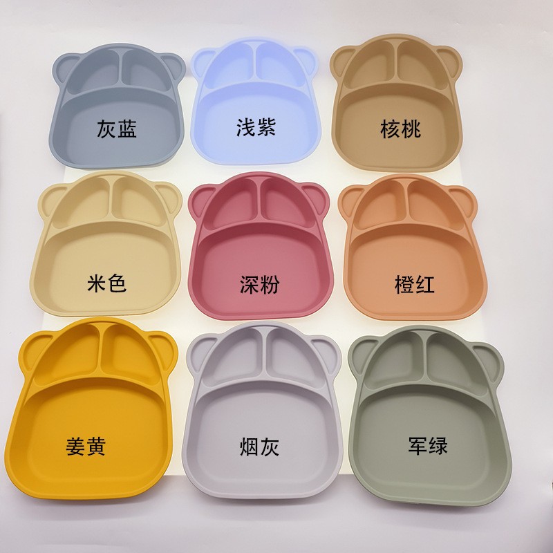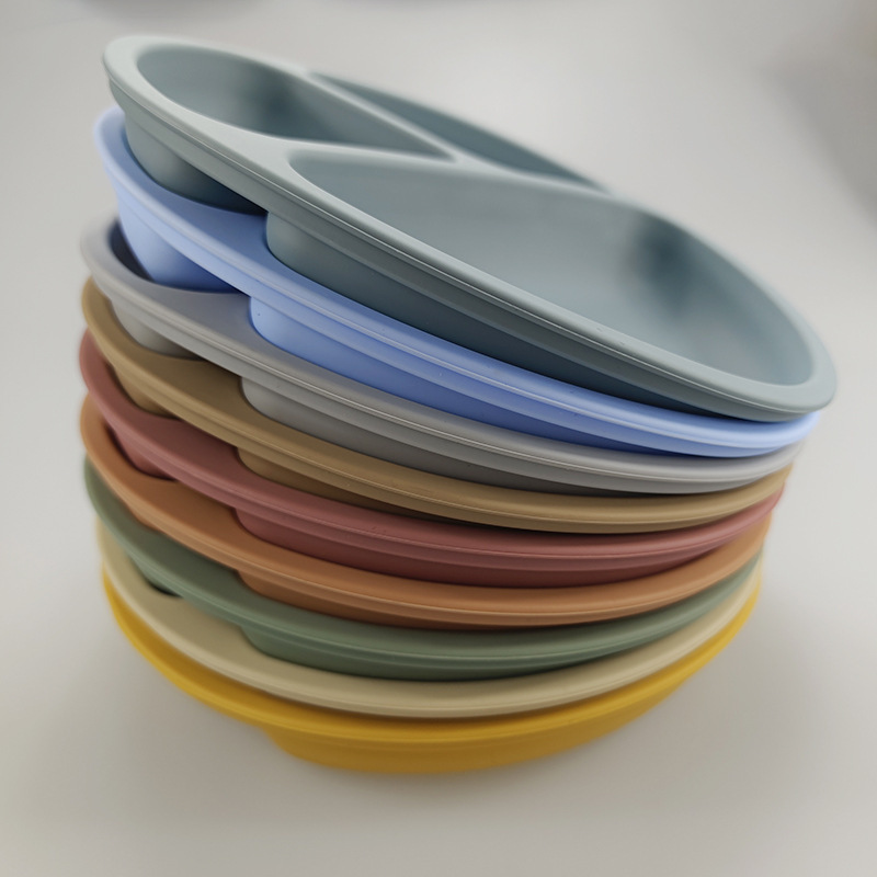 圆形硅胶儿童碗幼儿辅食硅胶吸盘 宝宝分格餐盘 婴儿加固硅胶餐盘
