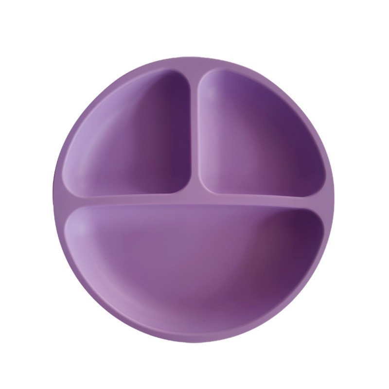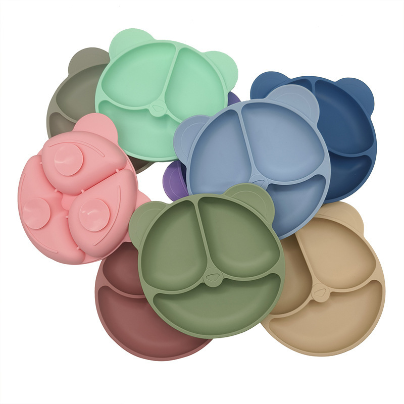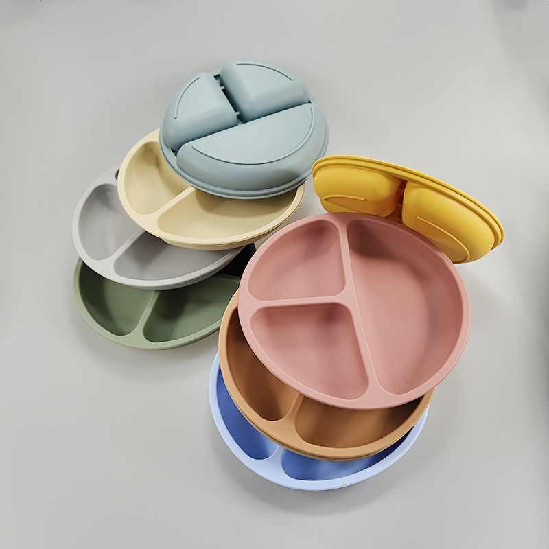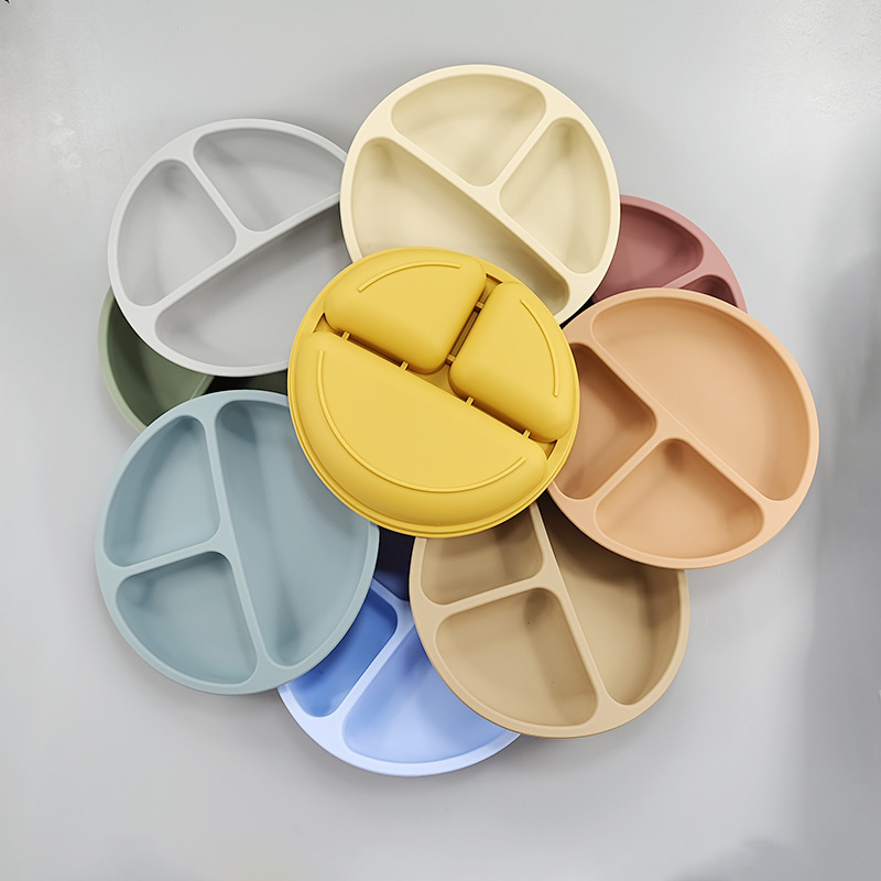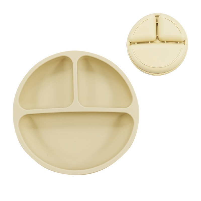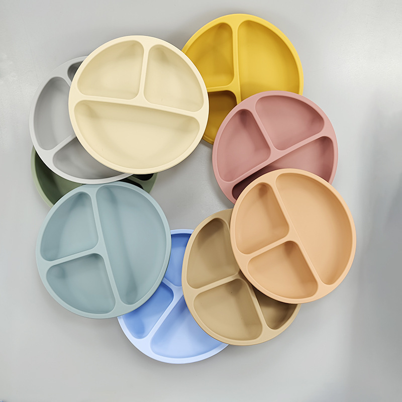 圆形硅胶儿童碗幼儿辅食硅胶吸盘 宝宝分格餐盘 婴儿加固硅胶餐盘