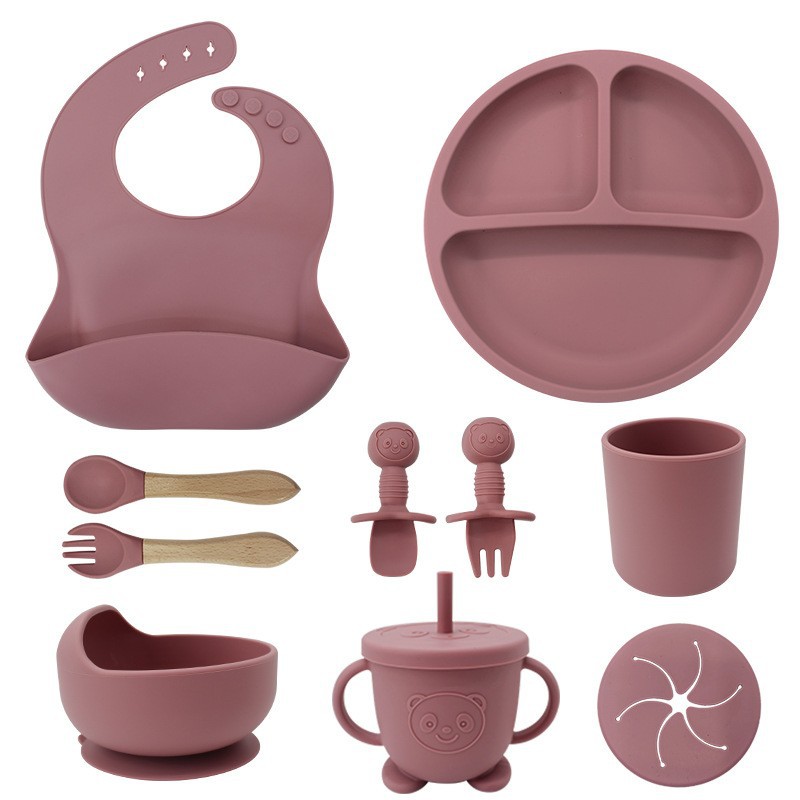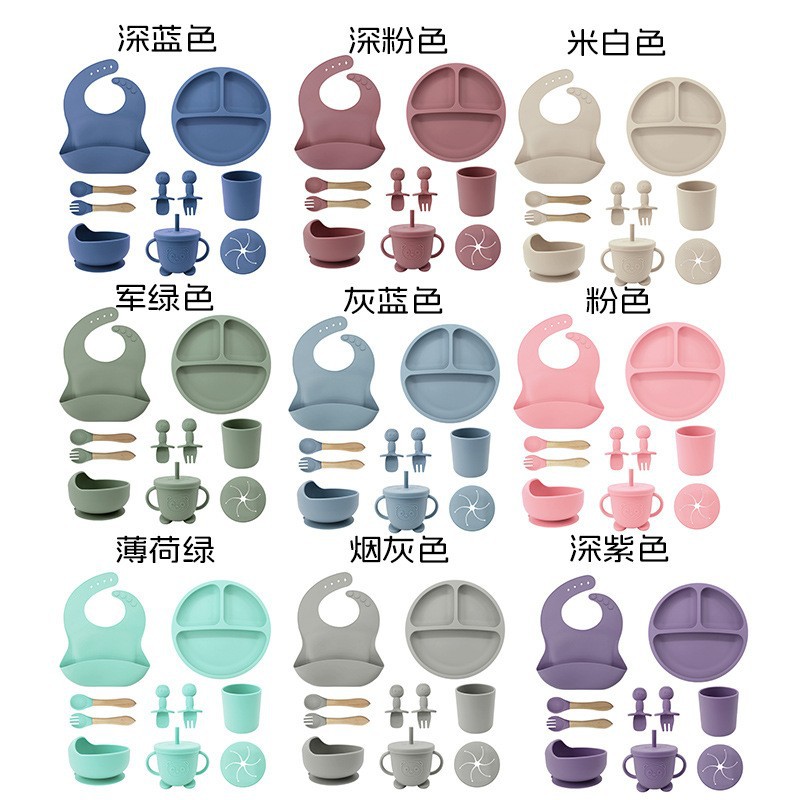 跨境批发儿童餐具食品级10件套硅胶餐盘宝宝叉勺围兜防摔母婴用品
