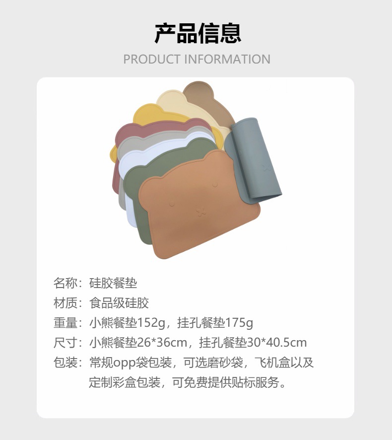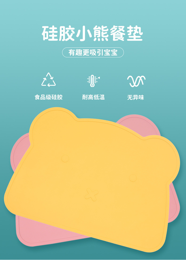 儿童硅胶餐垫大号加厚防滑可爱隔热垫多色卡通小熊宝宝吃饭餐桌垫