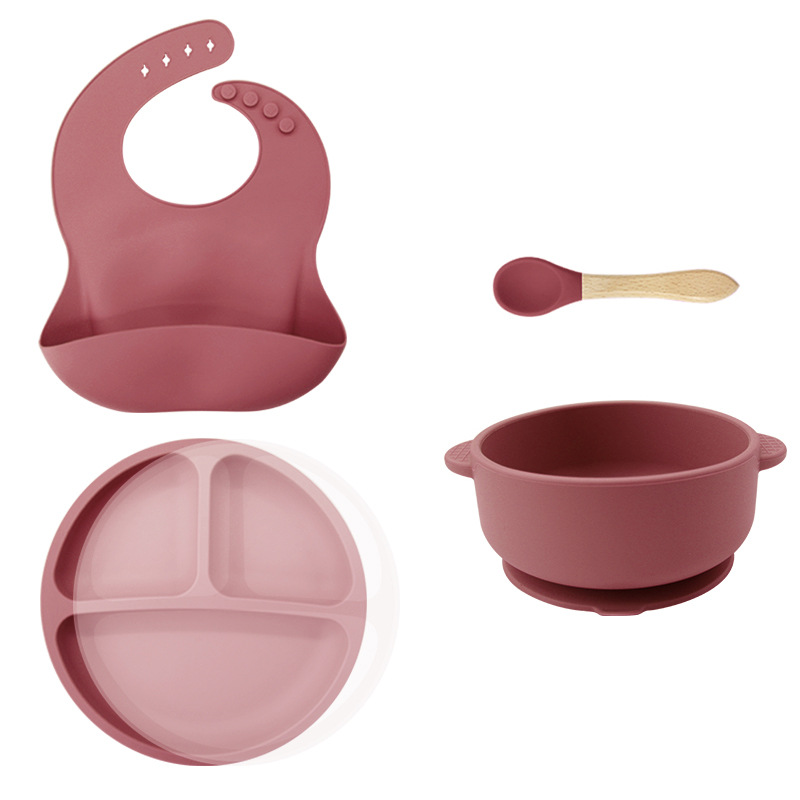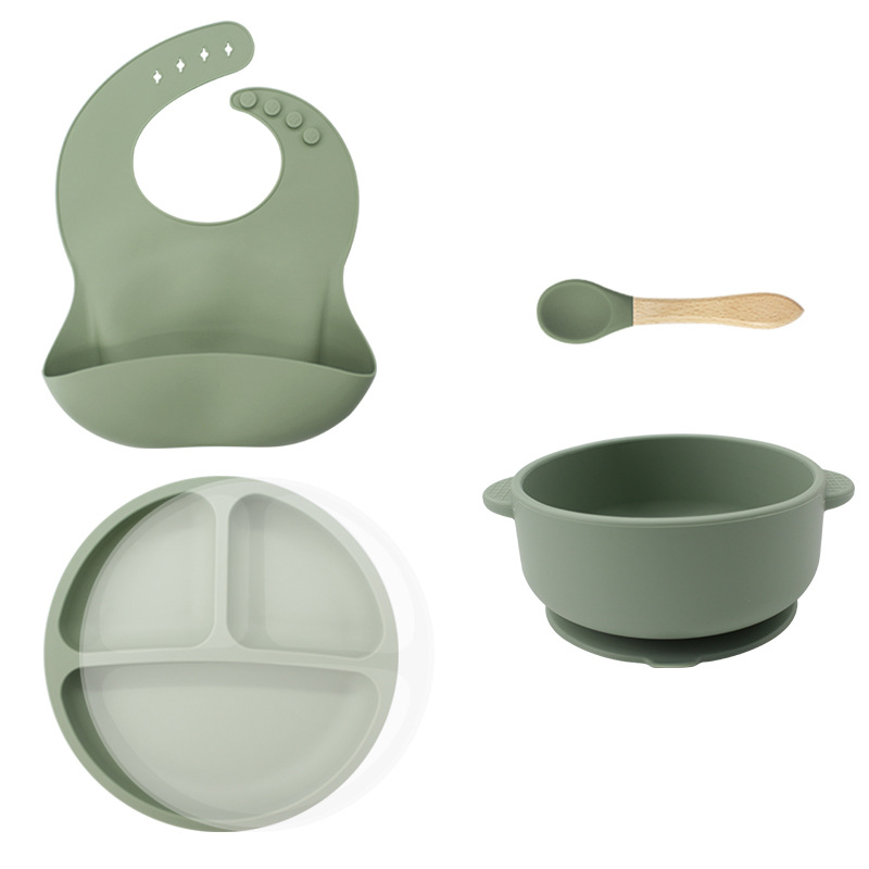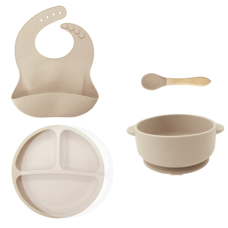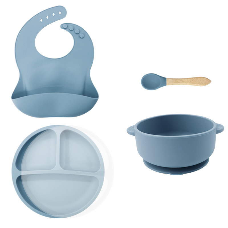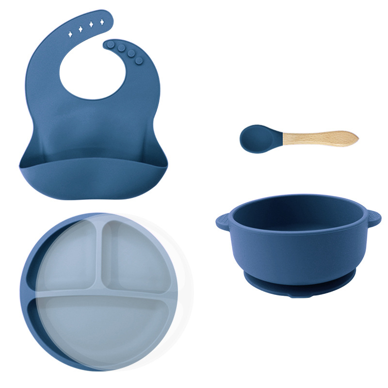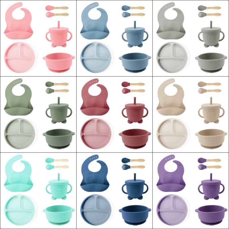 儿童硅胶餐具套装双耳碗一体式硅胶餐盘宝宝吃饭围兜母婴辅食吸盘