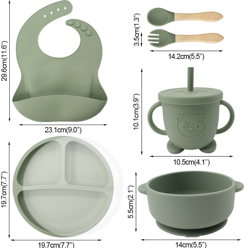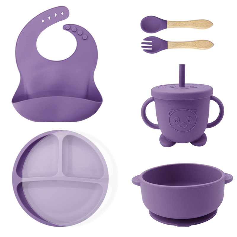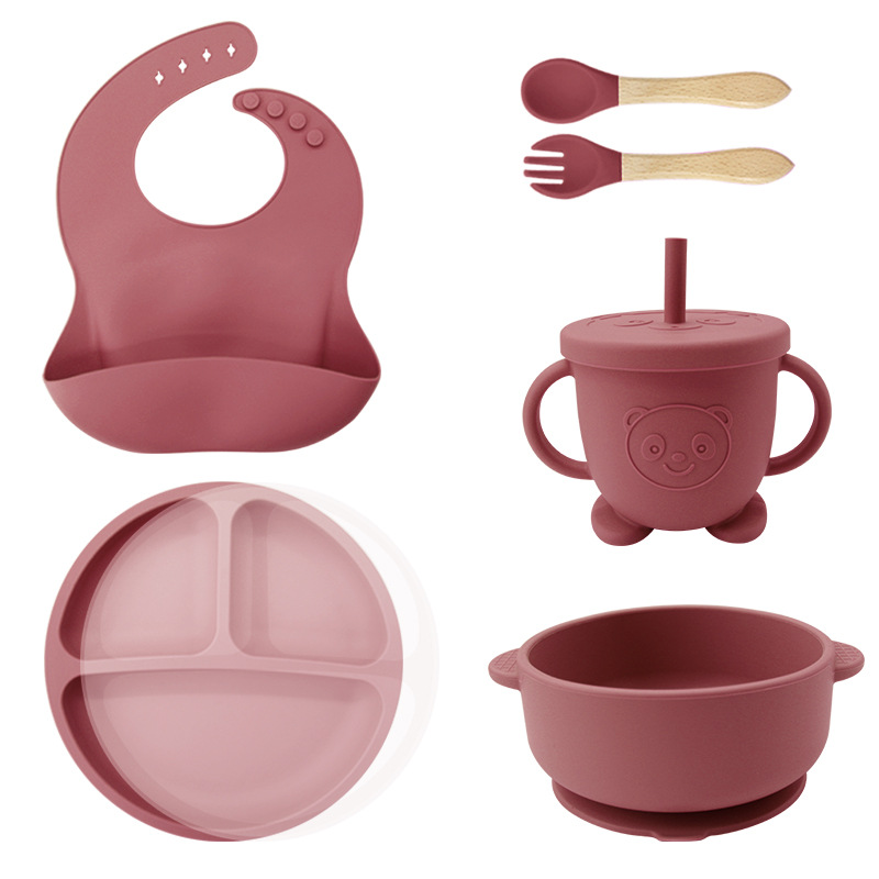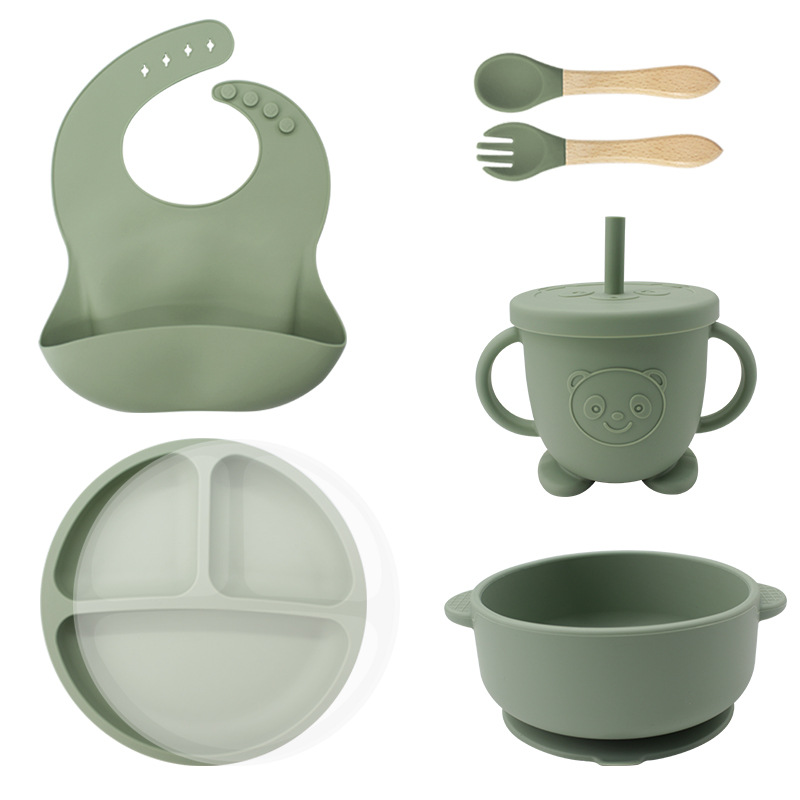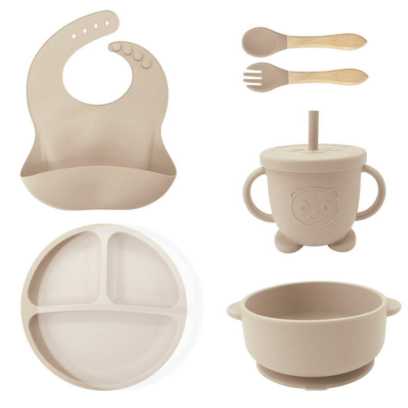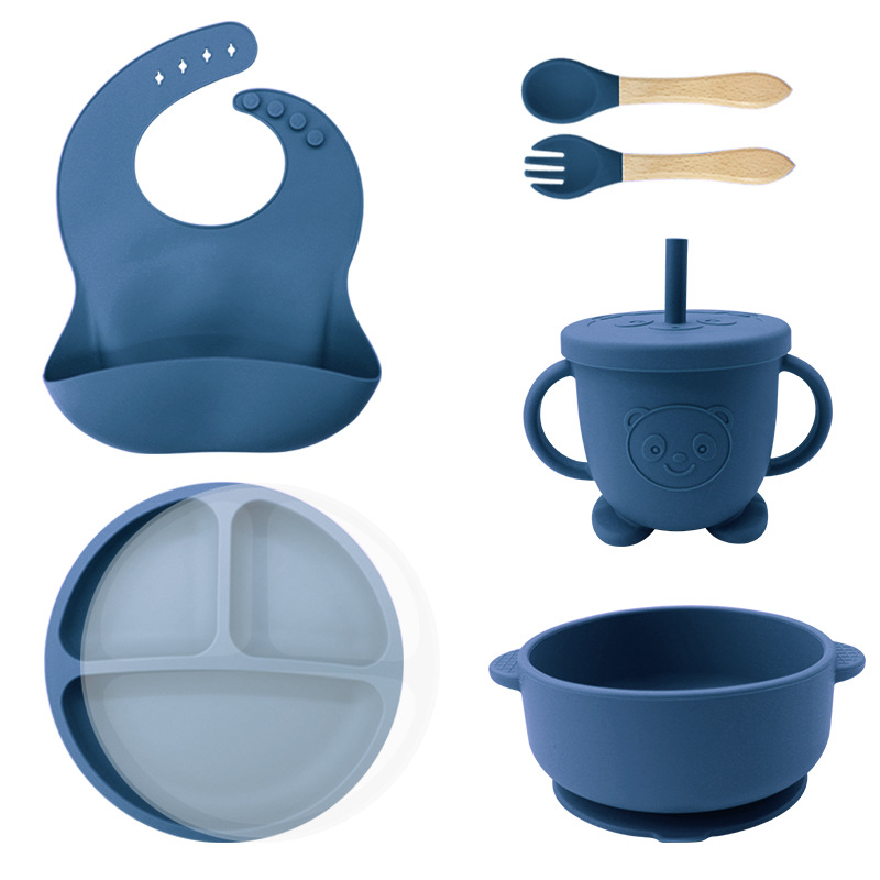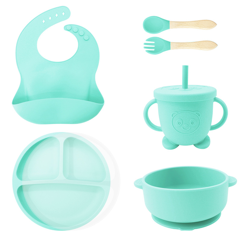 儿童硅胶餐具套装双耳碗一体式硅胶餐盘宝宝吃饭围兜母婴辅食吸盘