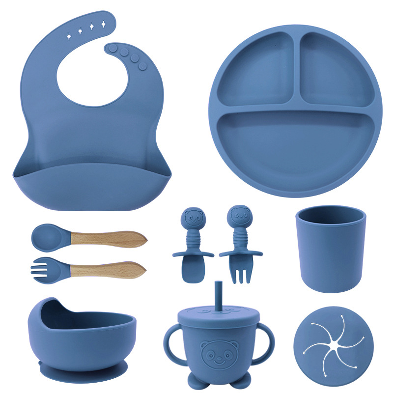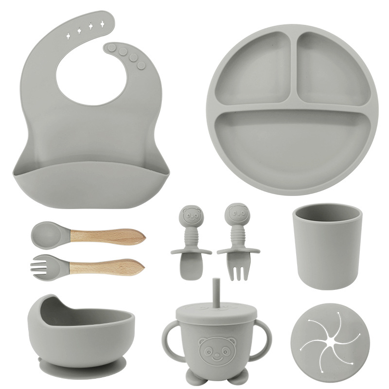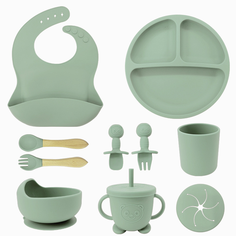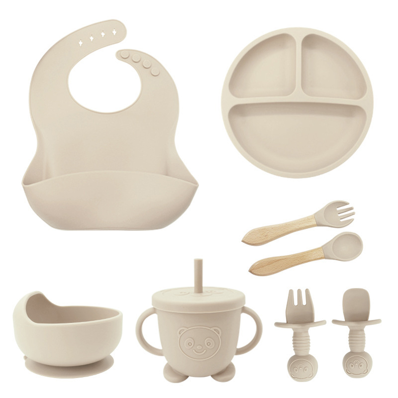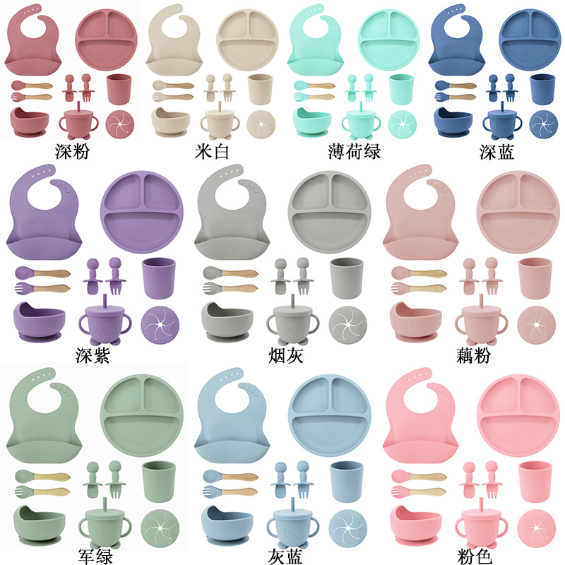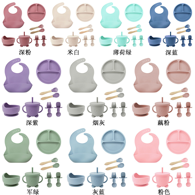 婴儿硅胶餐具辅食围兜餐盘碗水杯训练吃饭一体式硅胶餐具母婴用品