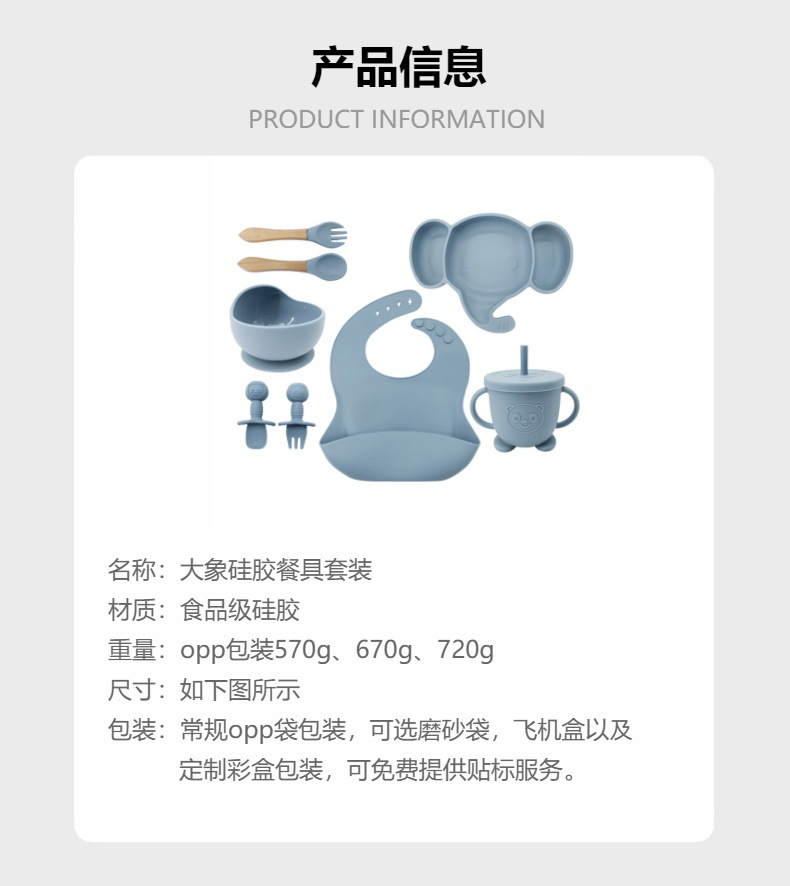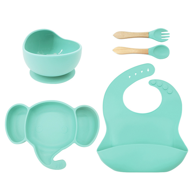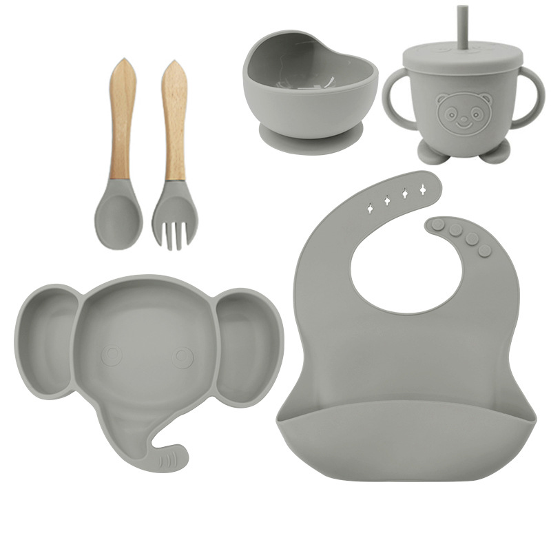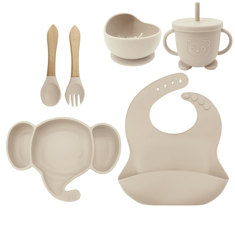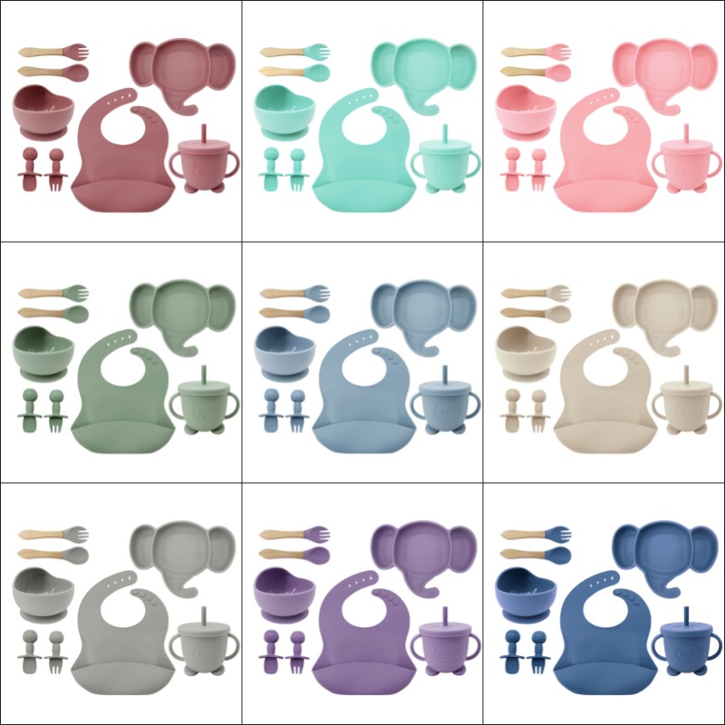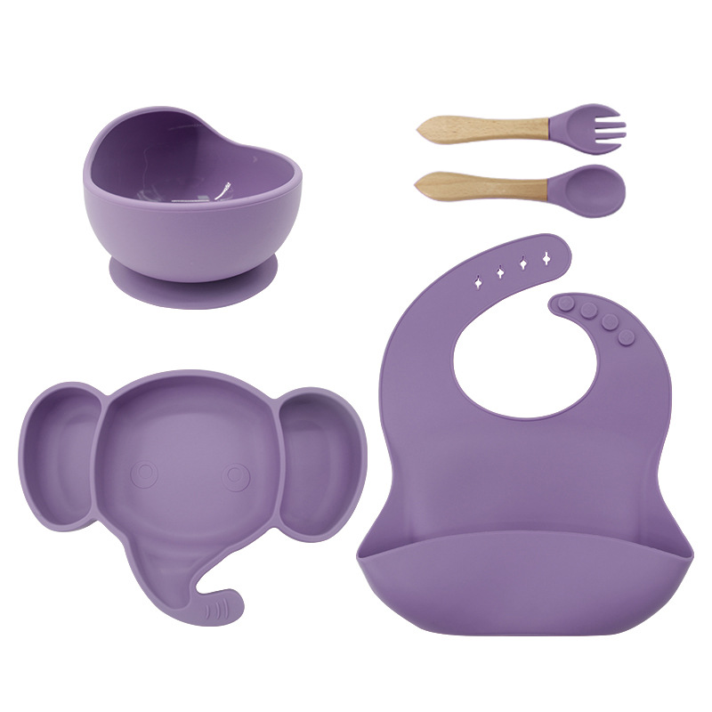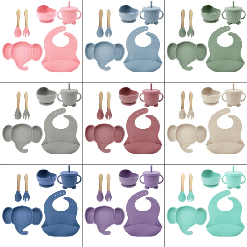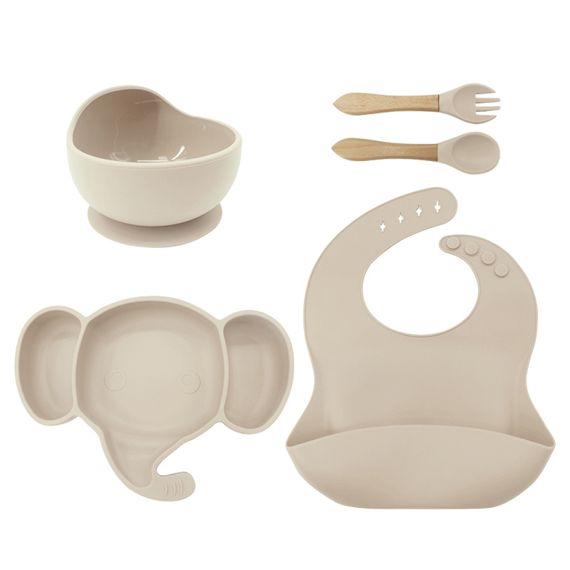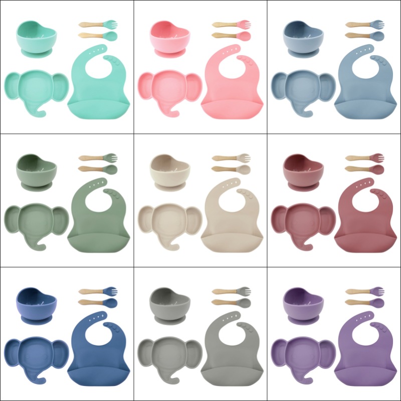 婴儿硅胶餐具大象餐盘辅食碗防摔学习吃饭工具套装跨境工厂现货