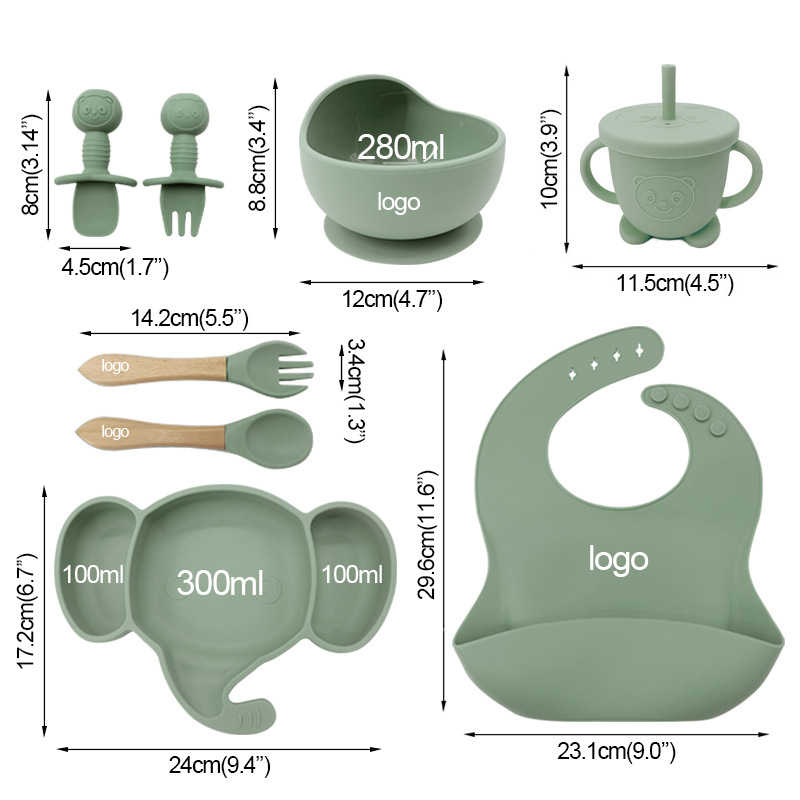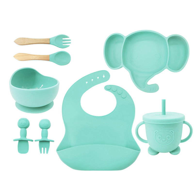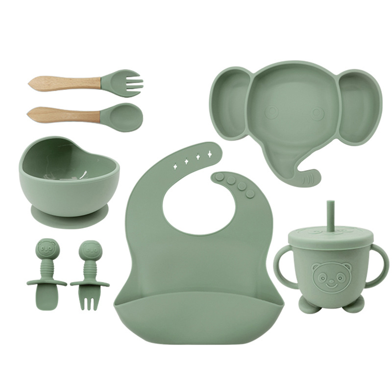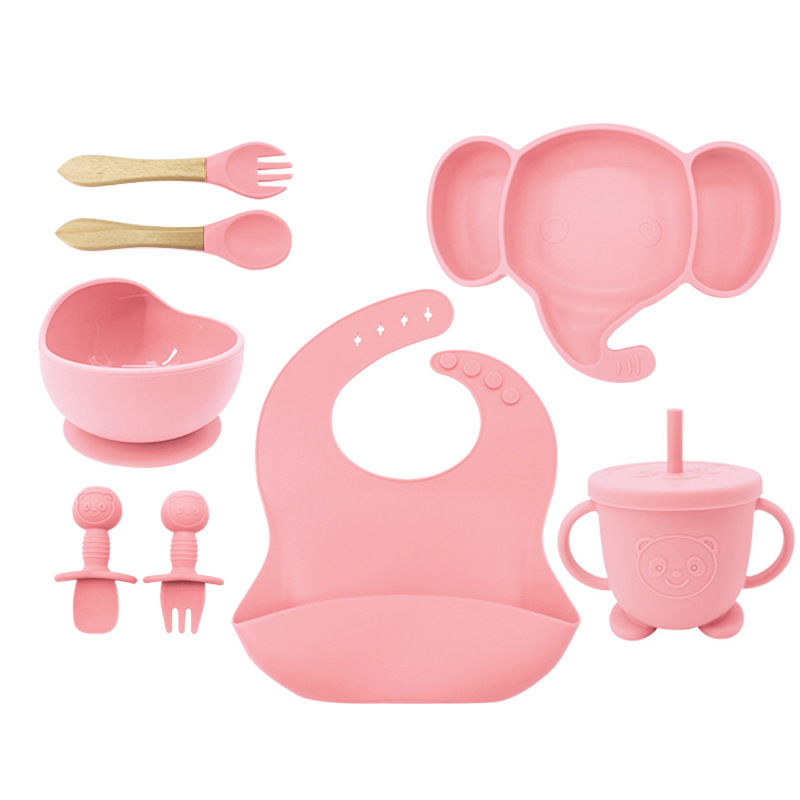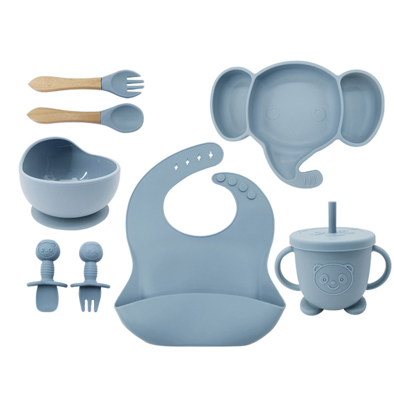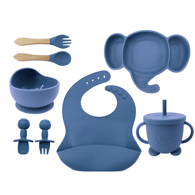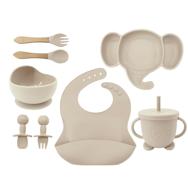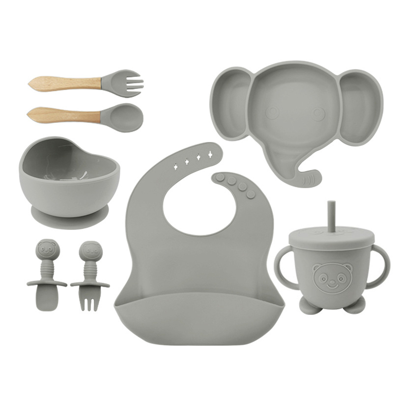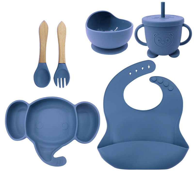 婴儿硅胶餐具大象餐盘辅食碗防摔学习吃饭工具套装跨境工厂现货