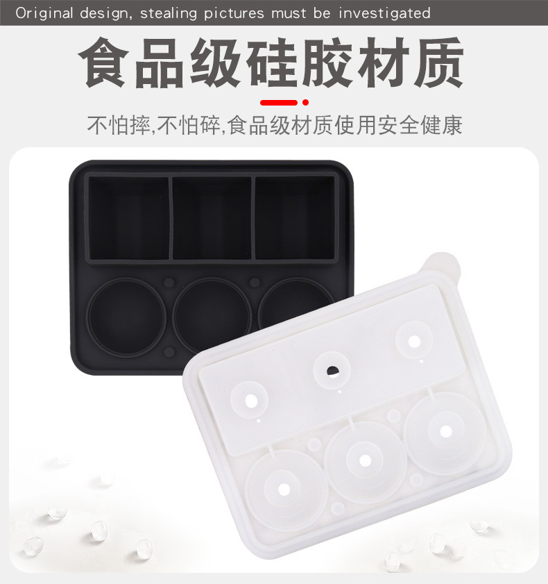 硅胶冰模圆形硅胶骷髅冰块冰格模具制冰亚马逊6孔冰球史丹利冰格