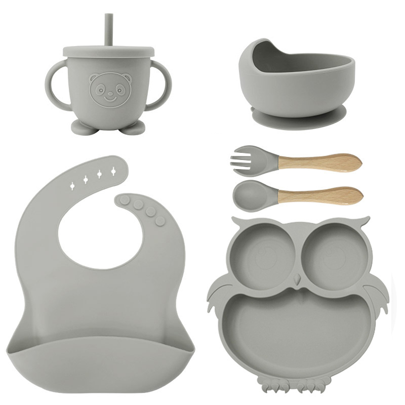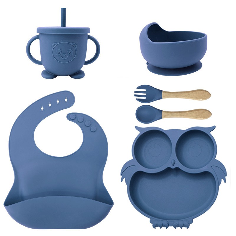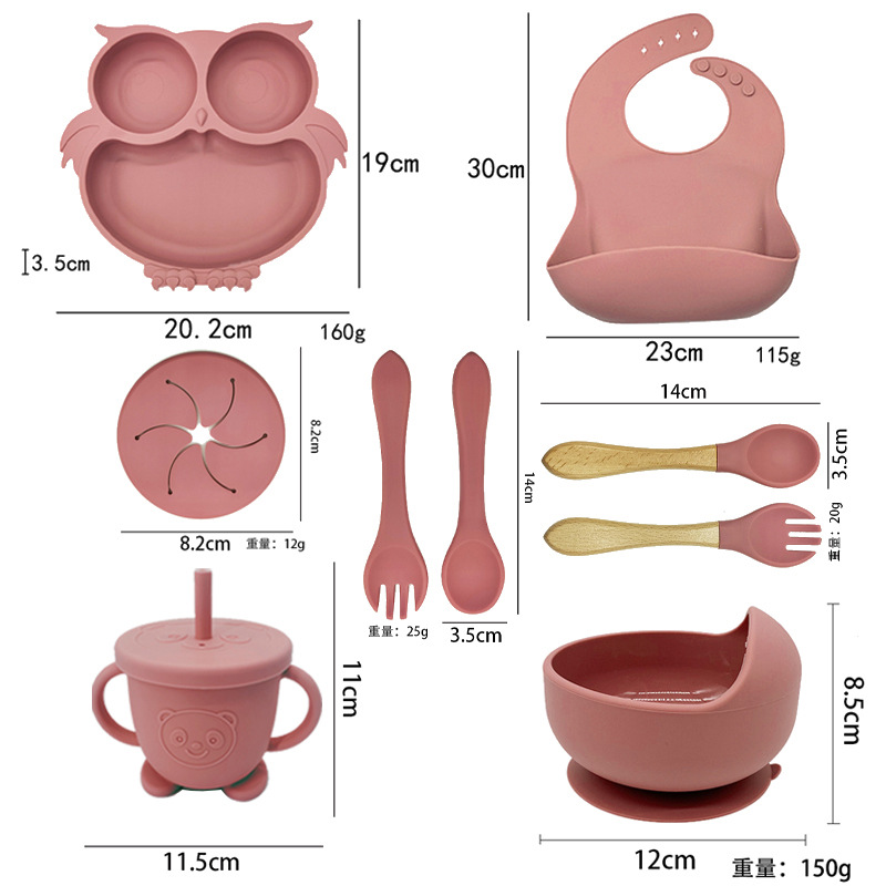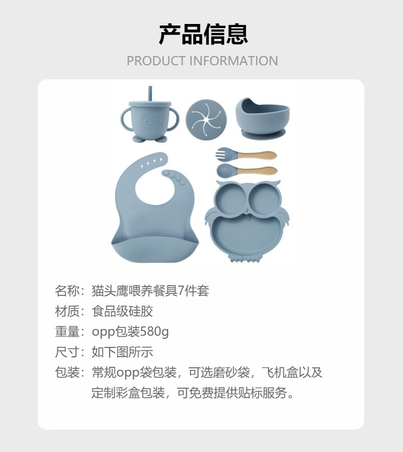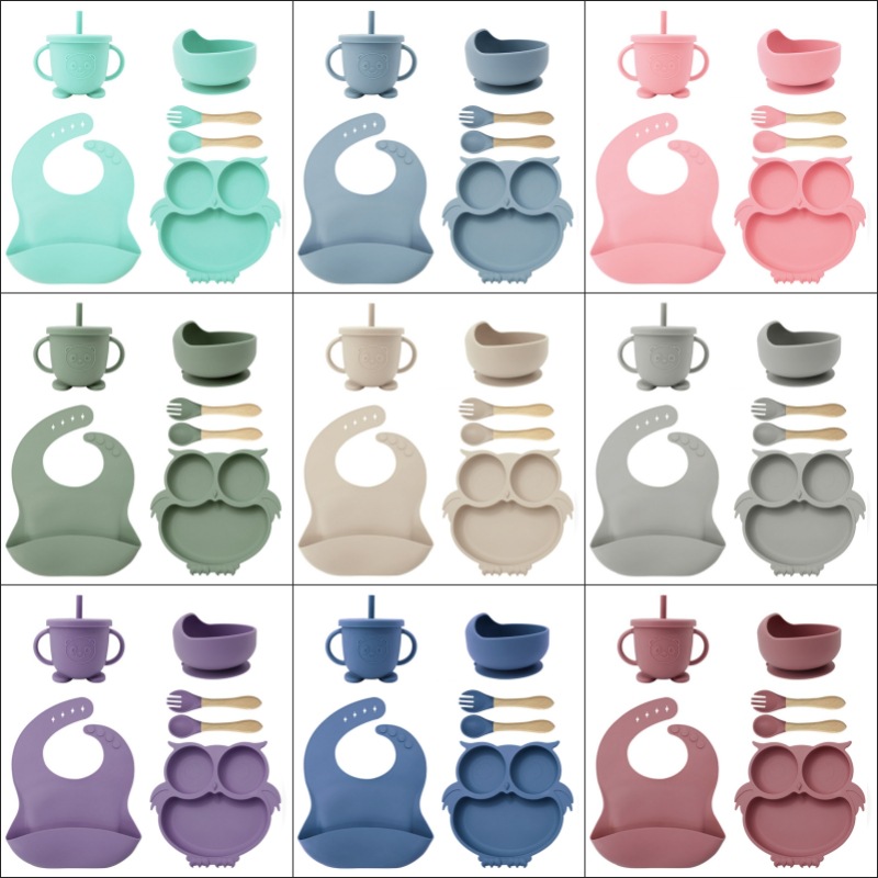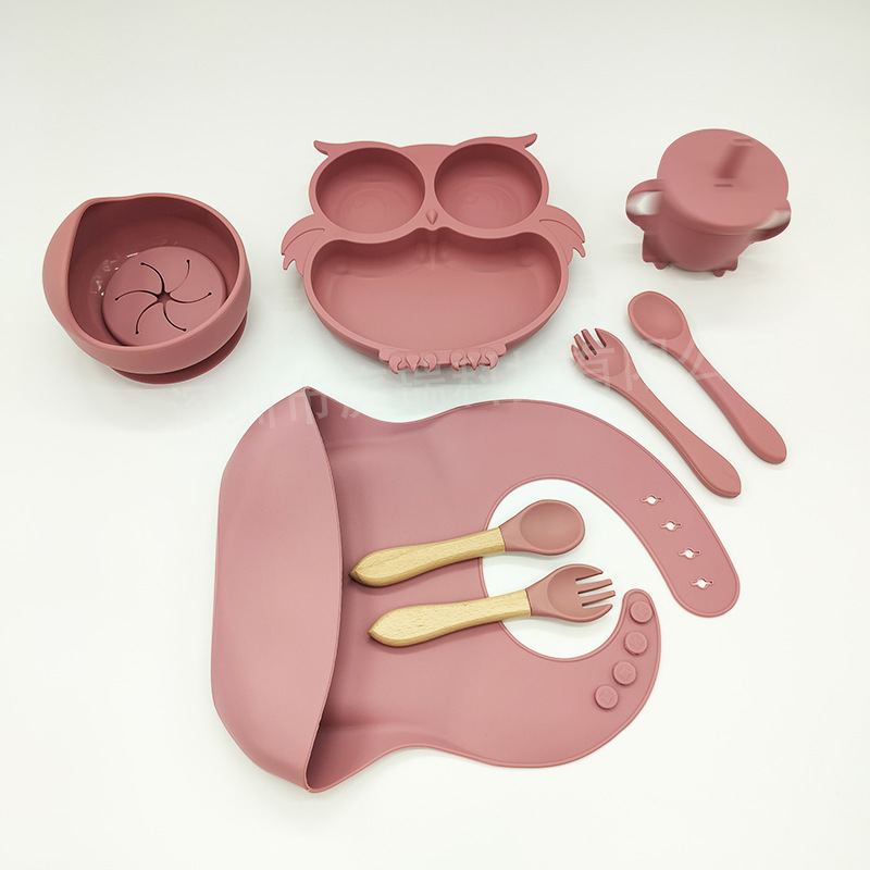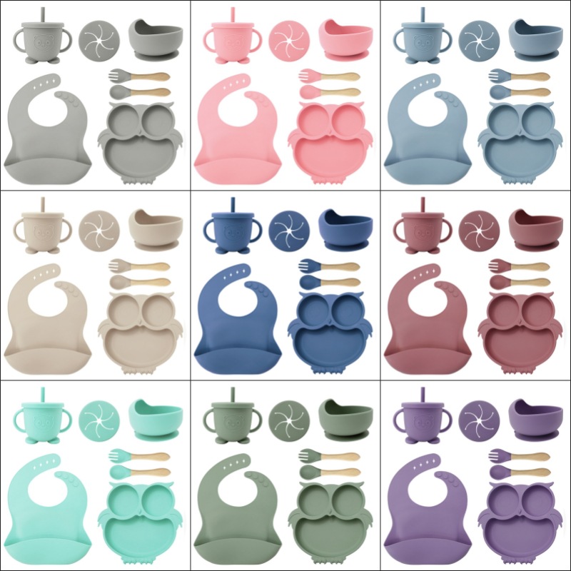 儿童硅胶餐具辅食碗套装猫头鹰餐盘带吸盘全套学吃饭防摔工厂现货