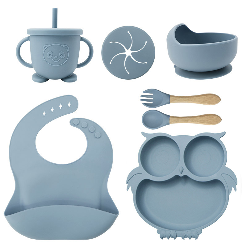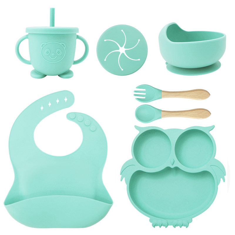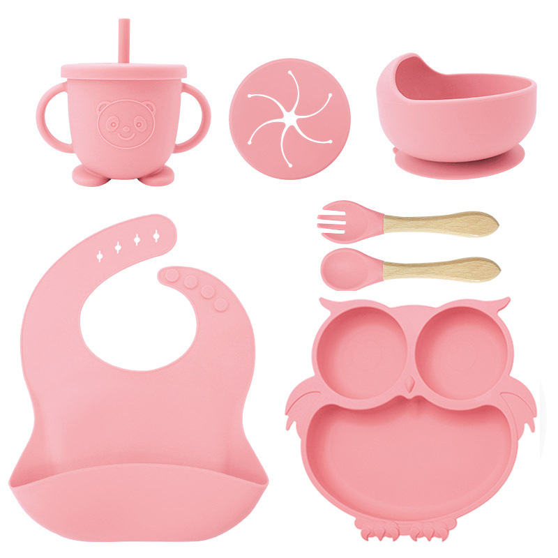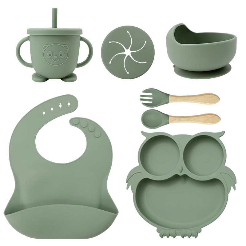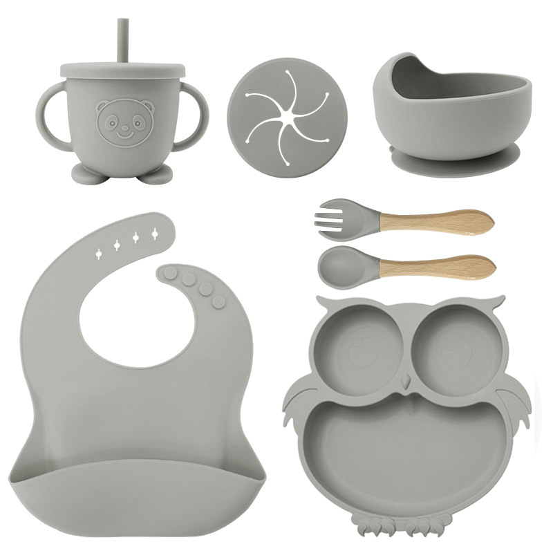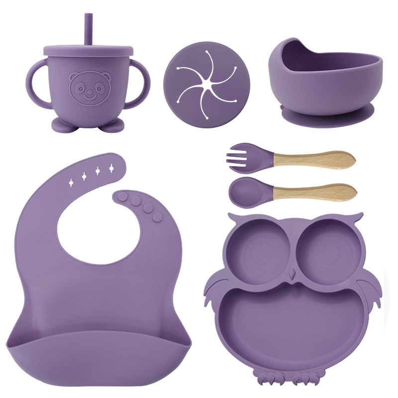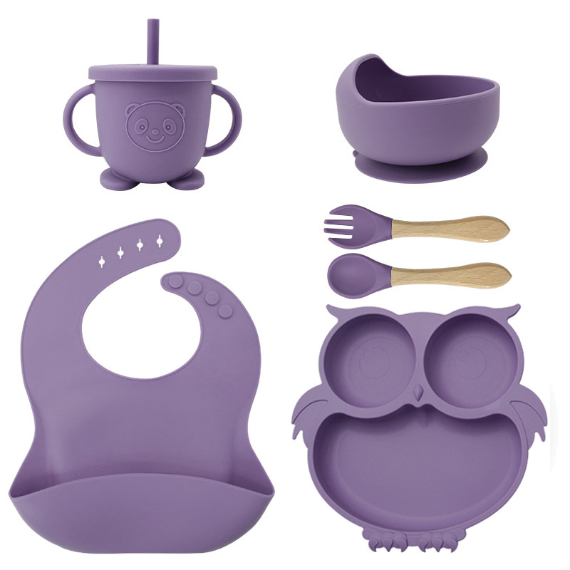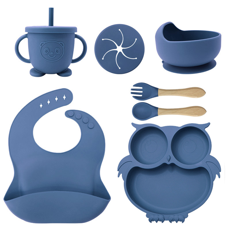 儿童硅胶餐具辅食碗套装猫头鹰餐盘带吸盘全套学吃饭防摔工厂现货