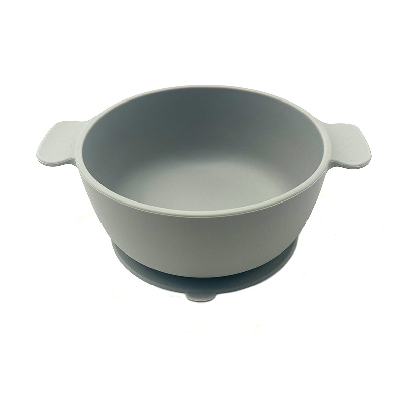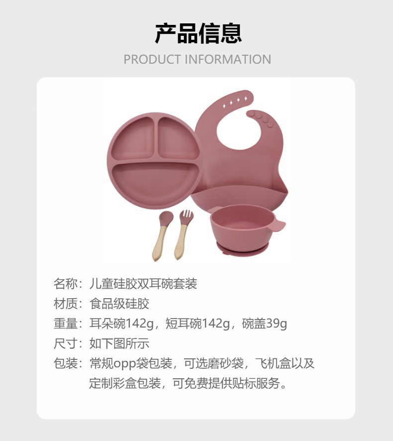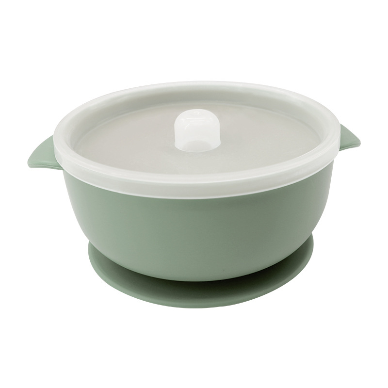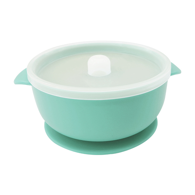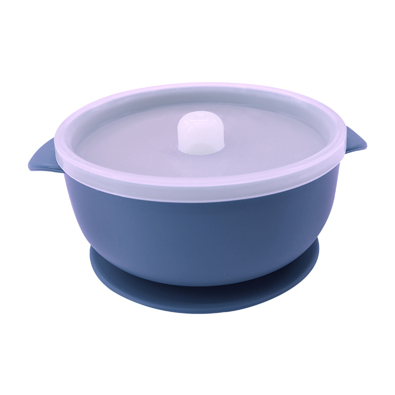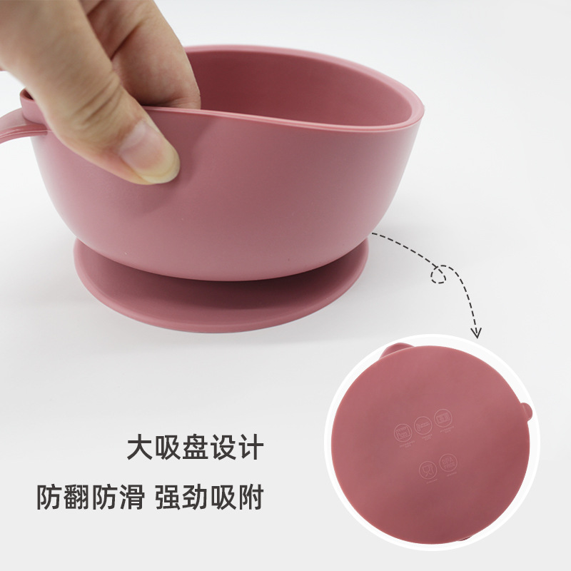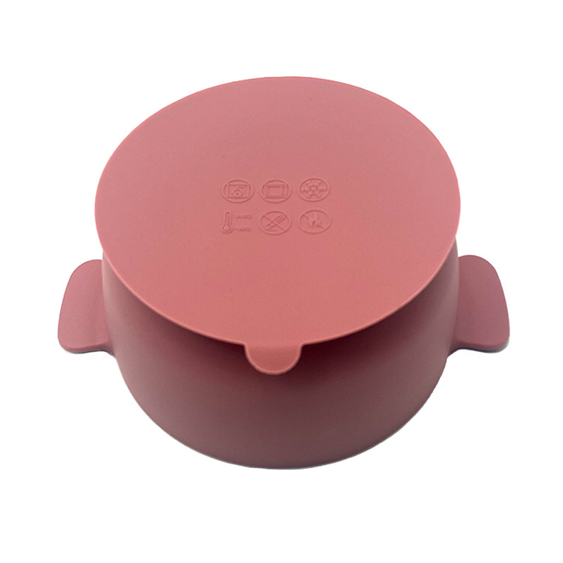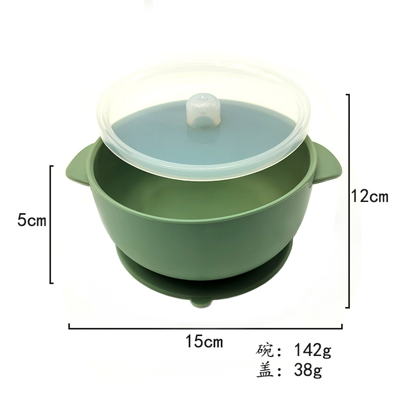 儿童硅胶双耳碗配防尘盖餐具学吃饭一体式喂养套装厂家直供跨境