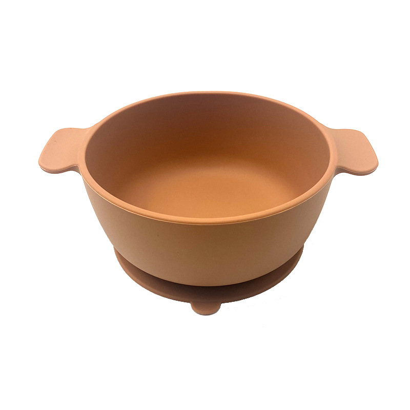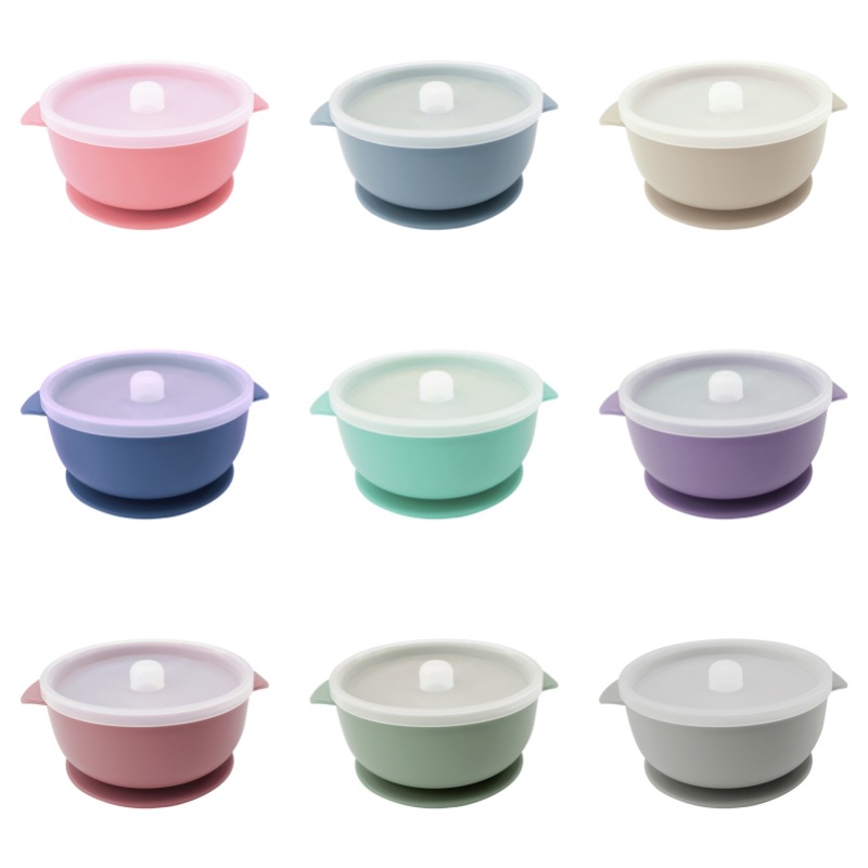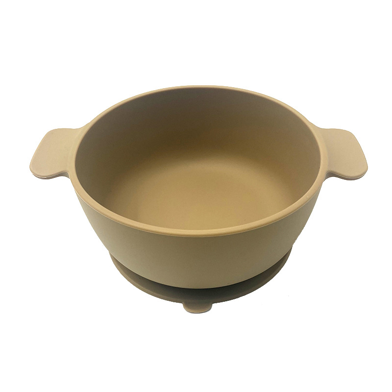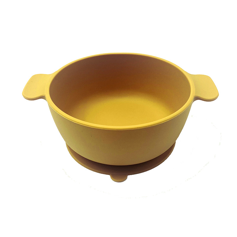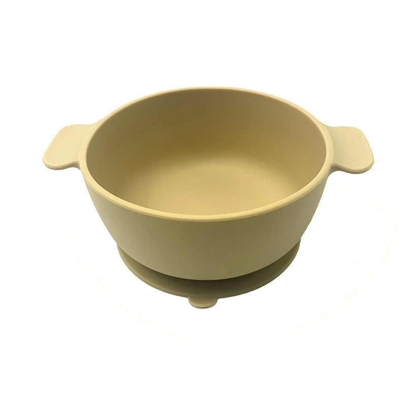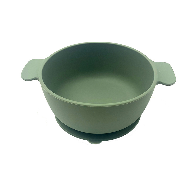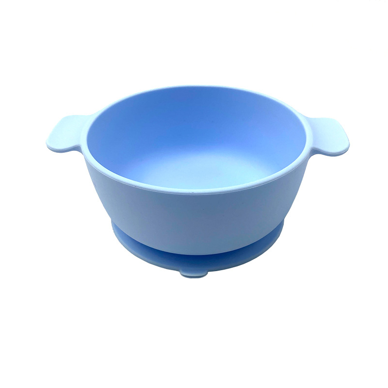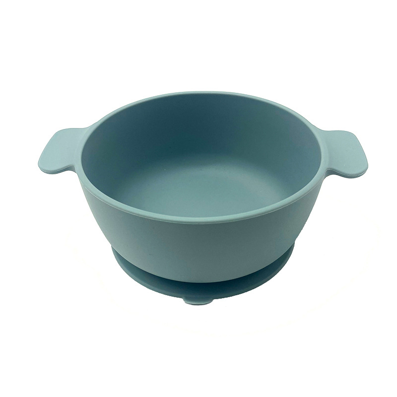 儿童硅胶双耳碗配防尘盖餐具学吃饭一体式喂养套装厂家直供跨境