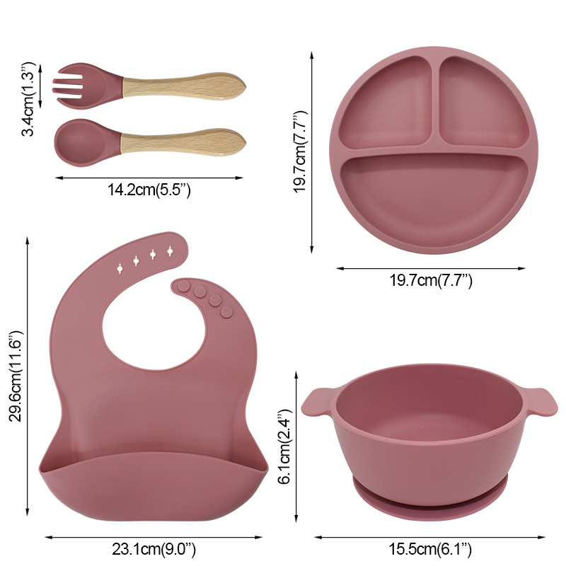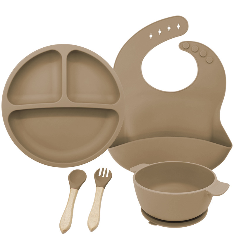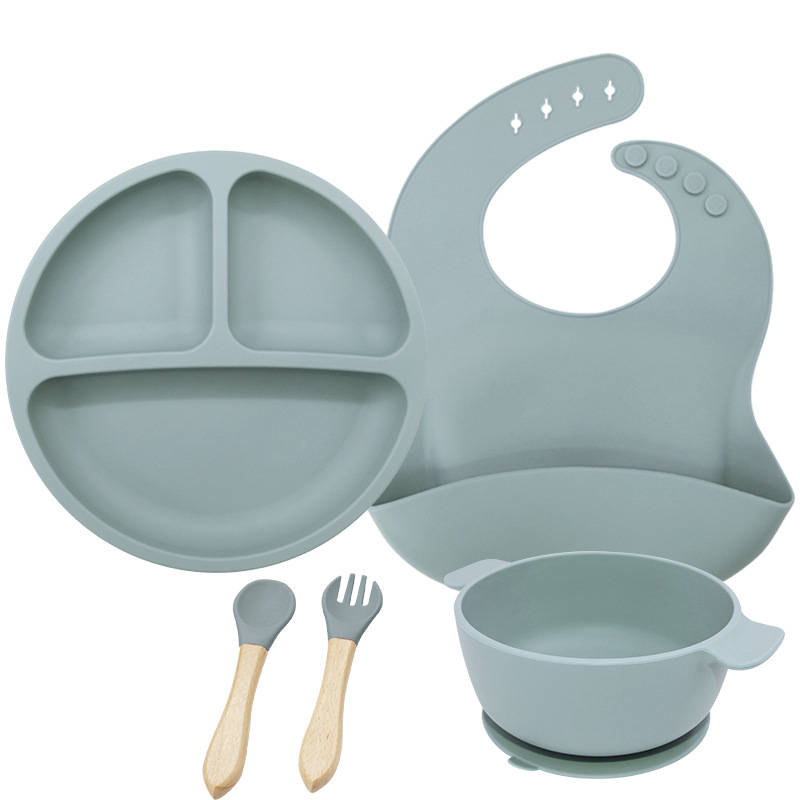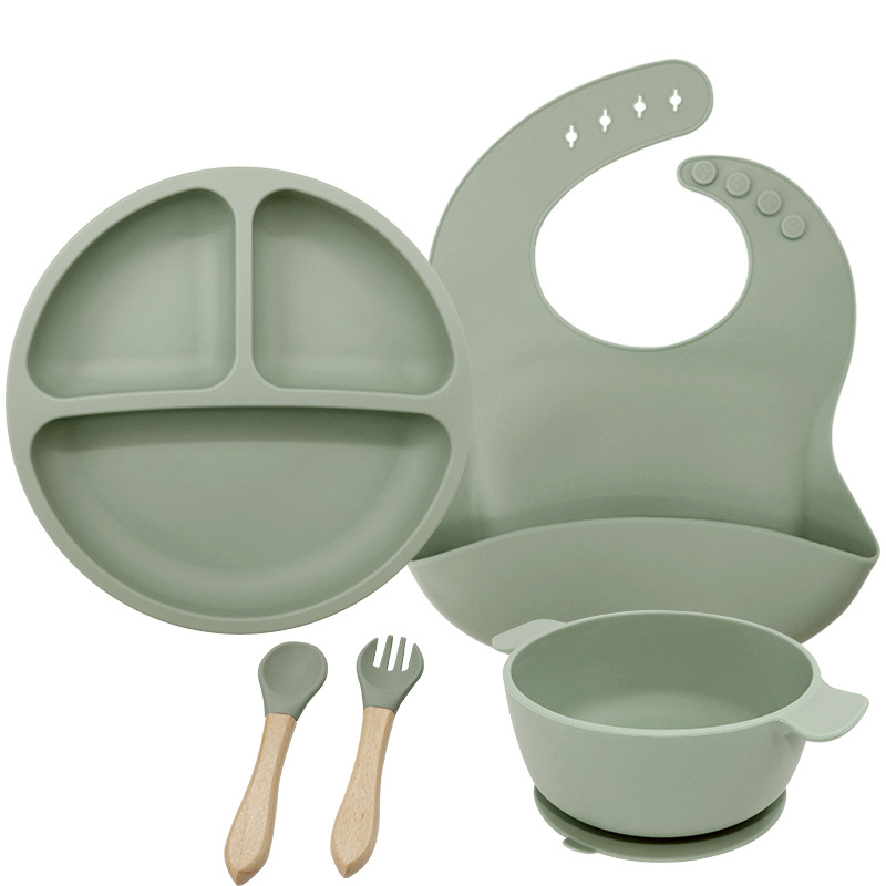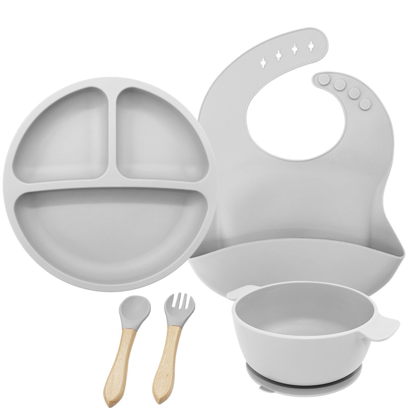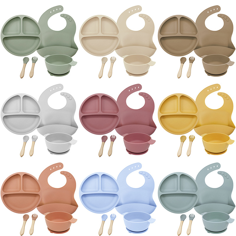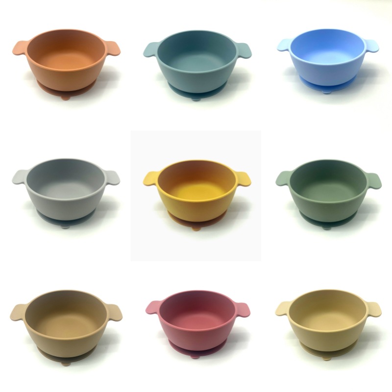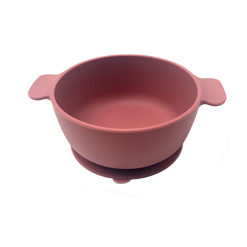 儿童硅胶双耳碗配防尘盖餐具学吃饭一体式喂养套装厂家直供跨境