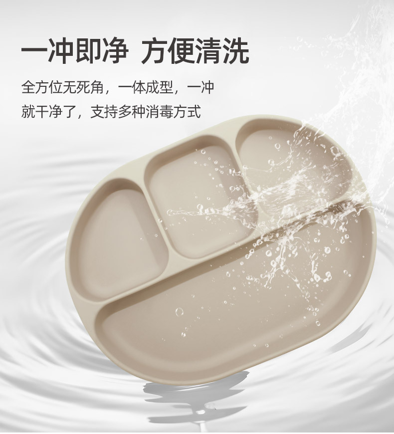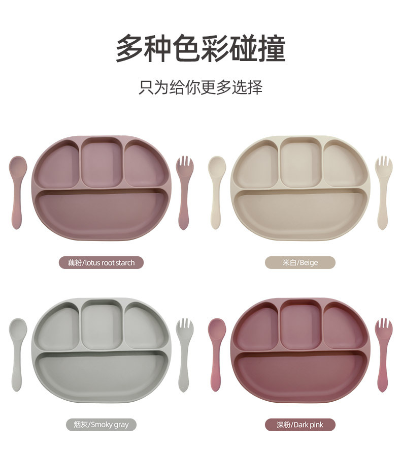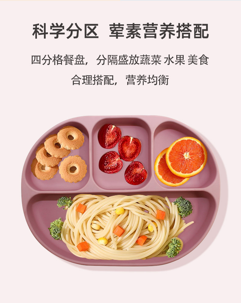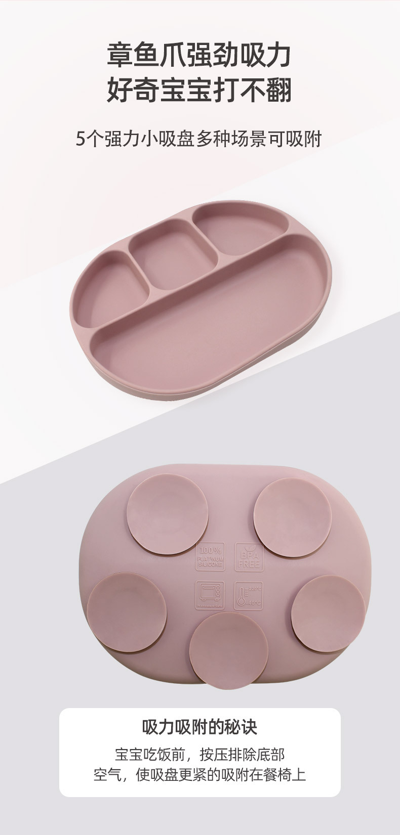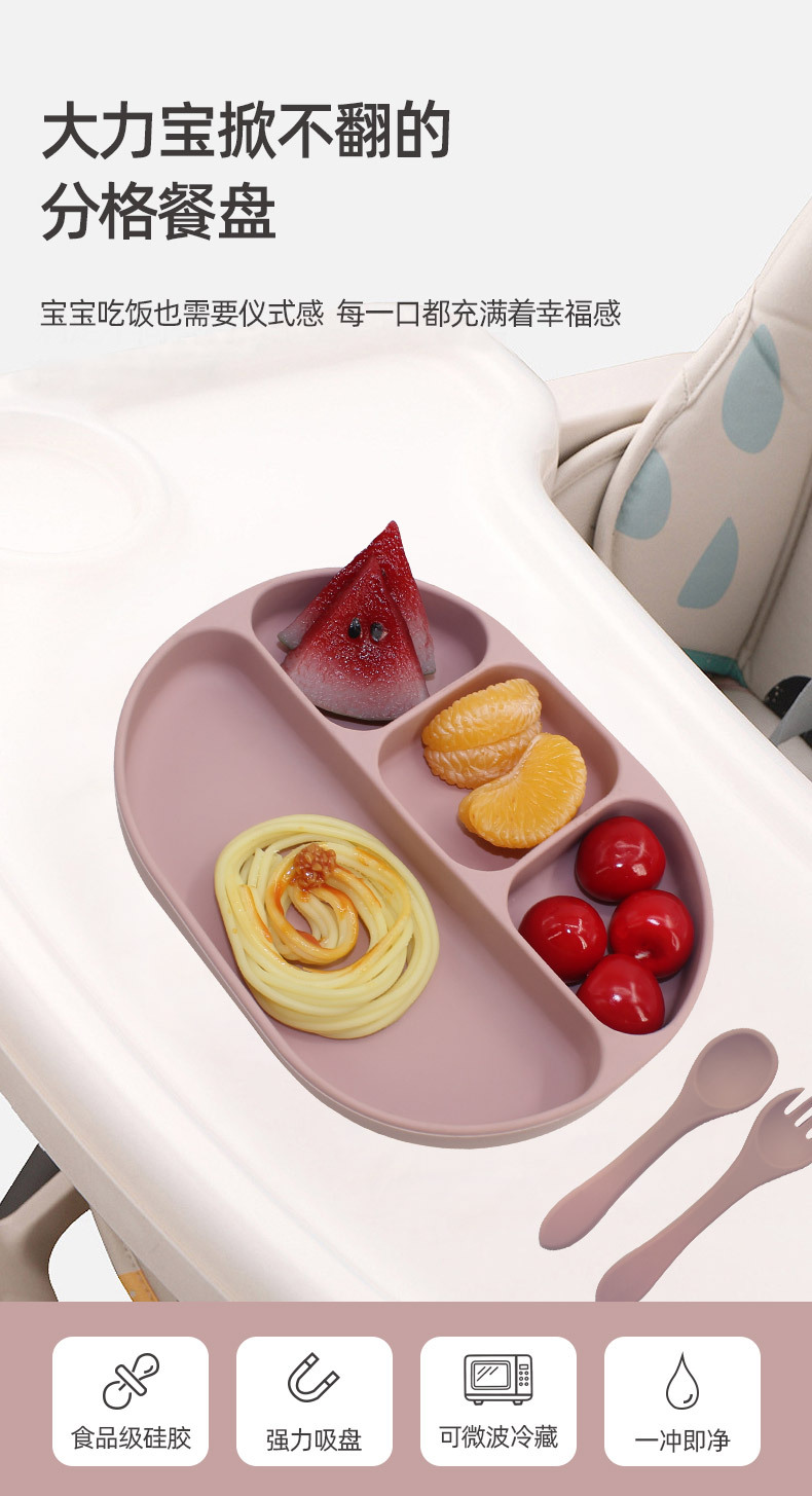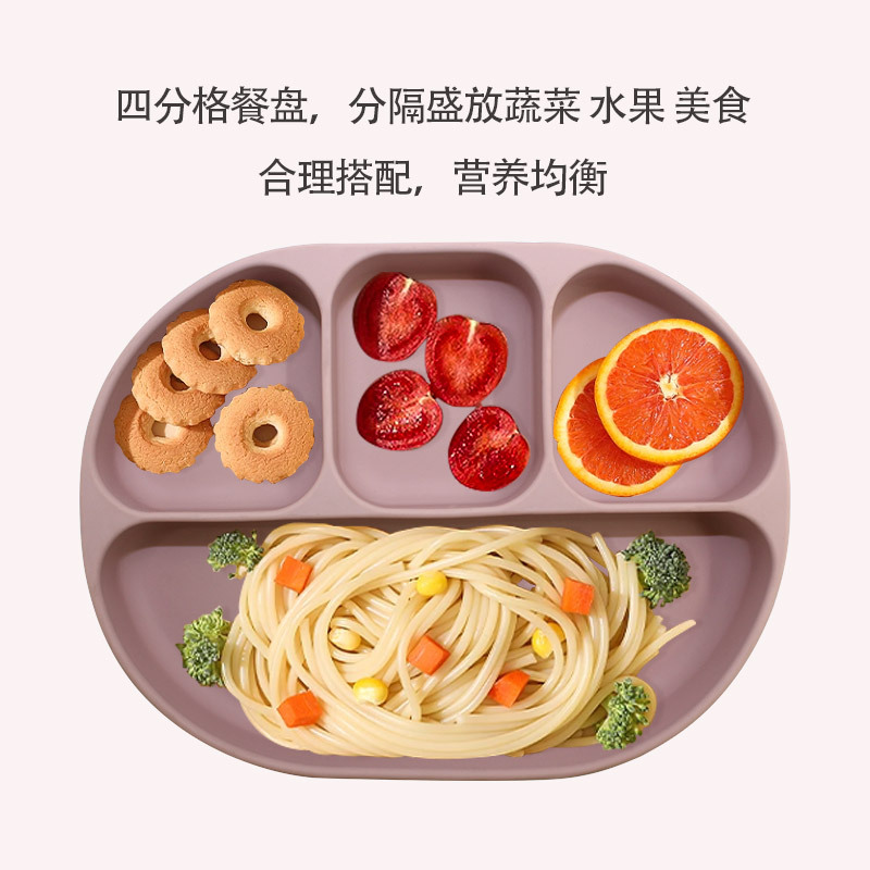 婴儿吸盘式辅食餐盘宝宝四分格餐盘亚马逊儿童餐具食品级硅胶餐盘