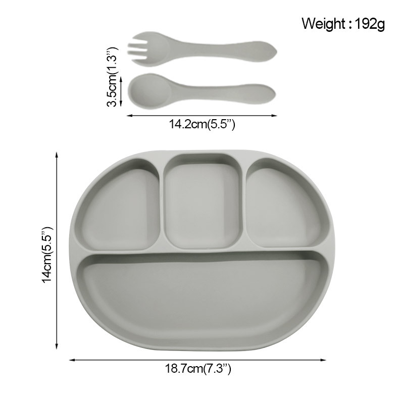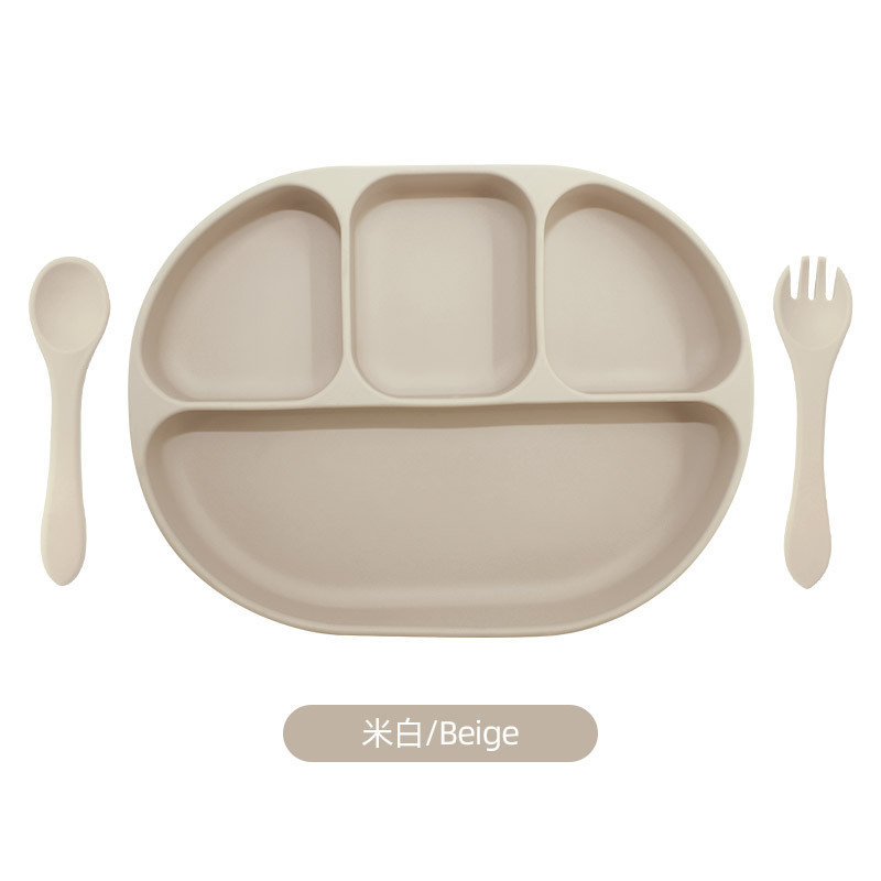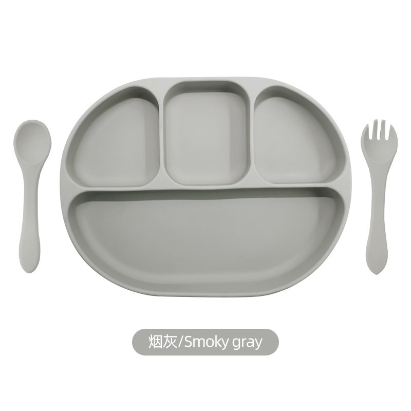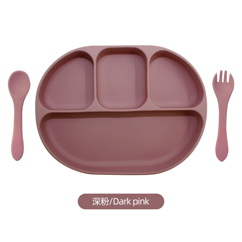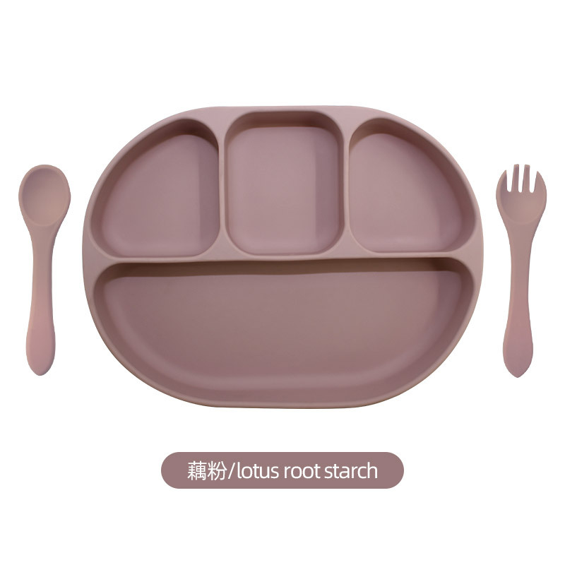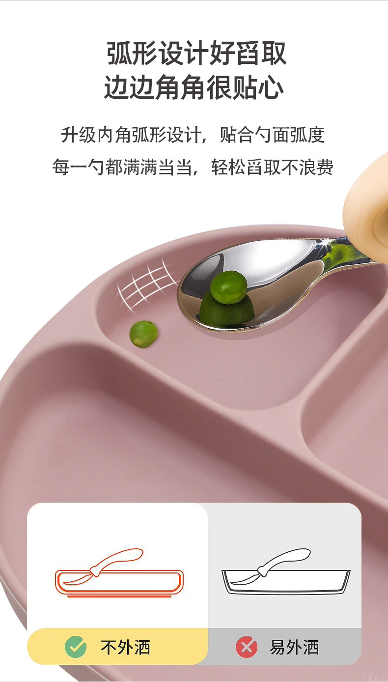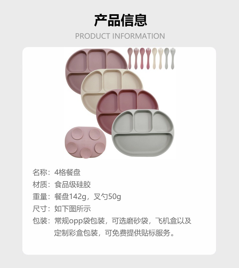 婴儿吸盘式辅食餐盘宝宝四分格餐盘亚马逊儿童餐具食品级硅胶餐盘
