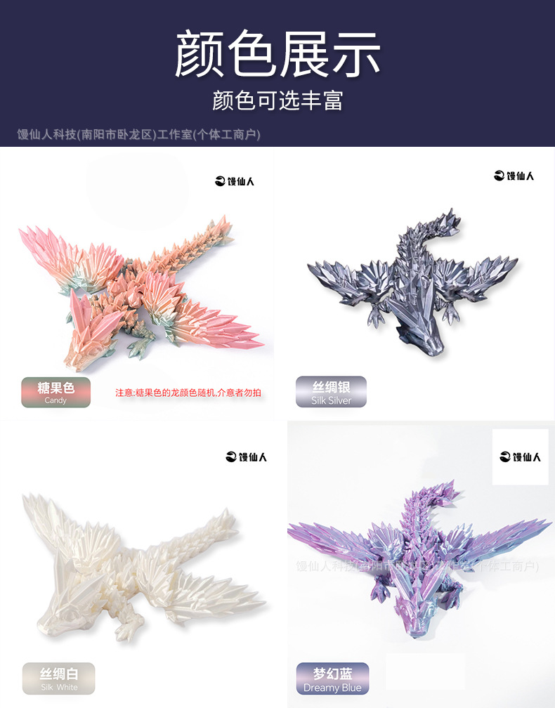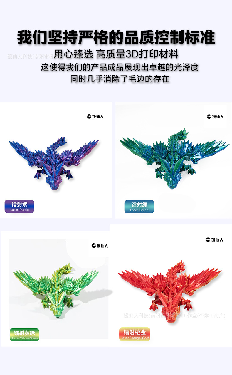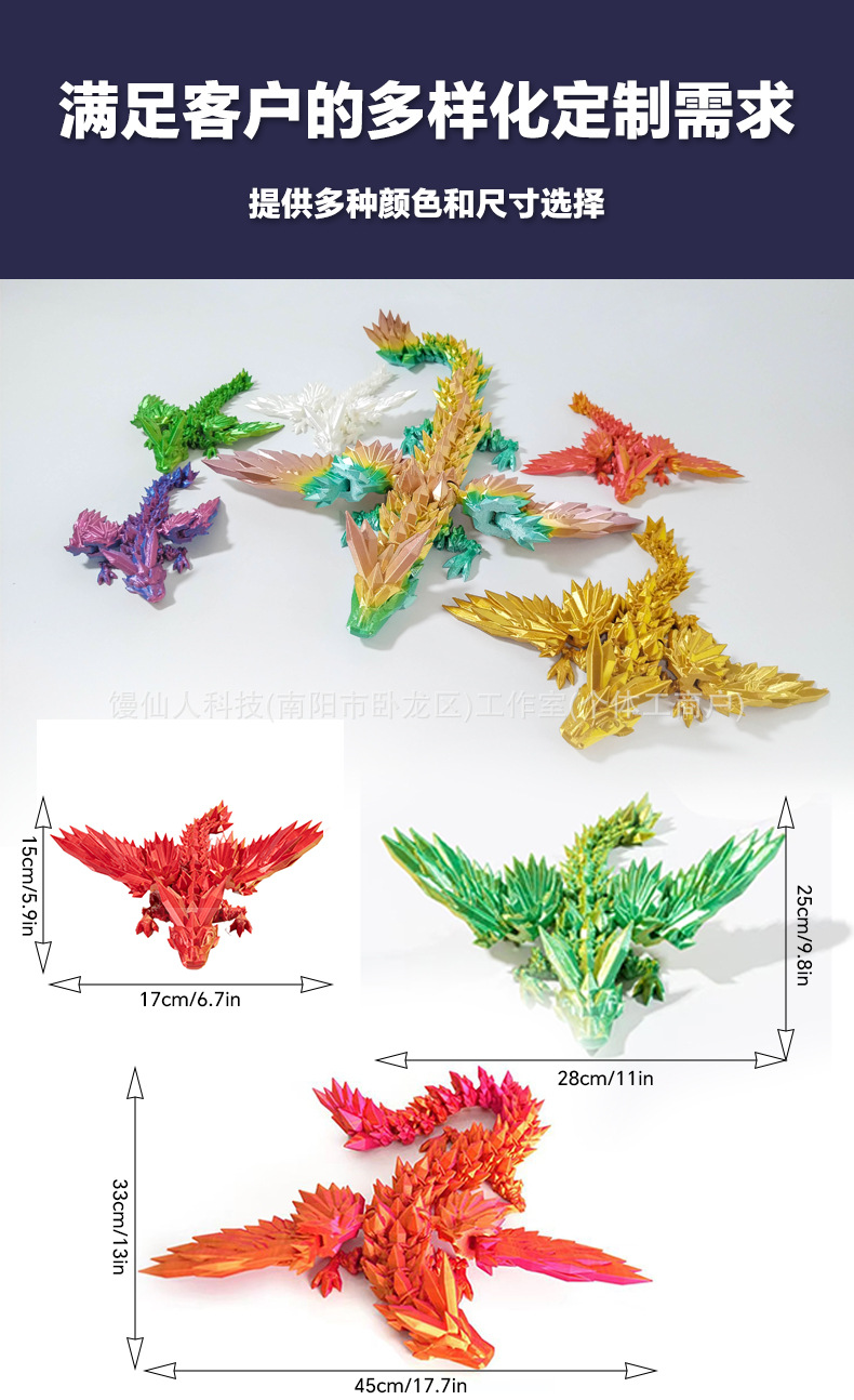 3D打印水晶飞龙跨境爆款礼品渐变宝石龙手办环保水晶龙潮玩批发