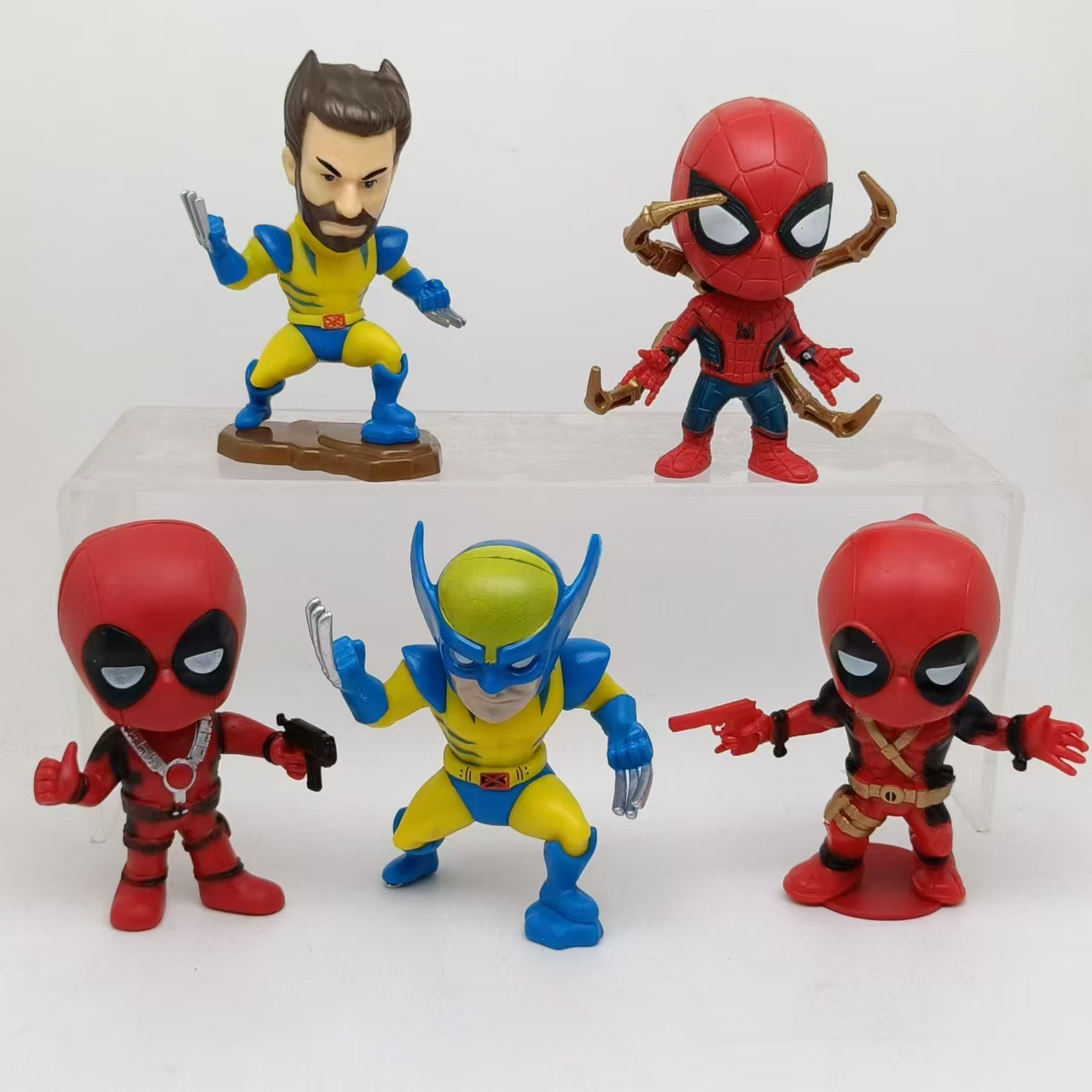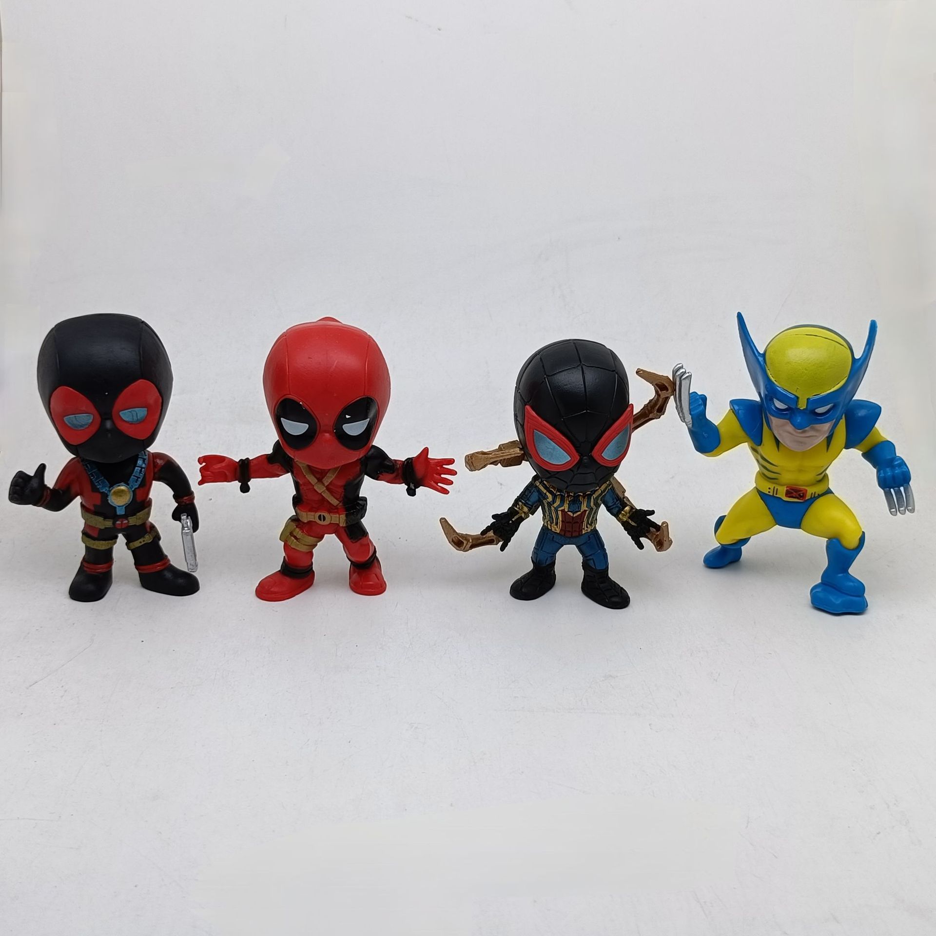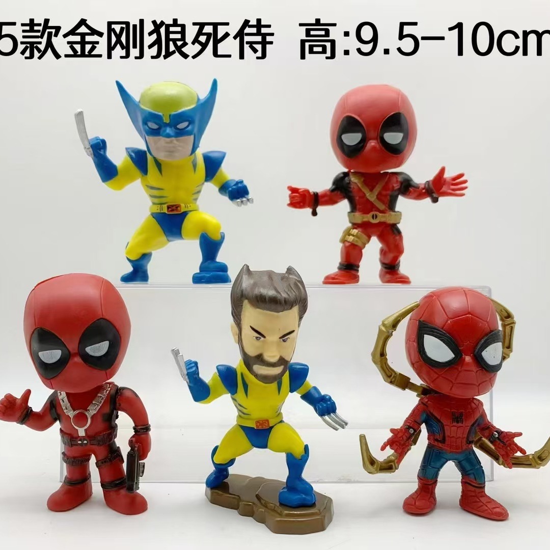 Q版4款正义联盟蜘蛛侠死侍金刚狼手办公仔扭蛋娃娃机玩具蛋糕摆件