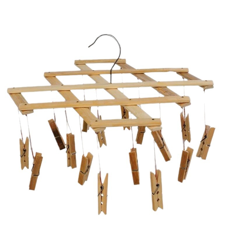16夹子竹子裤架衣架裤夹衣夹竹夹子晒袜子内衣架多夹子竹木晾衣架
