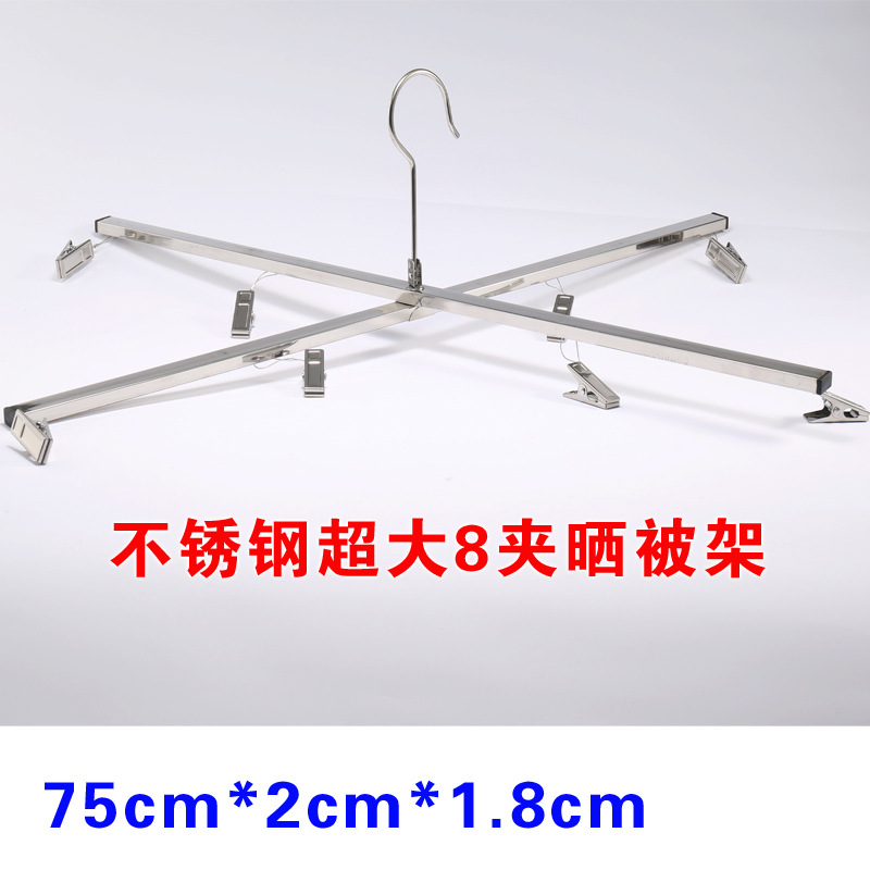大衣架晒被竹裤架8夹 不锈钢床单架晒被架家用阳台防风十字架